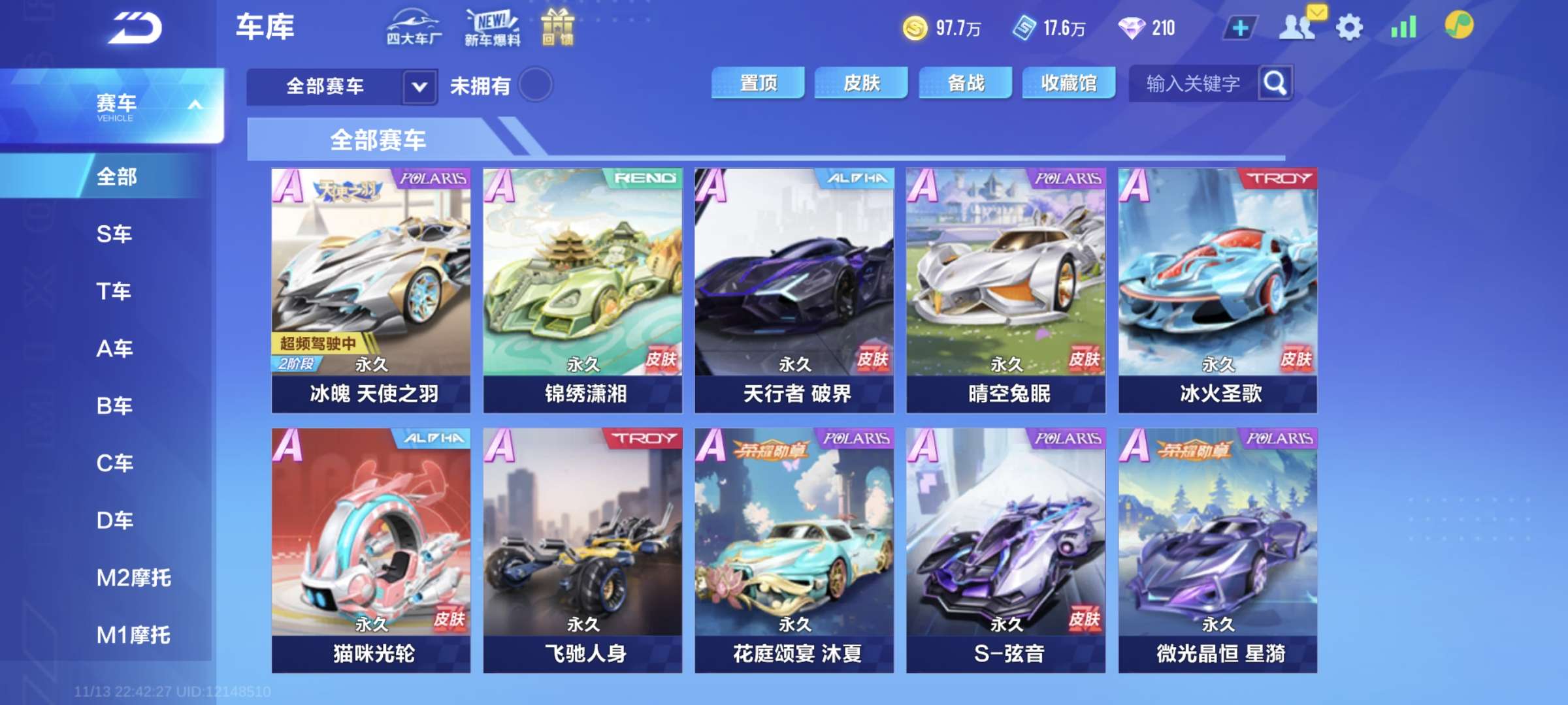 [4联赛车]有溯光,有弦音+千面雾使,霆光+神虎,冰魄+天使皮+火神,还有420金晶,还有788钻