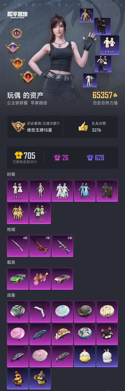 【AZH2388】苹果 微信【雪国极限特训蜜语绒猫暗影哥特糯粉咩咩 满级风花雪月M416 3载具】7粉装-3特效枪-3载具-1粉色飞行器-65357热力值-11王牌印记-188套装-181枪皮