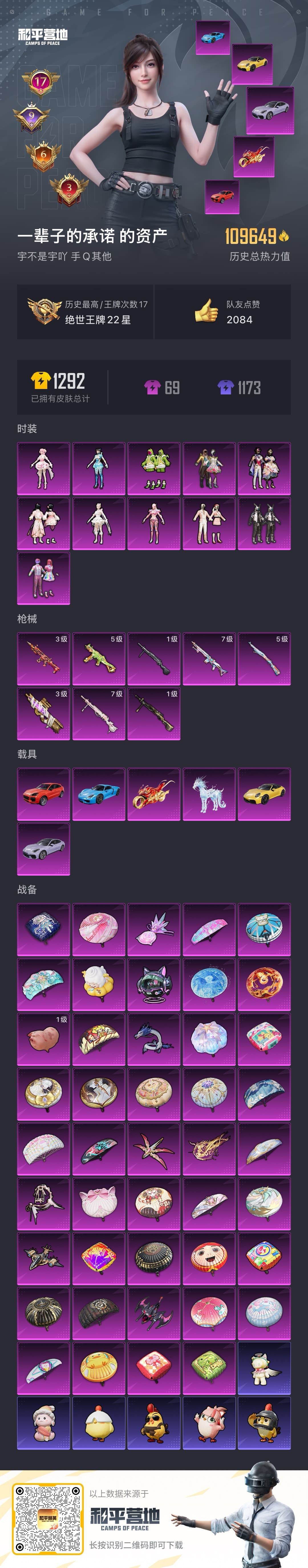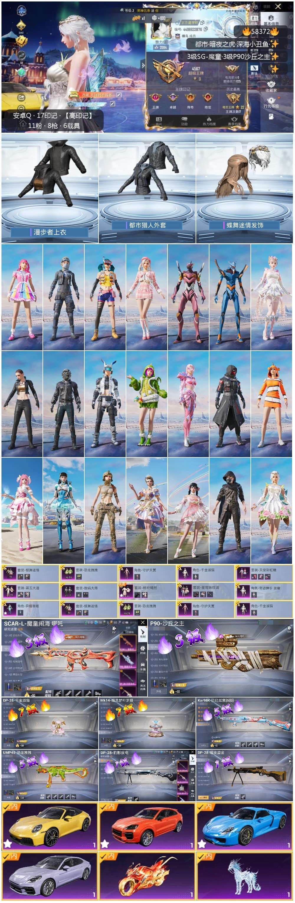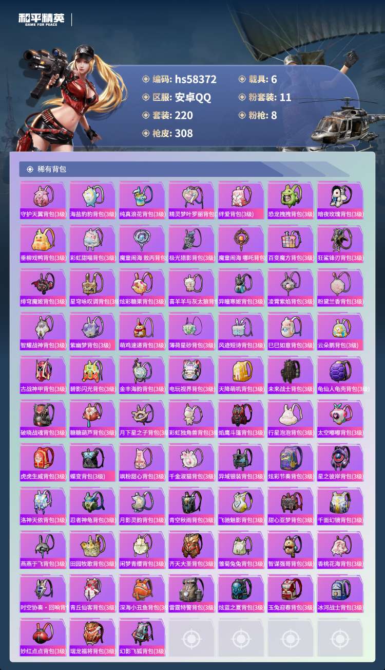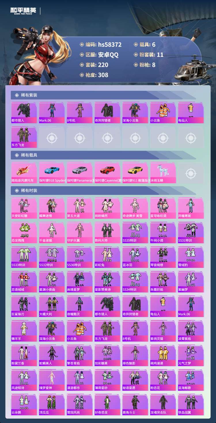 hs58372 安卓手Q-17王牌印记-11粉装-8特效枪-6载具-109649热力值-220套装-