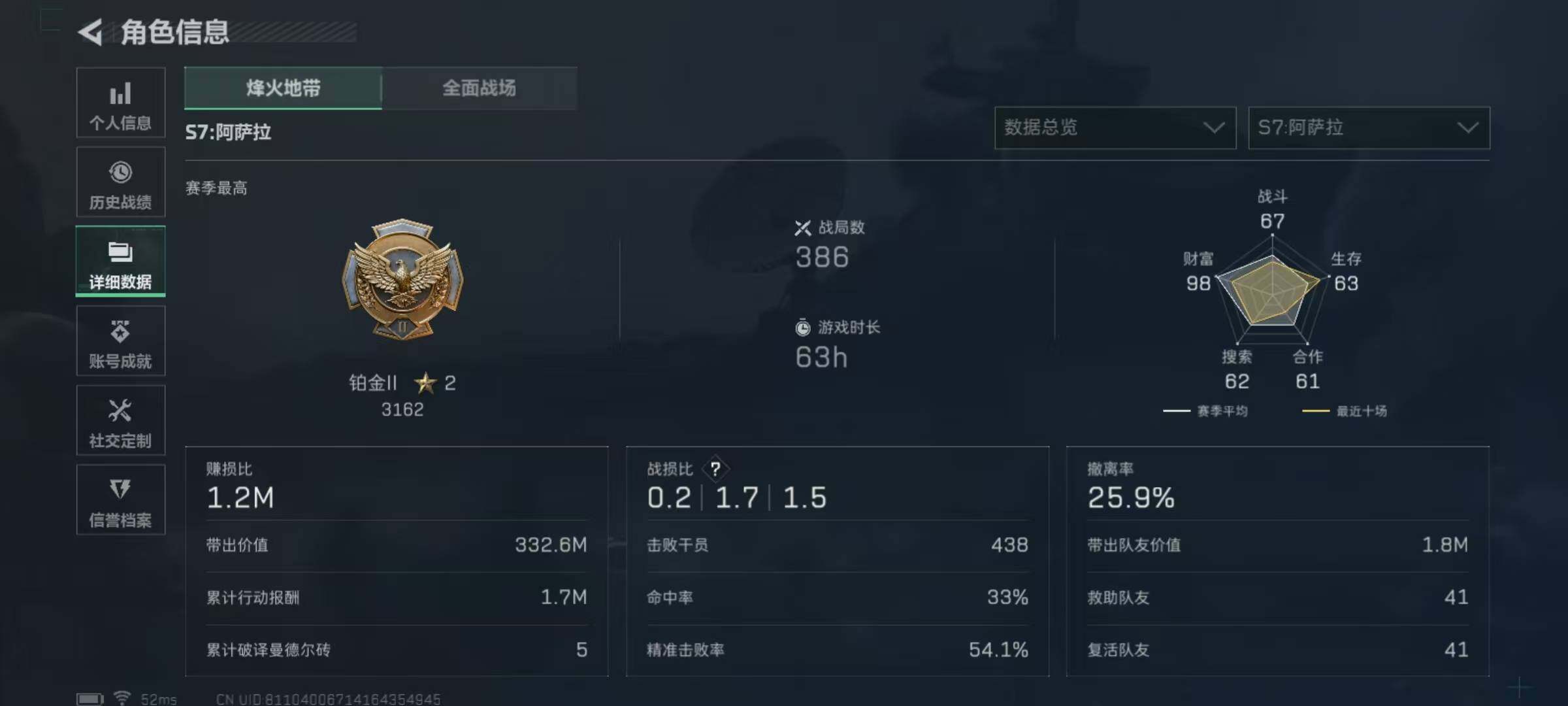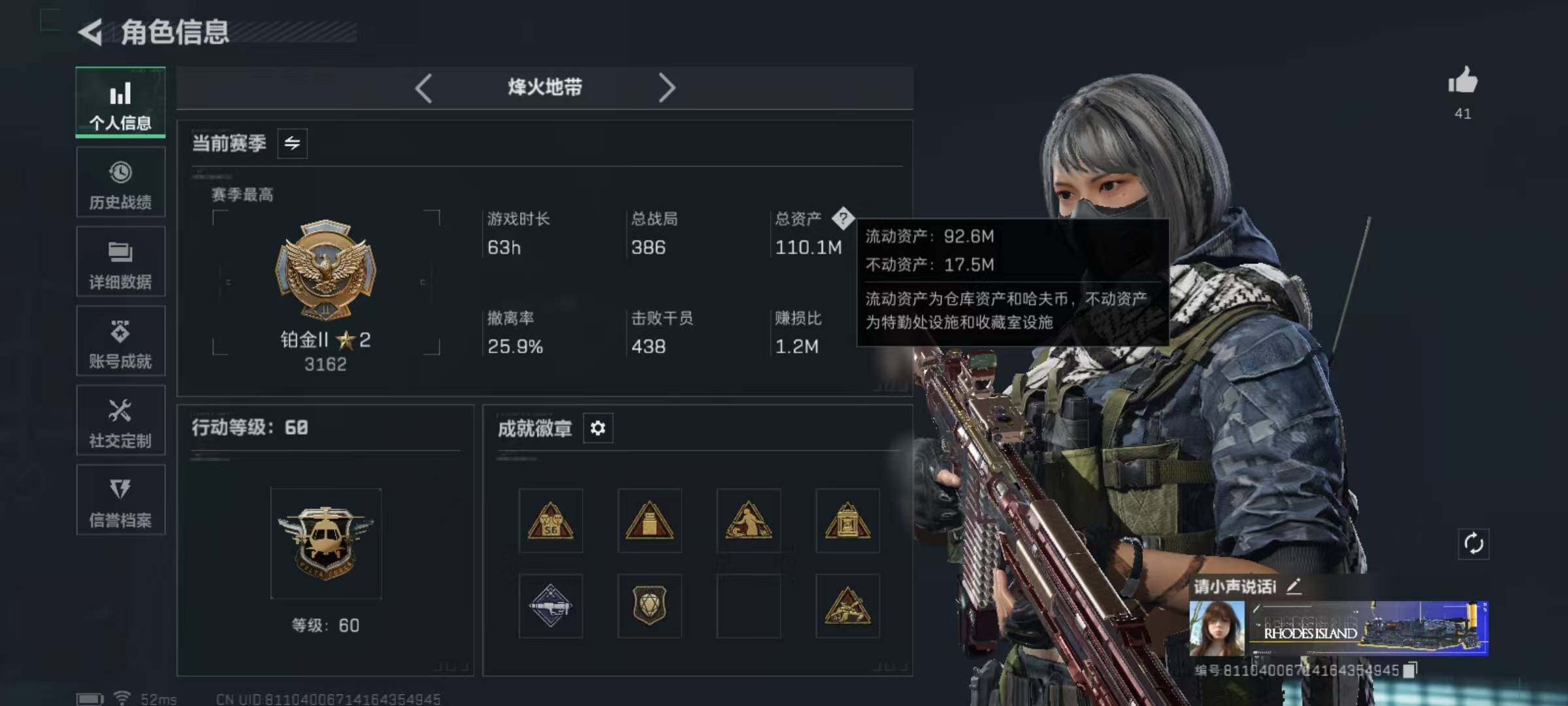 【SJ913】110m总资产-220k哈伏币-60烽火等级-铂金-18战场等级-列兵