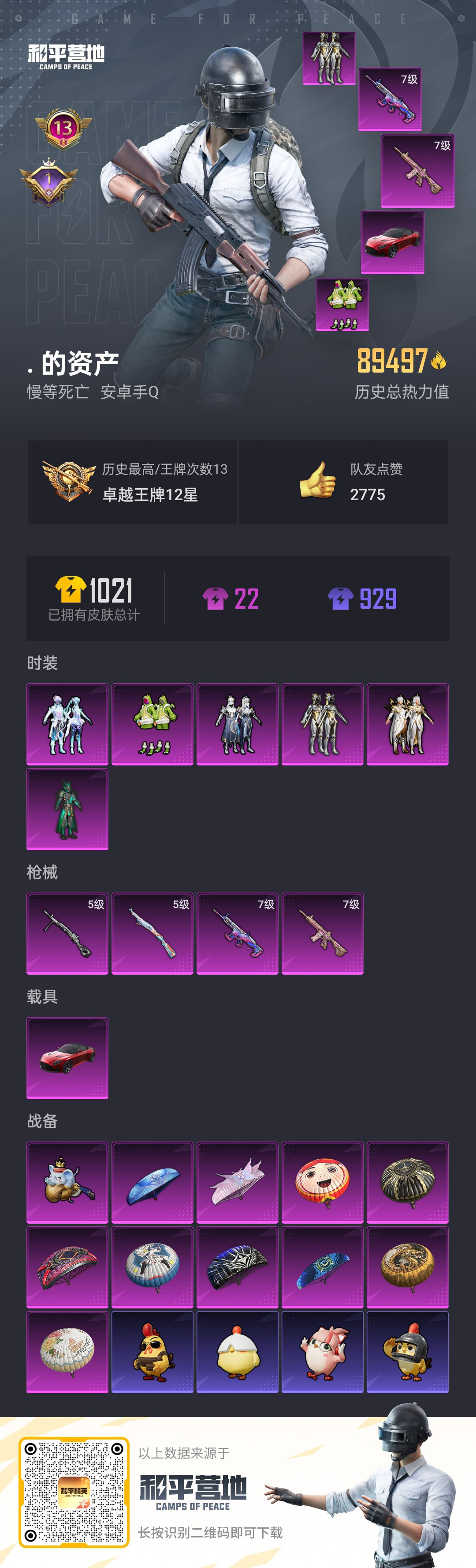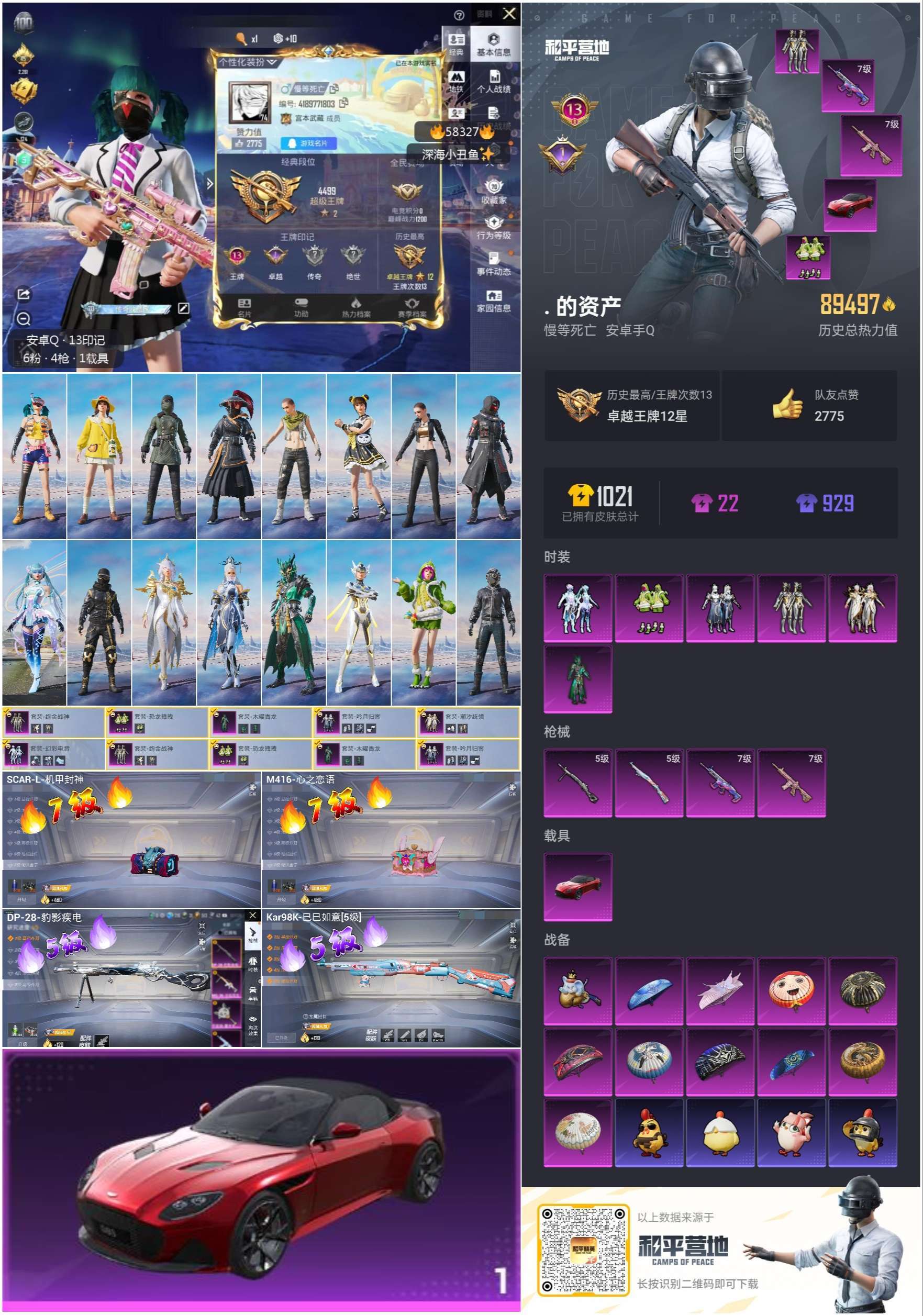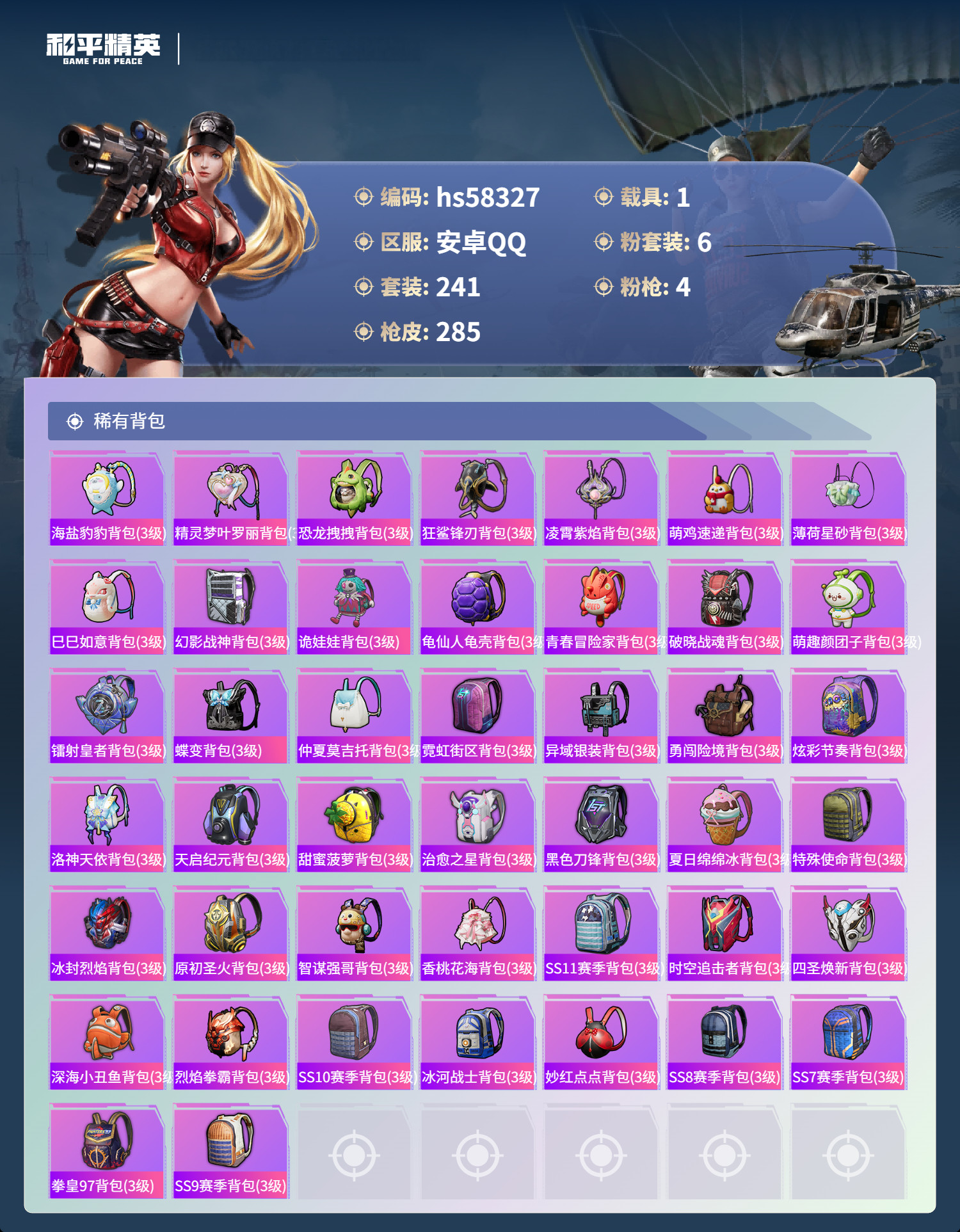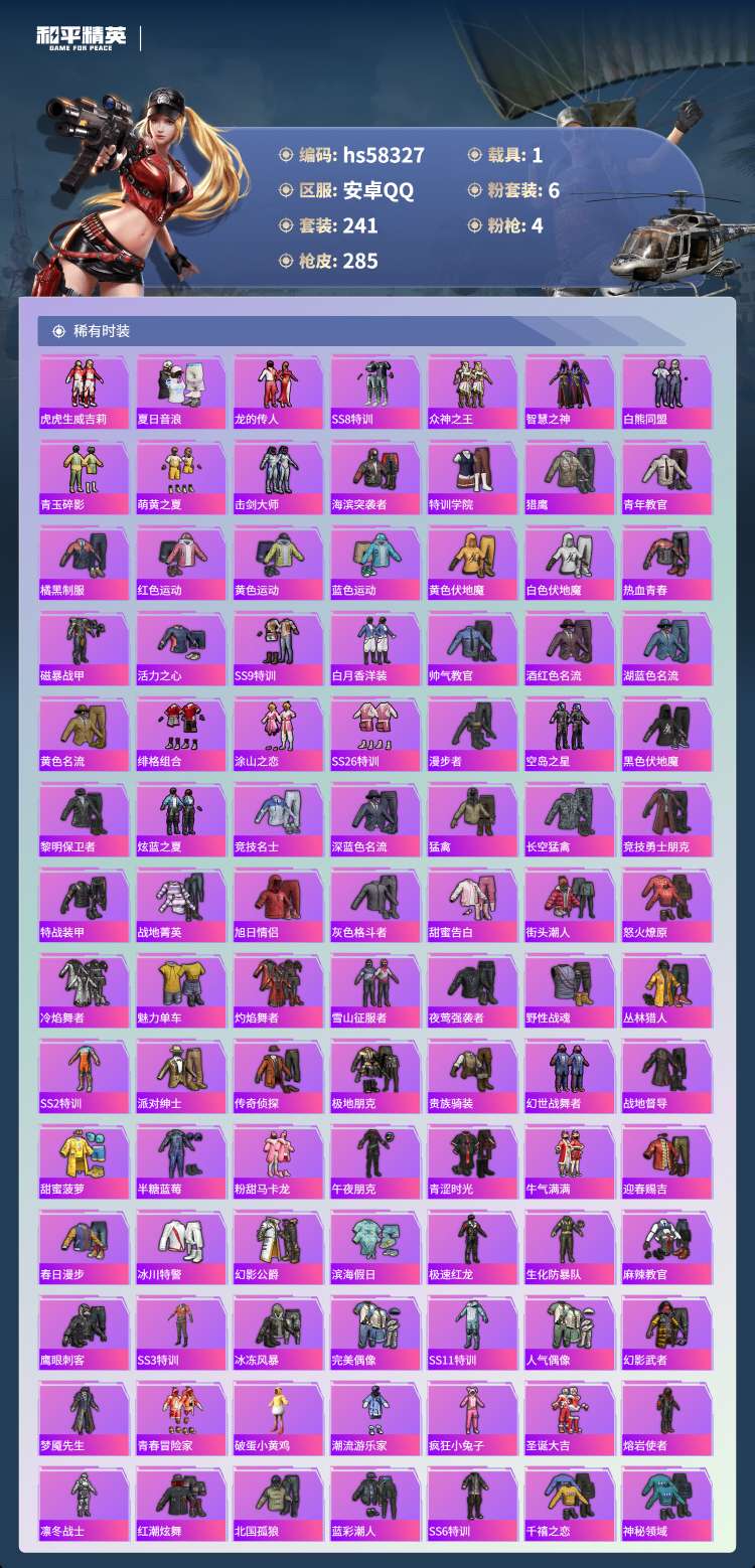 hs58327 安卓手Q-13王牌印记-6粉装-4特效枪-1载具-89497热力值-241套装-28