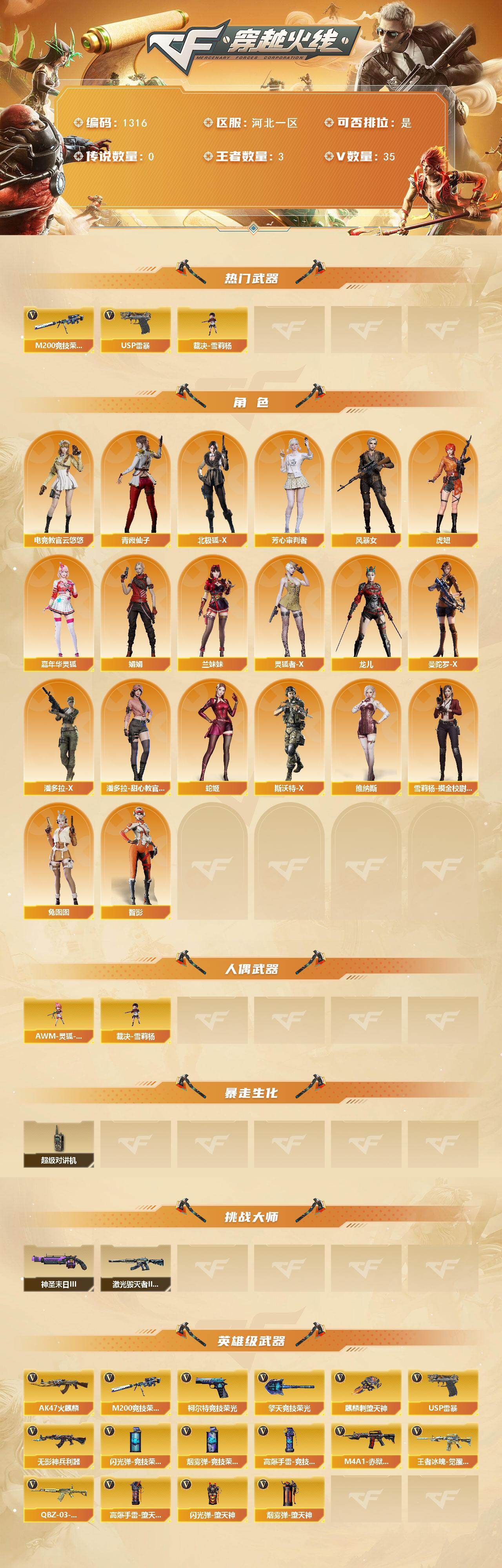 河北一区-35V-3王者-0炫金【热门武器】:M200-竞技荣光,裁决-雪莉