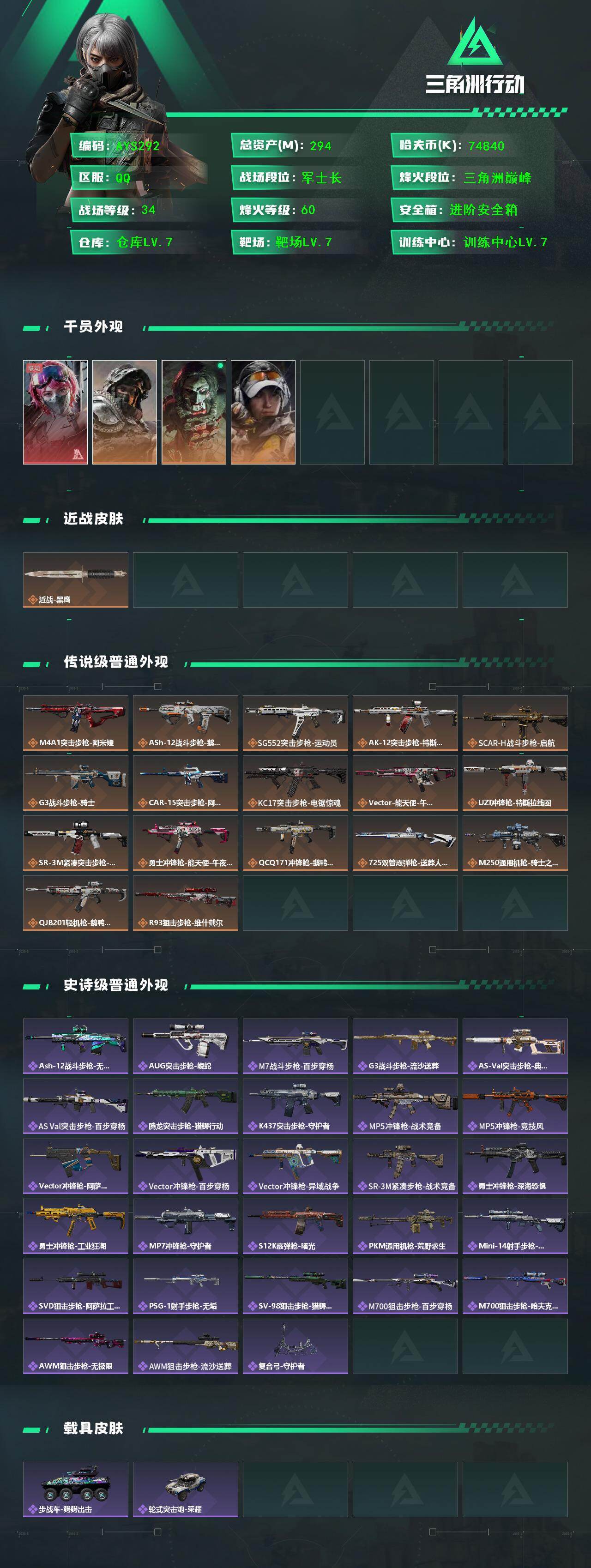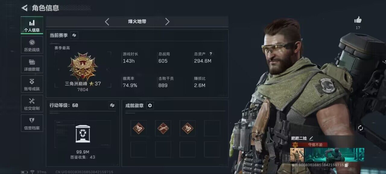 可二次【特价出售/店主推荐】294m总资产-74840k哈伏币-60烽火等级-三角洲巅峰-34战场等级-军士长