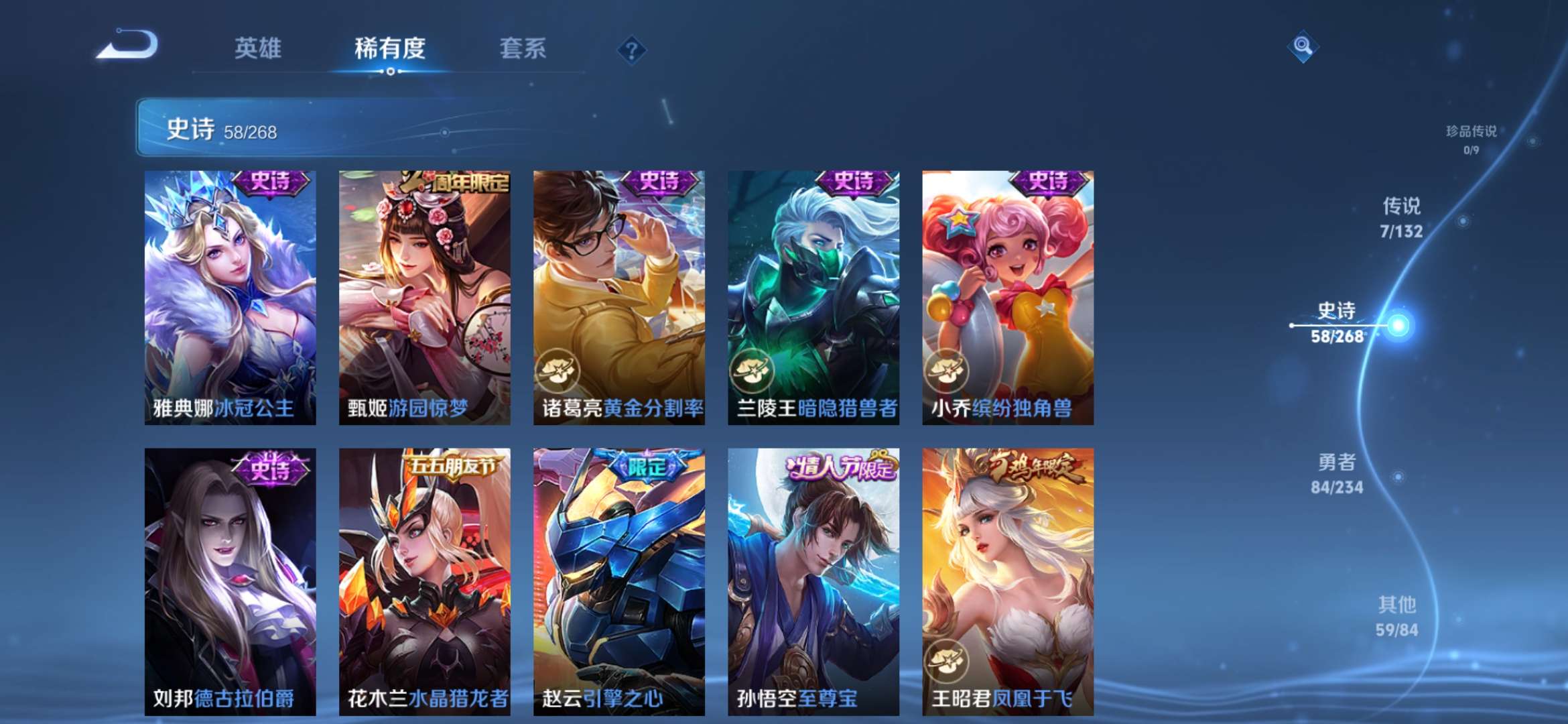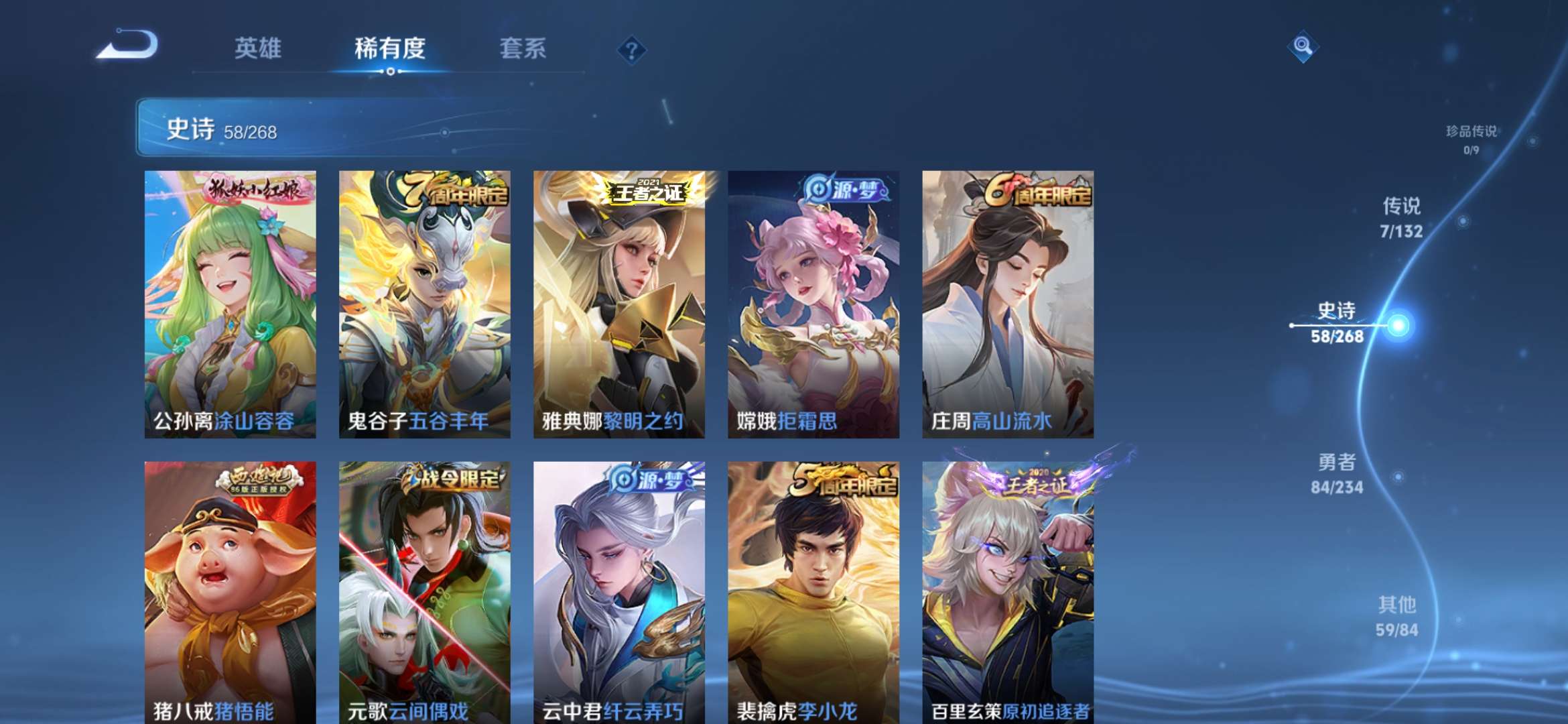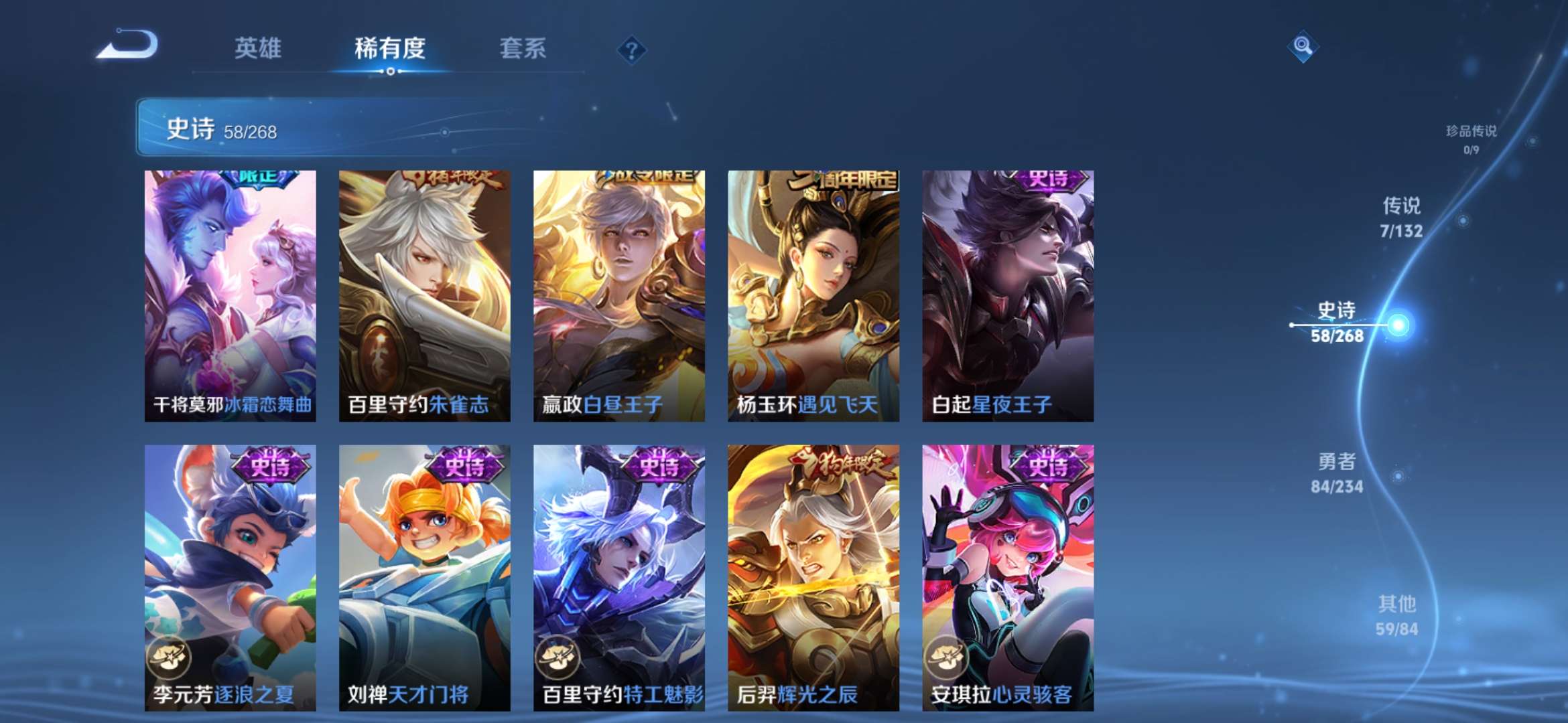 1典藏 1传说 58史诗 总209皮 经典小号