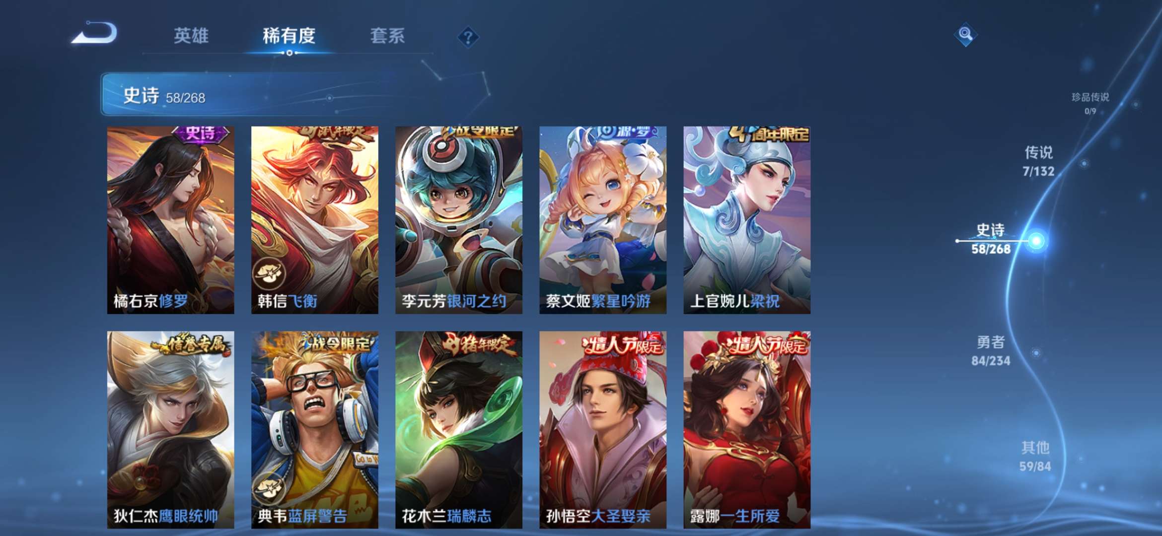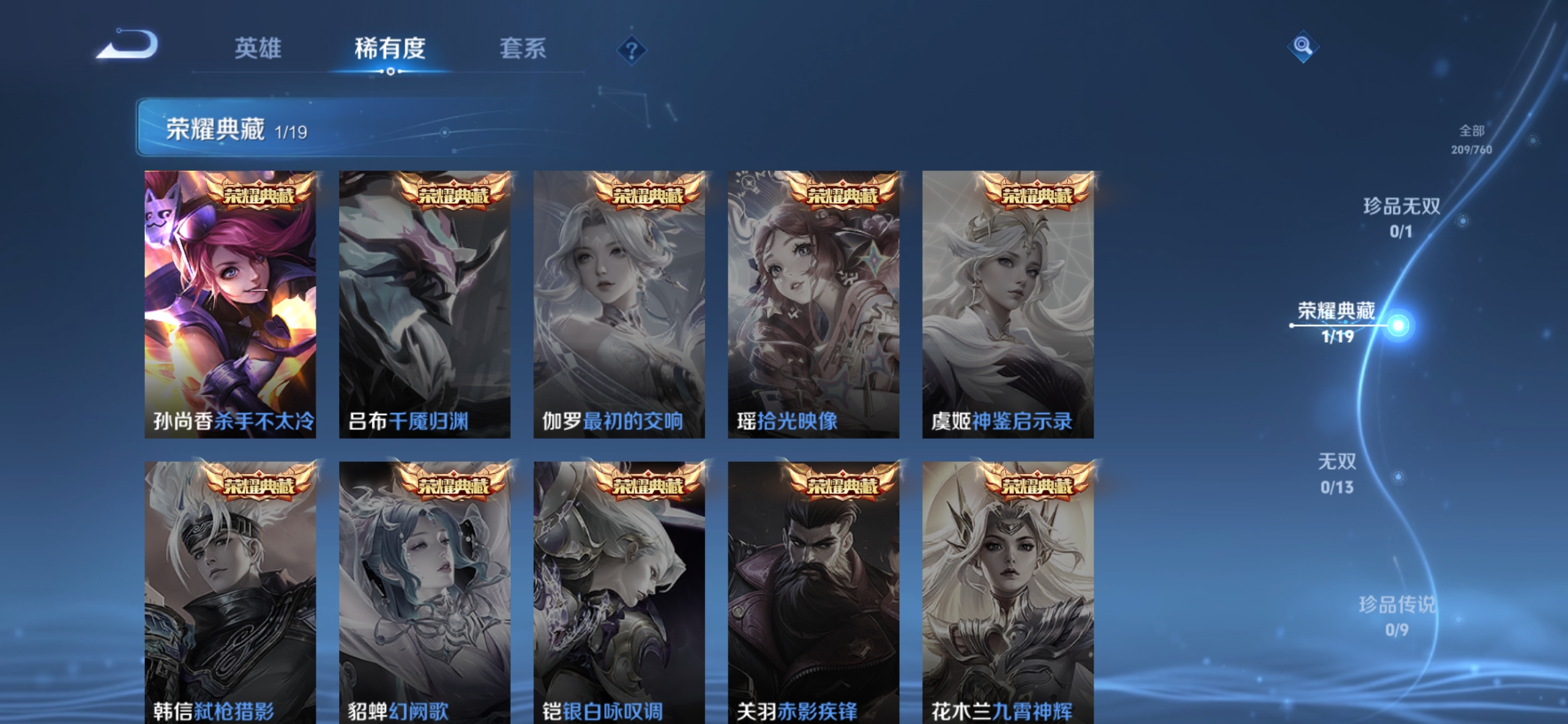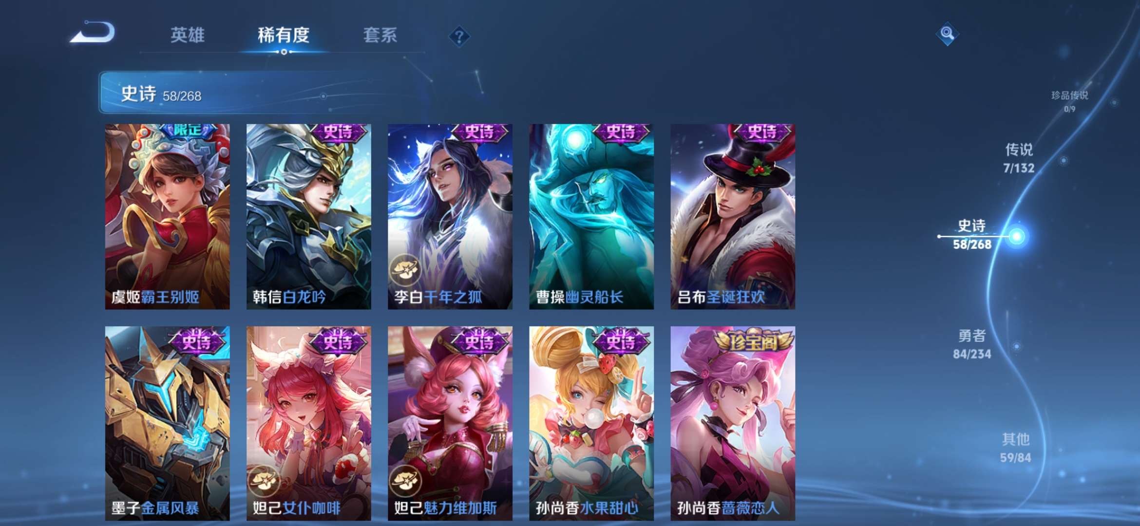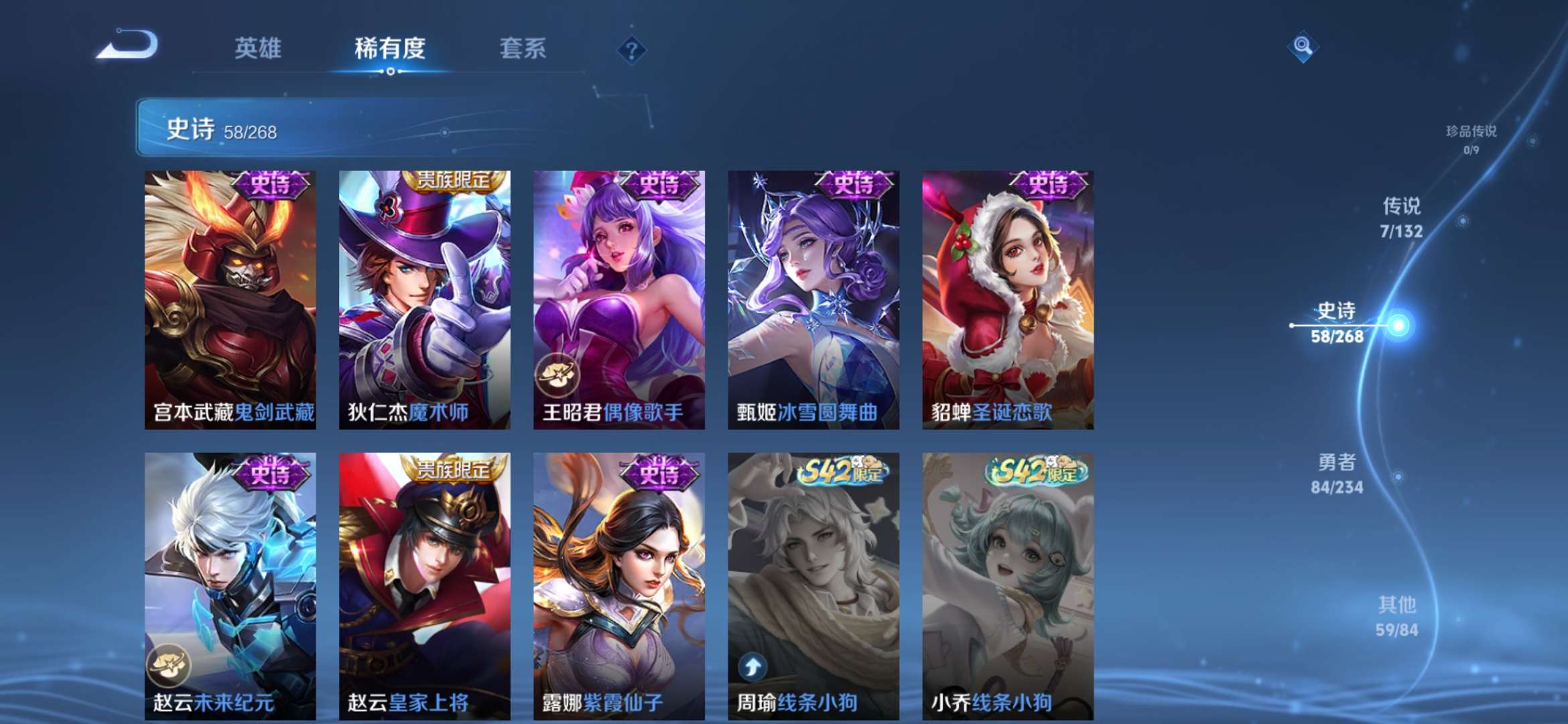 1典藏 1传说 58史诗 总209皮 经典小号