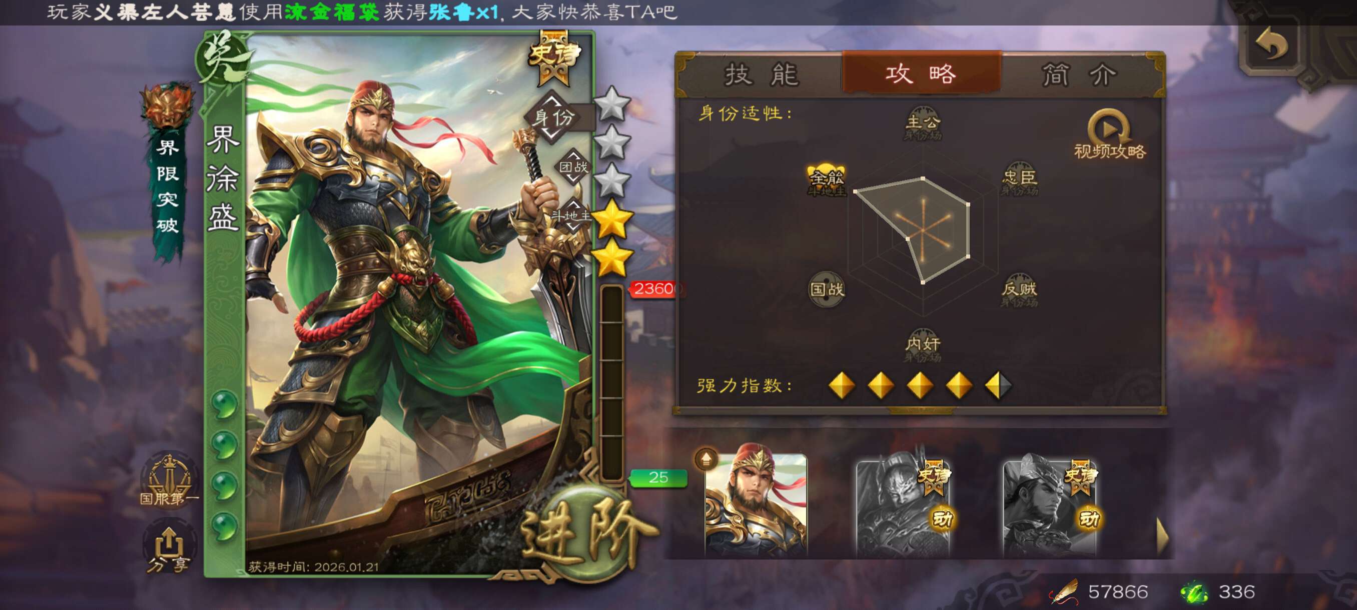势魏延+界徐盛+董允+神刘备精品先锋将军!三卡充足,官服字母格式活绑