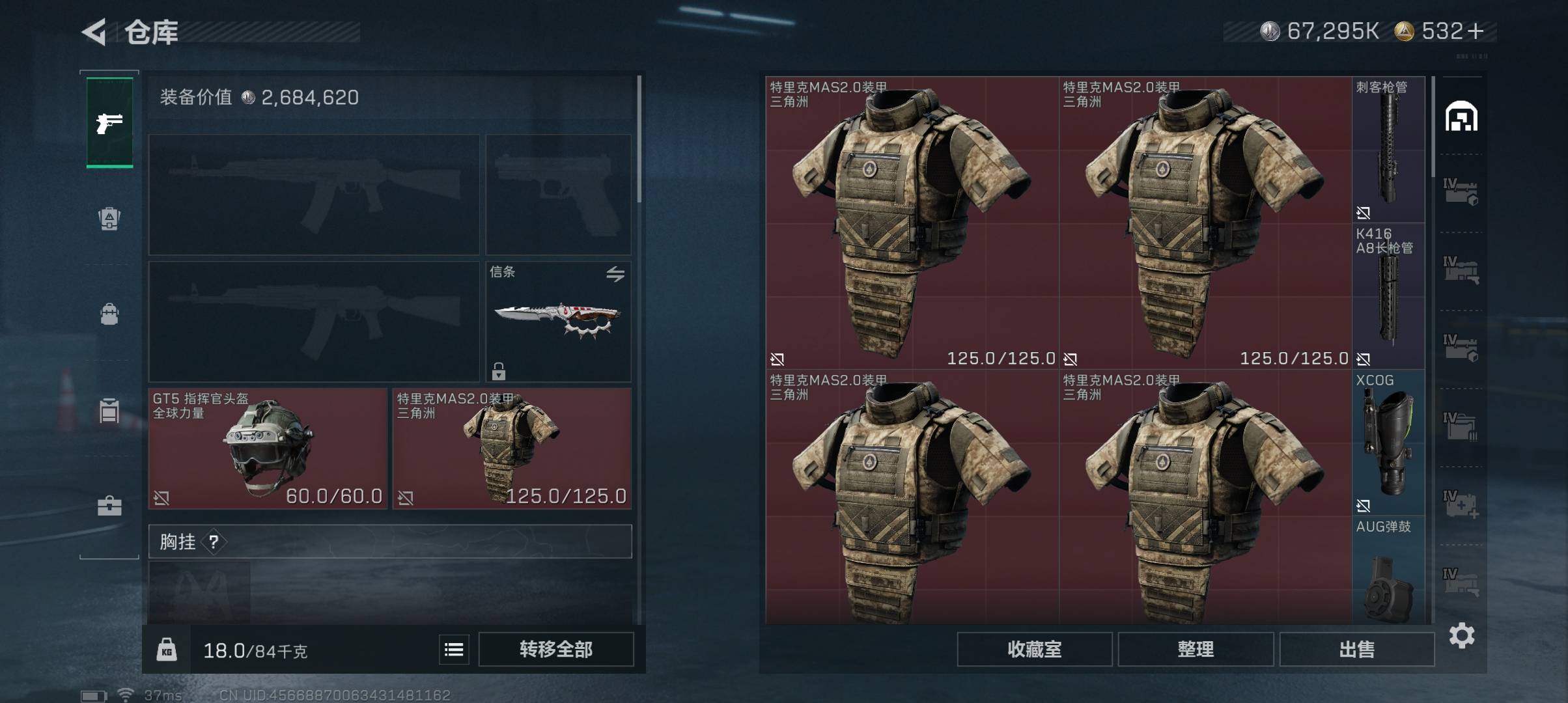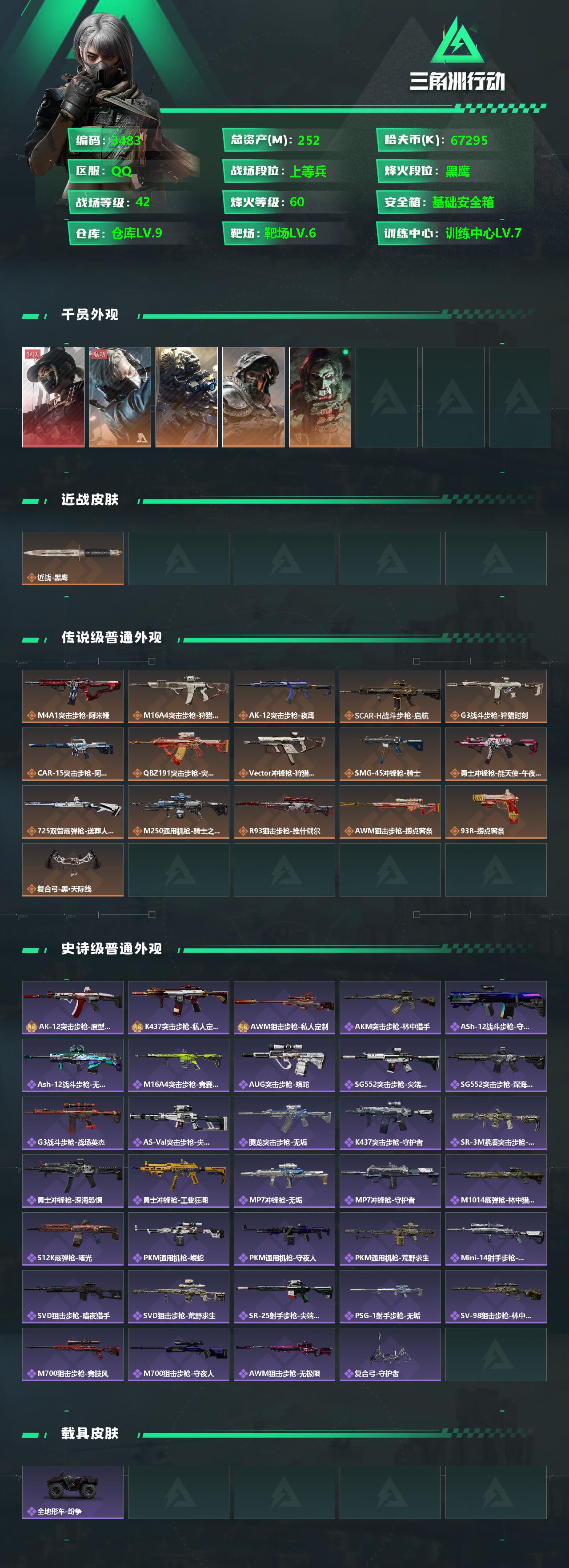 总资产252m 流动资产205m 哈夫币67295k 1刀皮 5干员皮 1红皮 4金皮 顶级安全箱