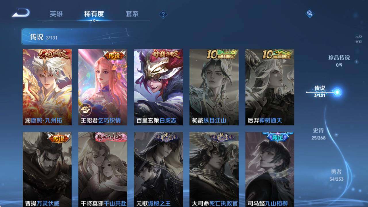 【传说皮肤】:澜愿照九州拓,王昭君乞巧织情,百里玄策白虎志