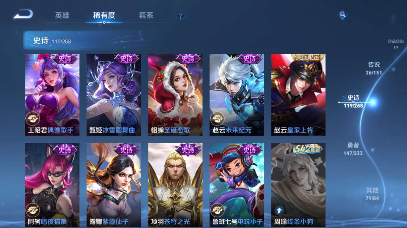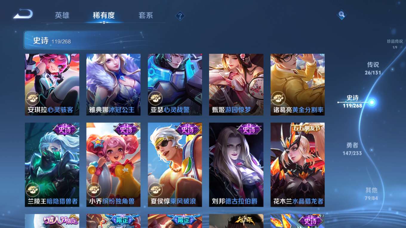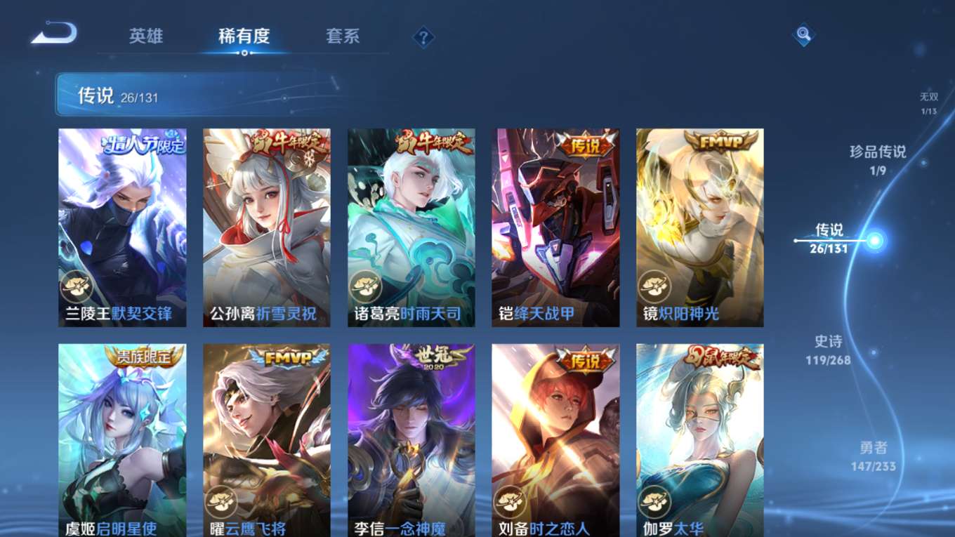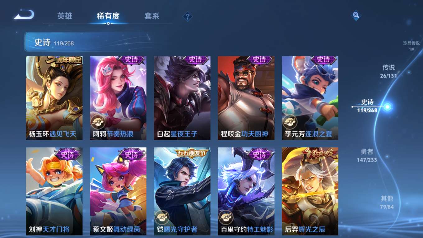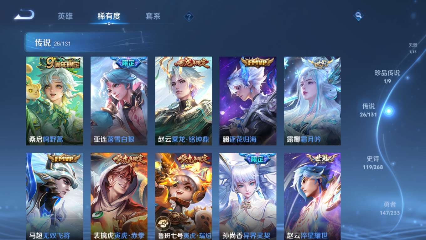 128英雄-375皮肤--V9-2典藏1无双1珍品传说26传说 发育路30段【典藏】 鸣剑曳影 星域