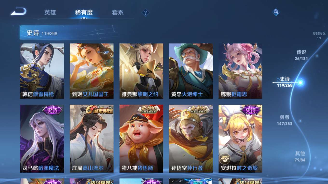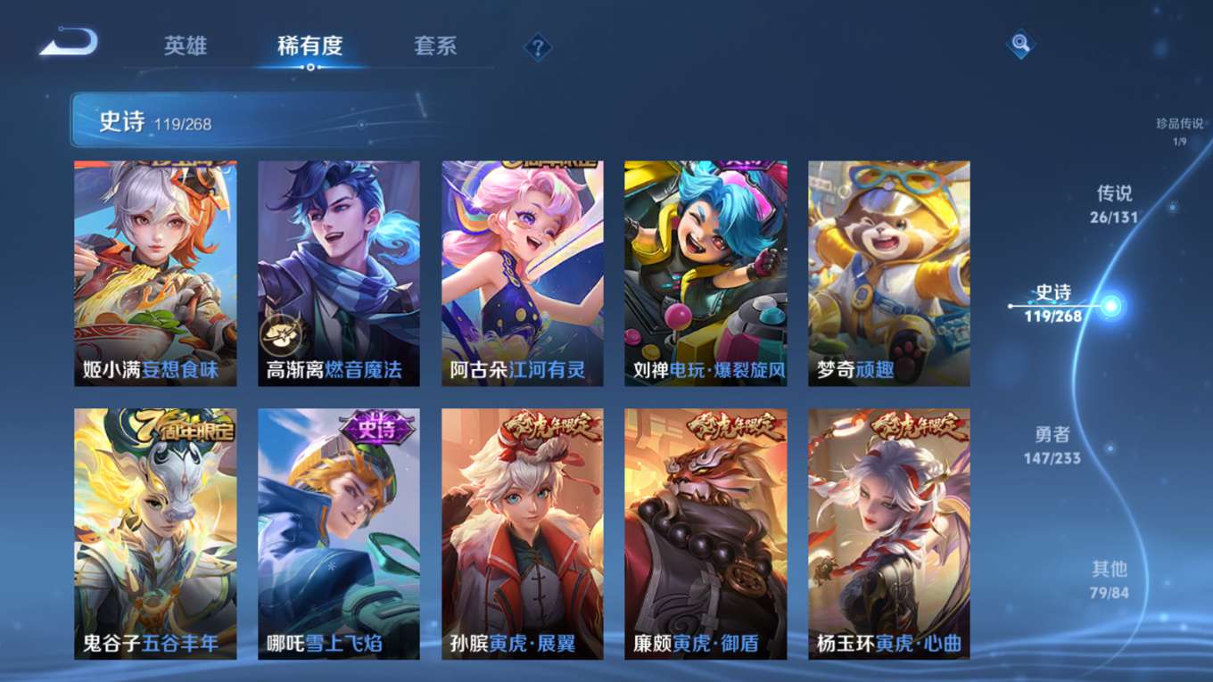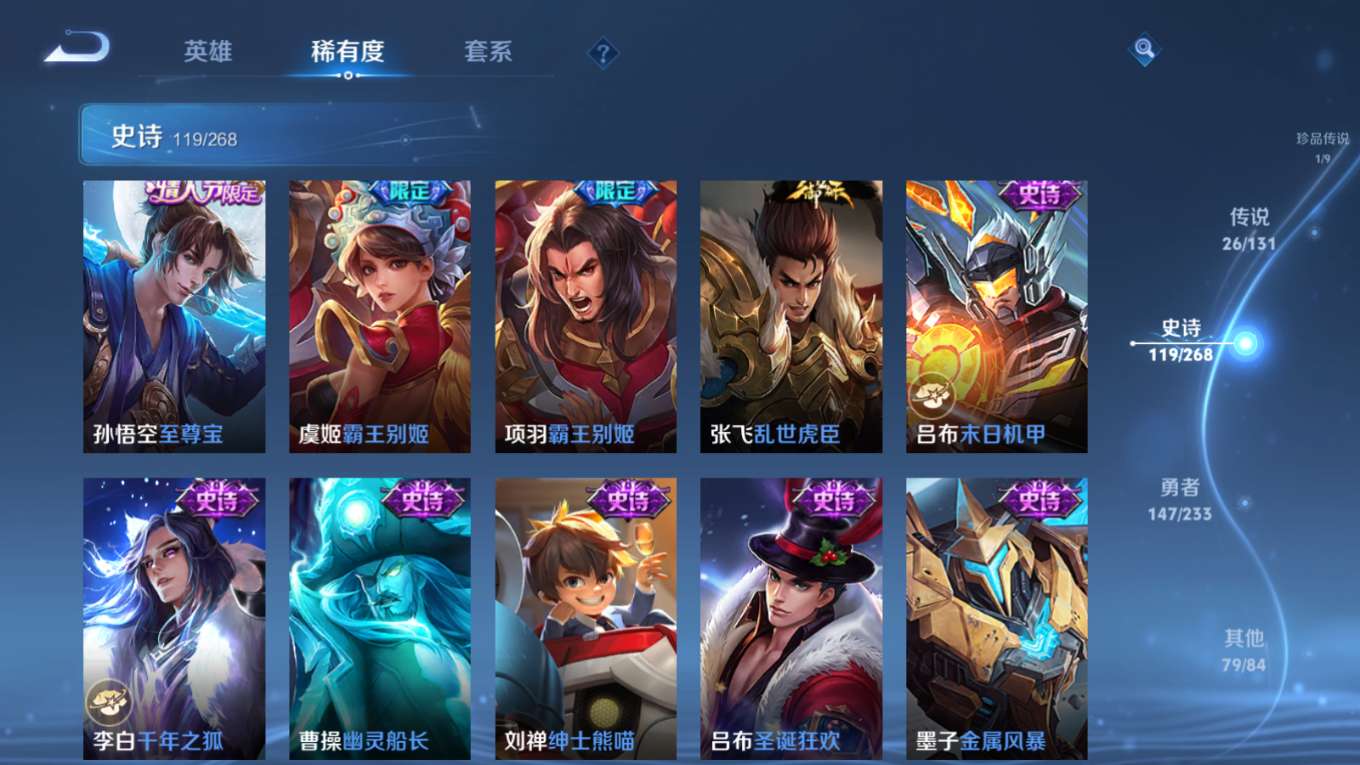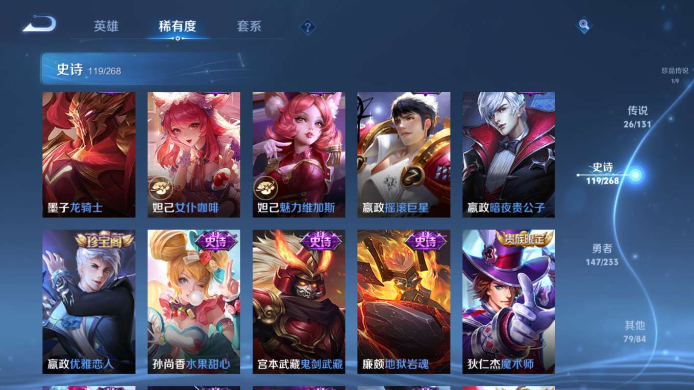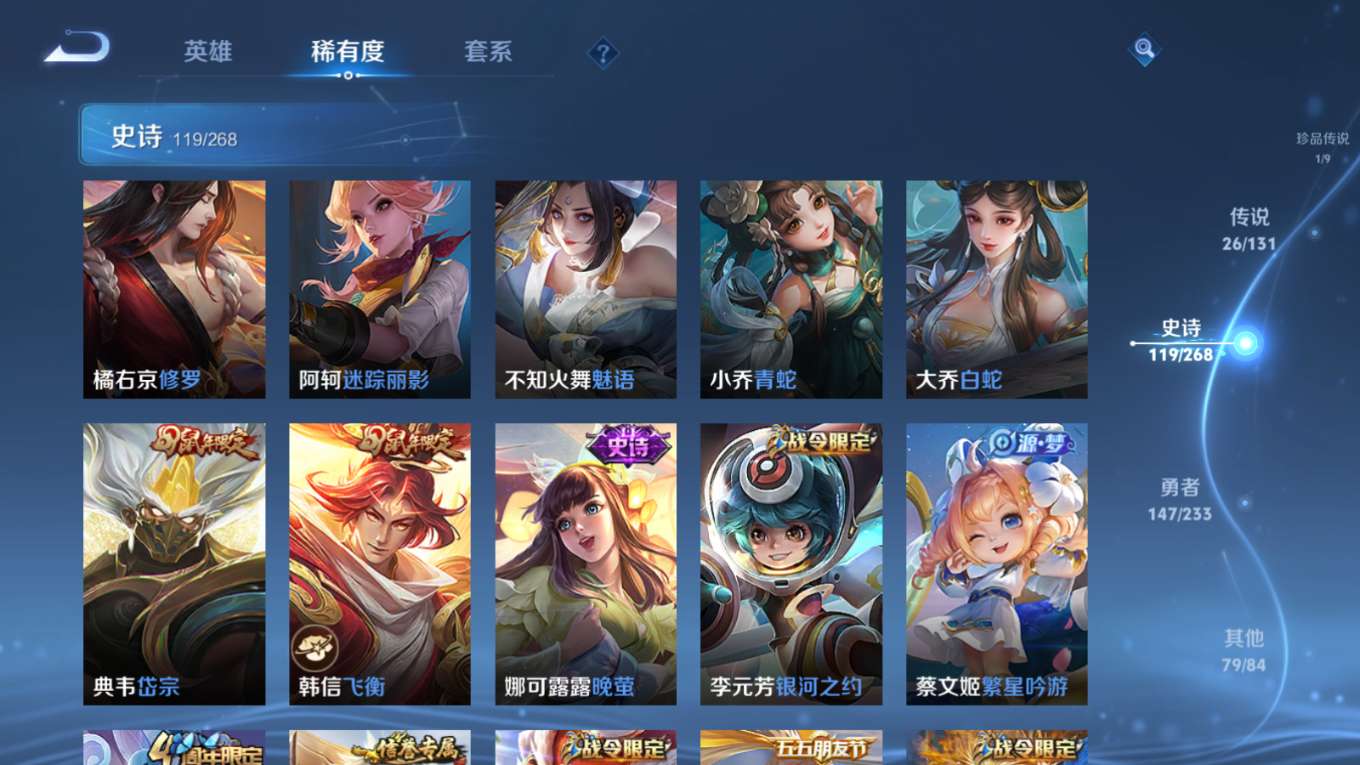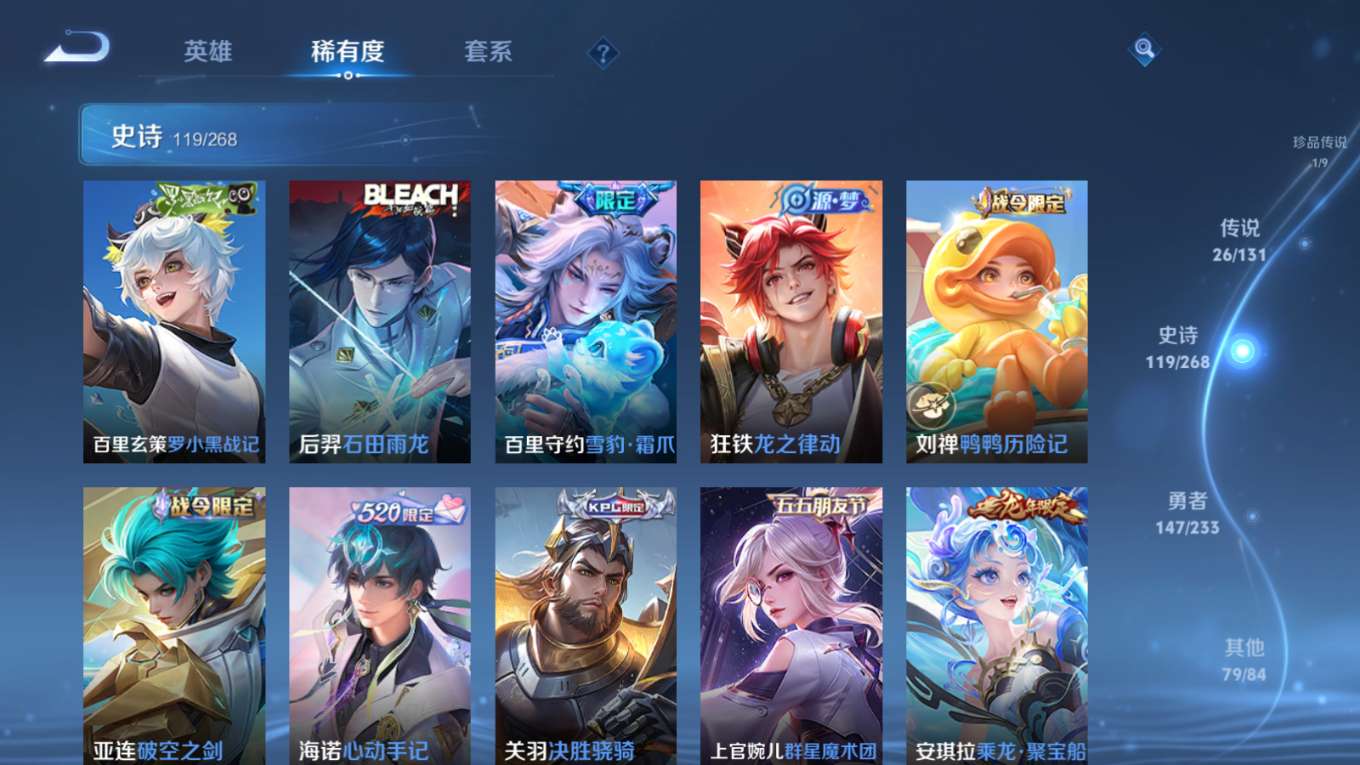 128英雄-375皮肤--V9-2典藏1无双1珍品传说26传说 发育路30段【典藏】 鸣剑曳影 星域
