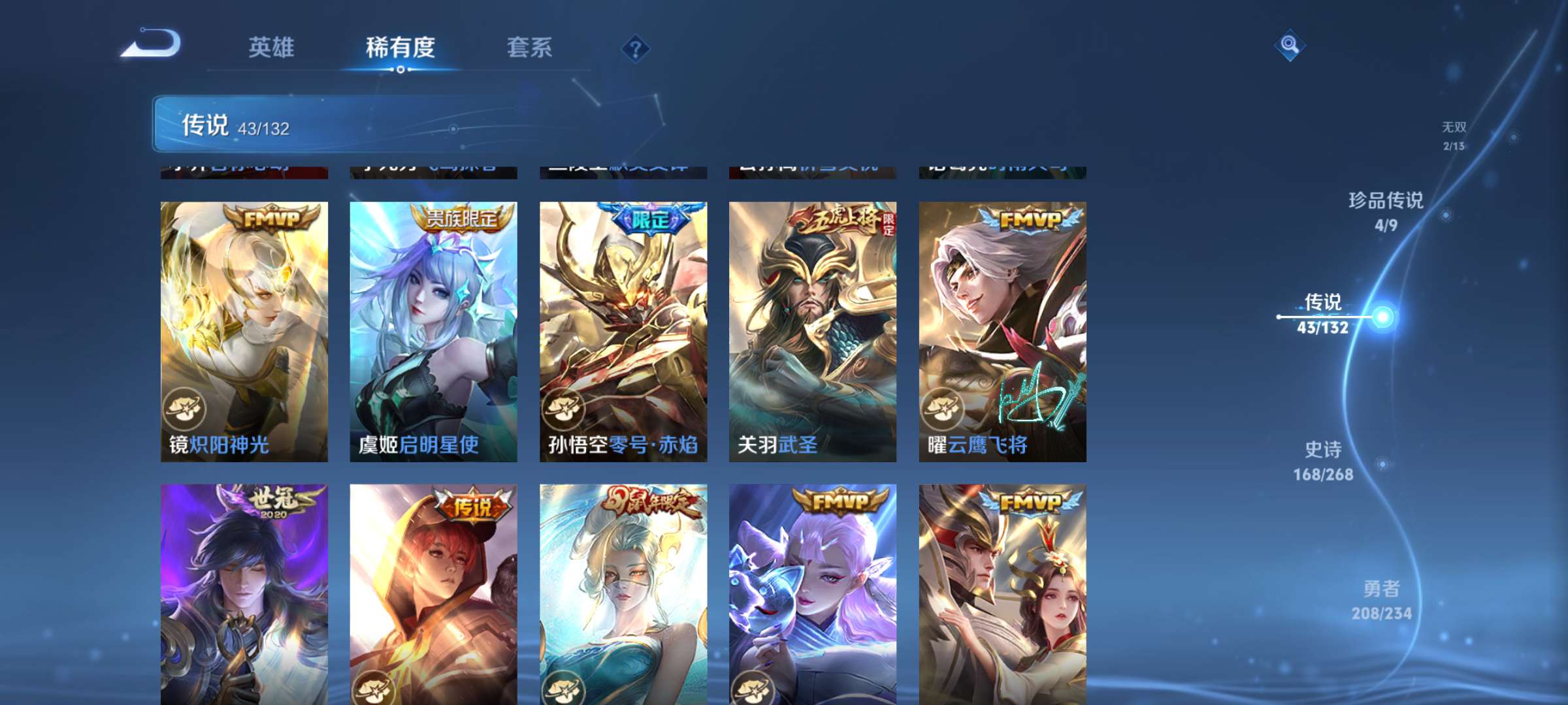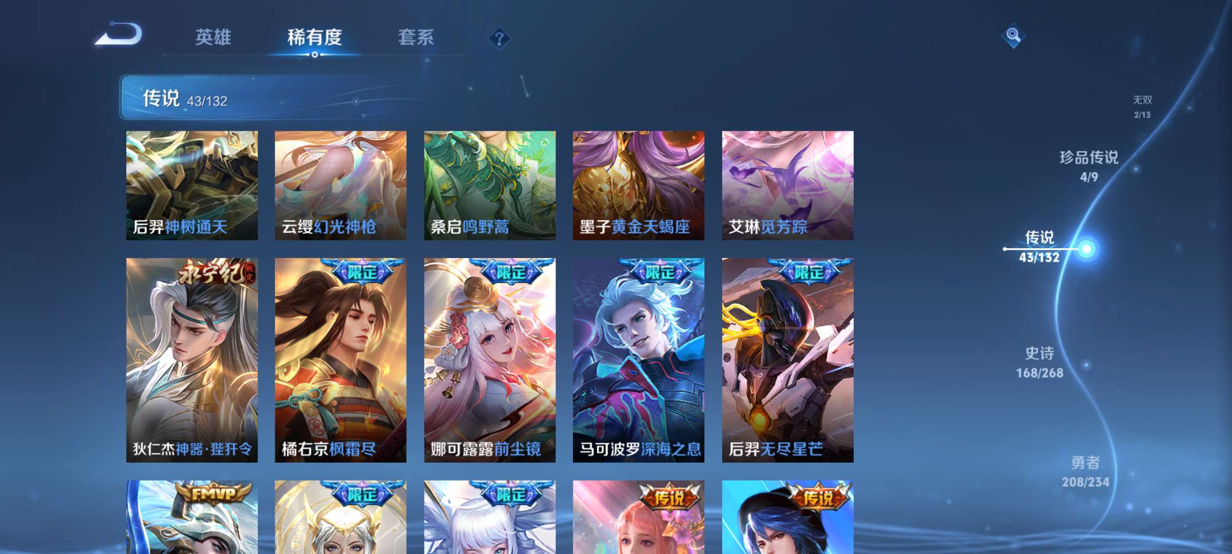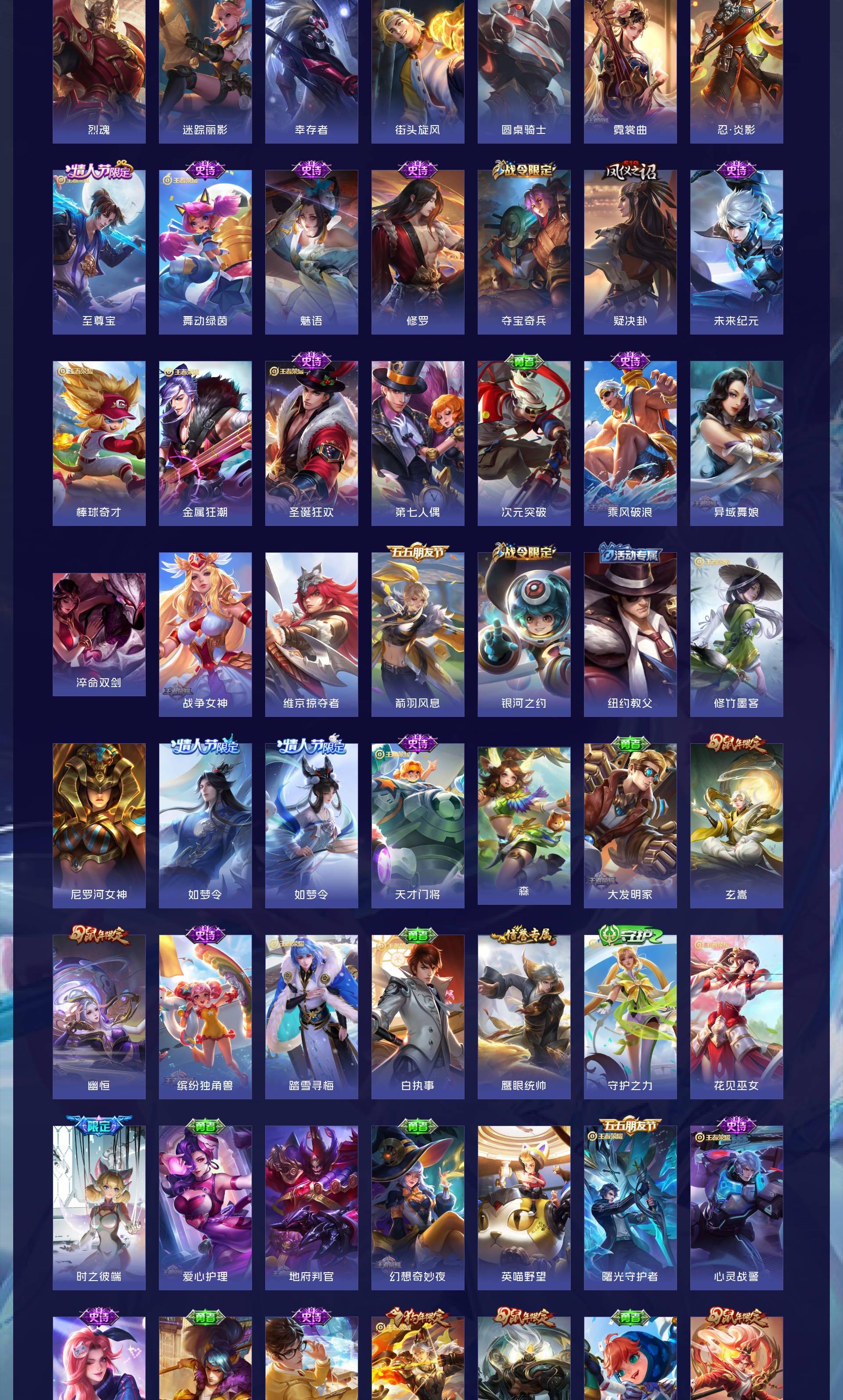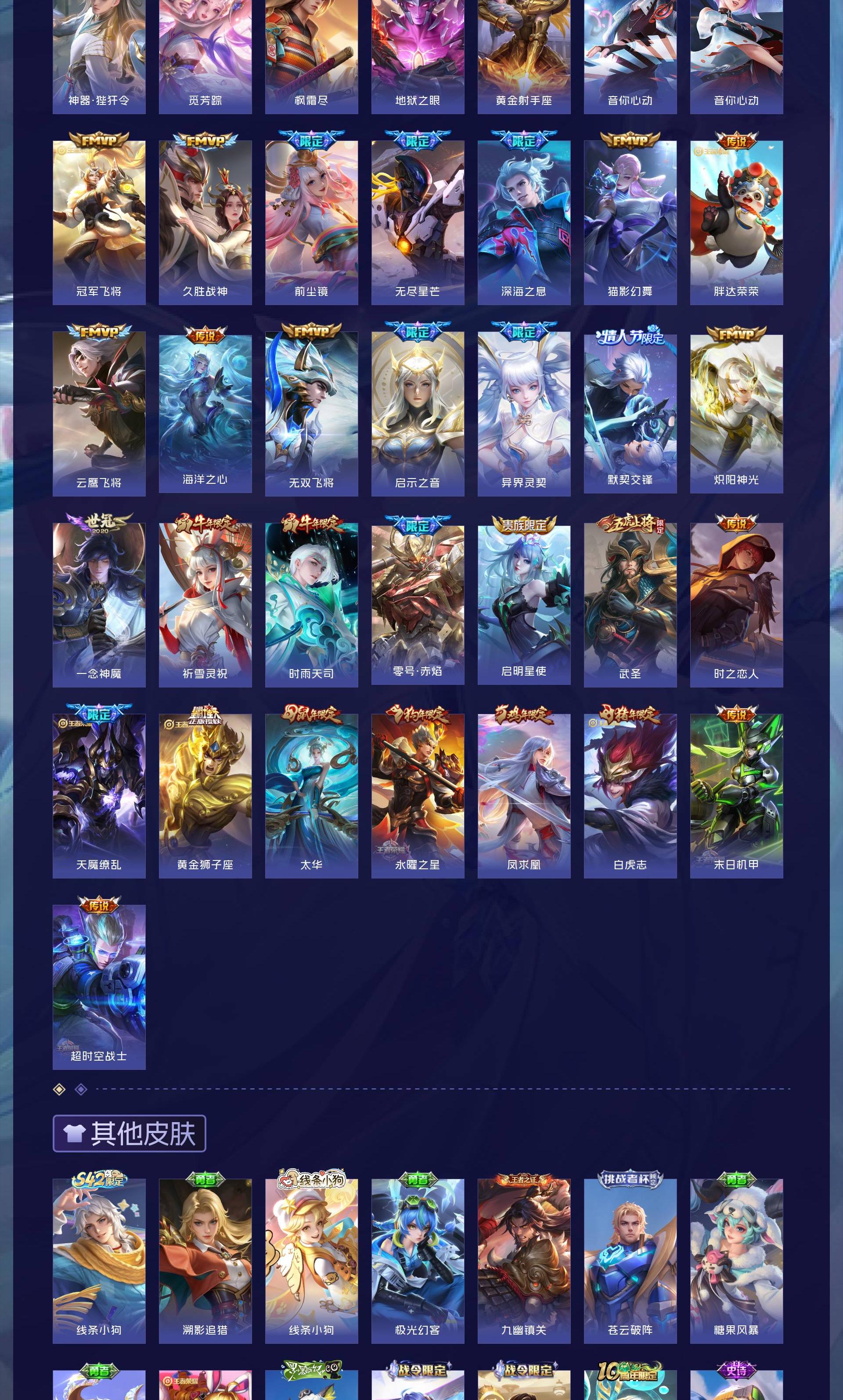 V10 皮肤511 英雄129 至尊星耀 荣耀典藏5 无双皮肤2 珍品传说4 传说43 其他皮肤461