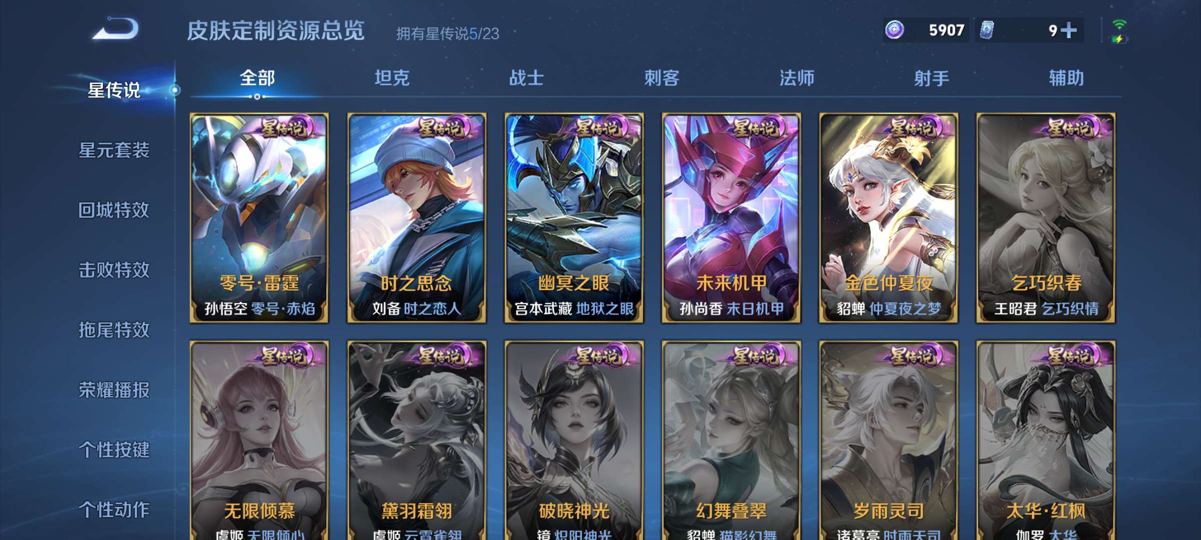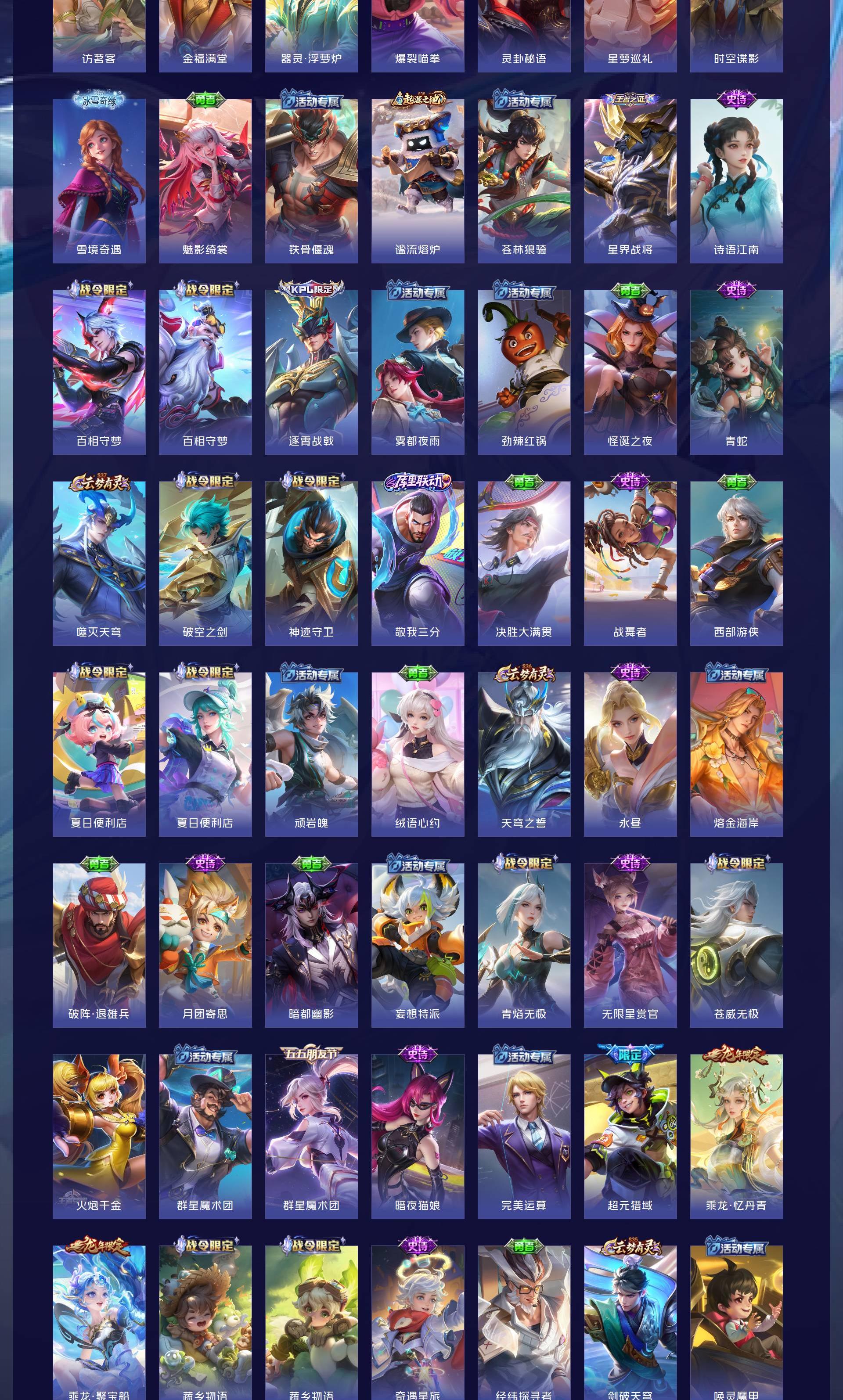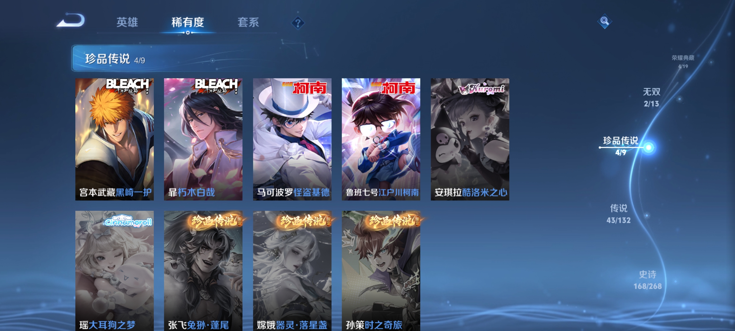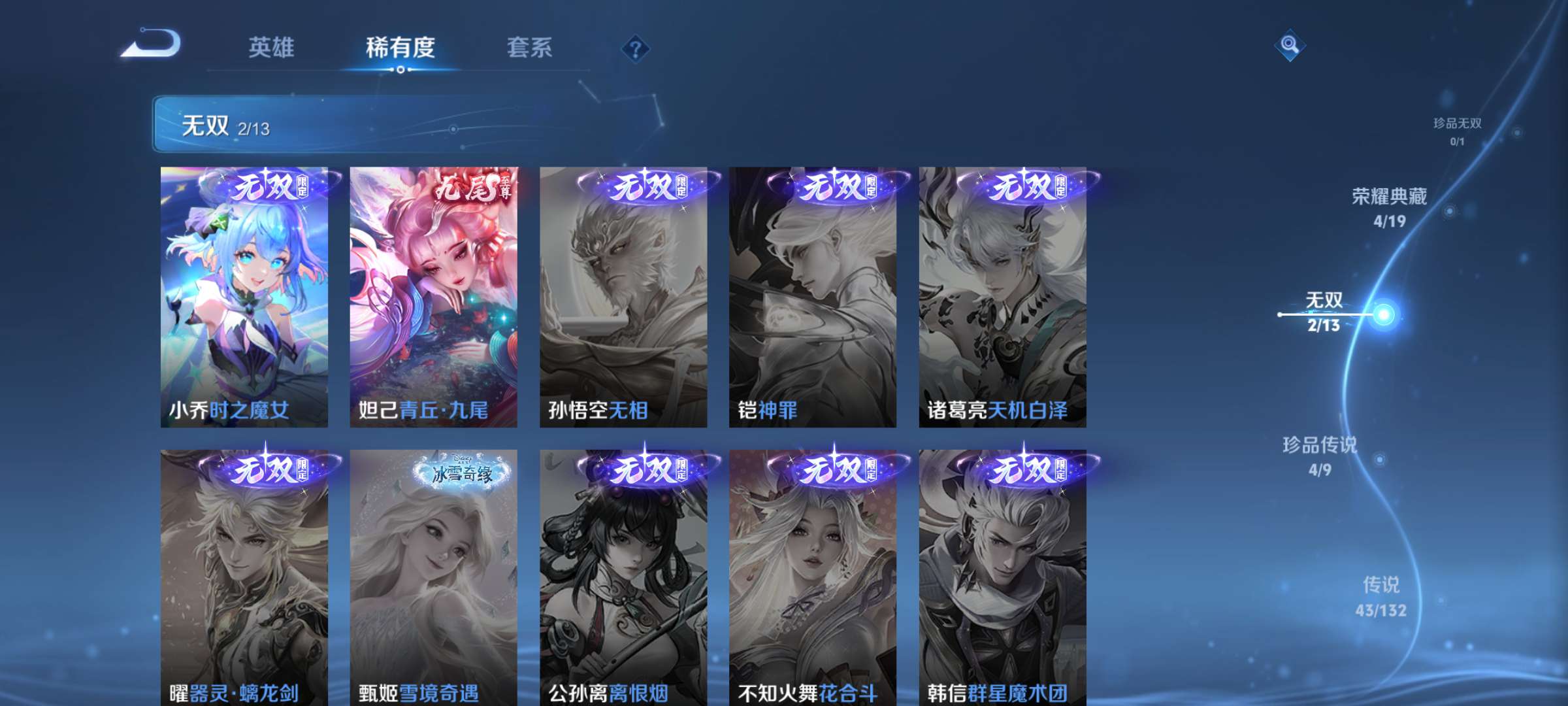 V10 皮肤511 英雄129 至尊星耀 荣耀典藏5 无双皮肤2 珍品传说4 传说43 其他皮肤461