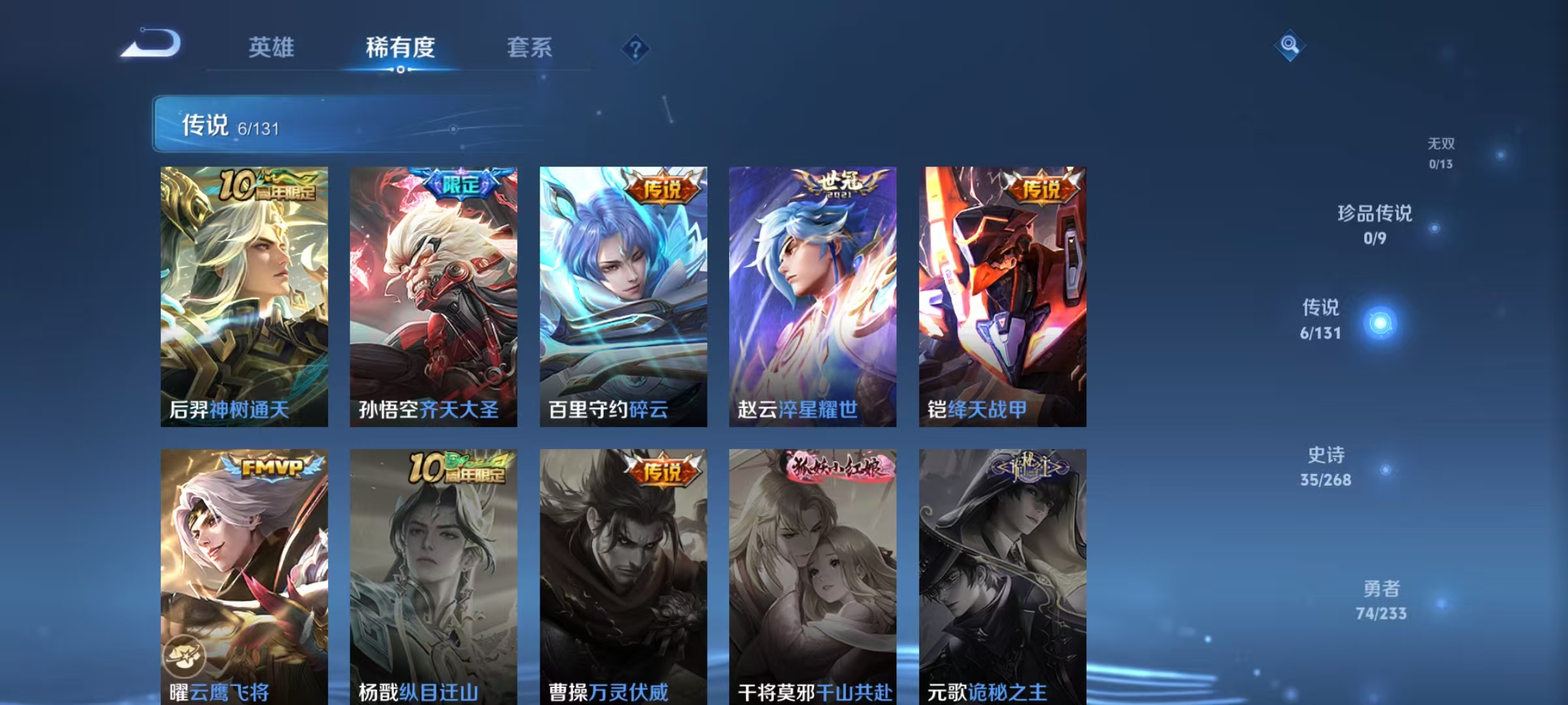 146皮肤1水晶6传说可秒换绑