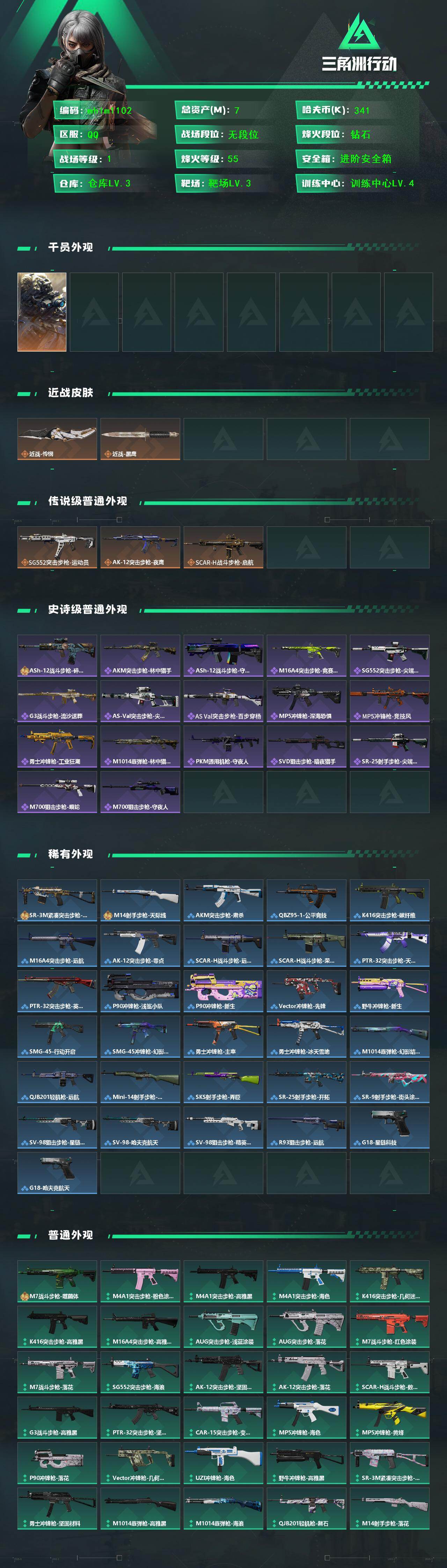 【mhlm1102】7m总资产-341k哈伏币-55烽火等级-钻石-1战场等级-无军衔