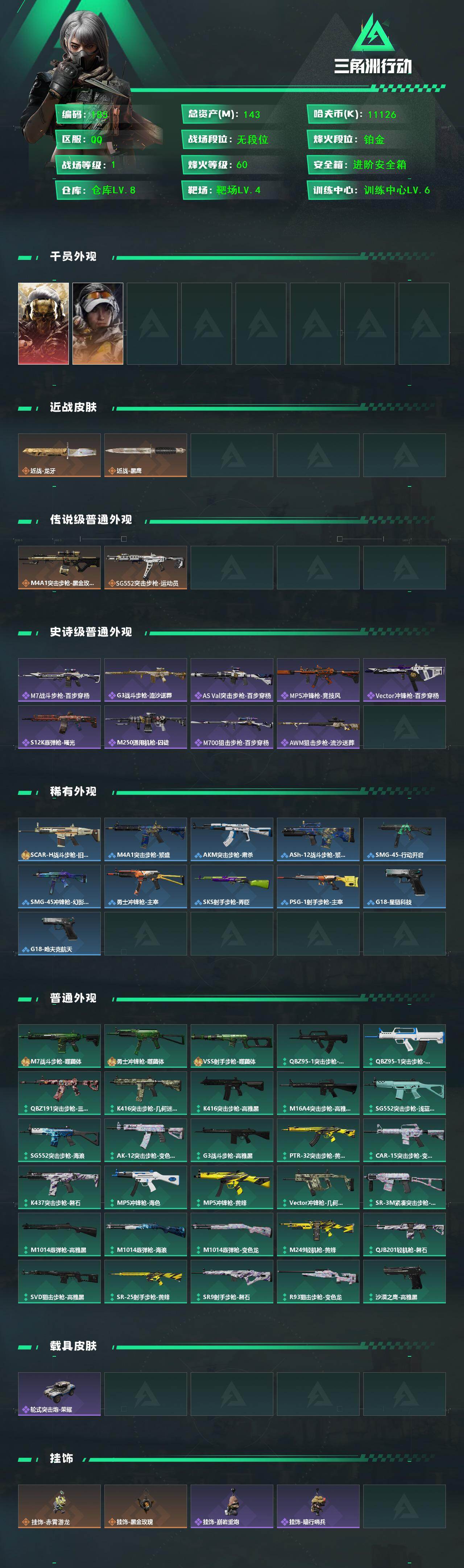 143m总资产-11126k哈伏币-60烽火等级-铂金-1战场等级-无军衔 WS0003