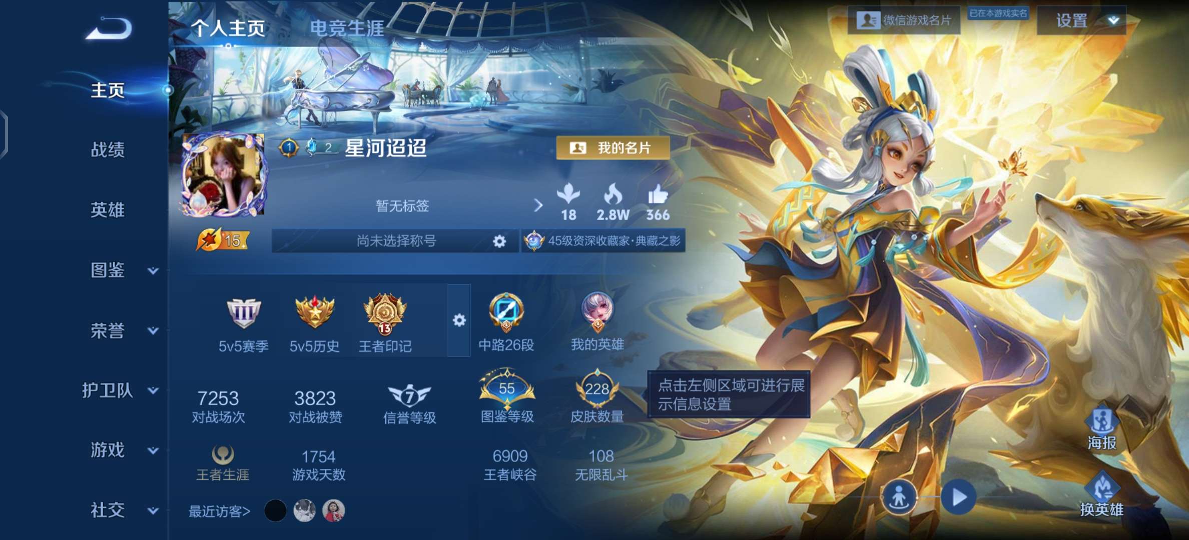 v10号,适合女生玩,辅助法师射手皮肤最多,还有一个不同区的小号,两个号亲密度已经15级了,可以传承