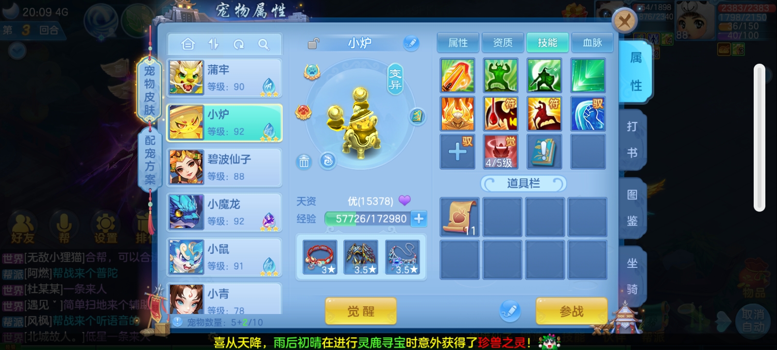 神兽蛇,五技能炉子,碧波仙子,高书小熊