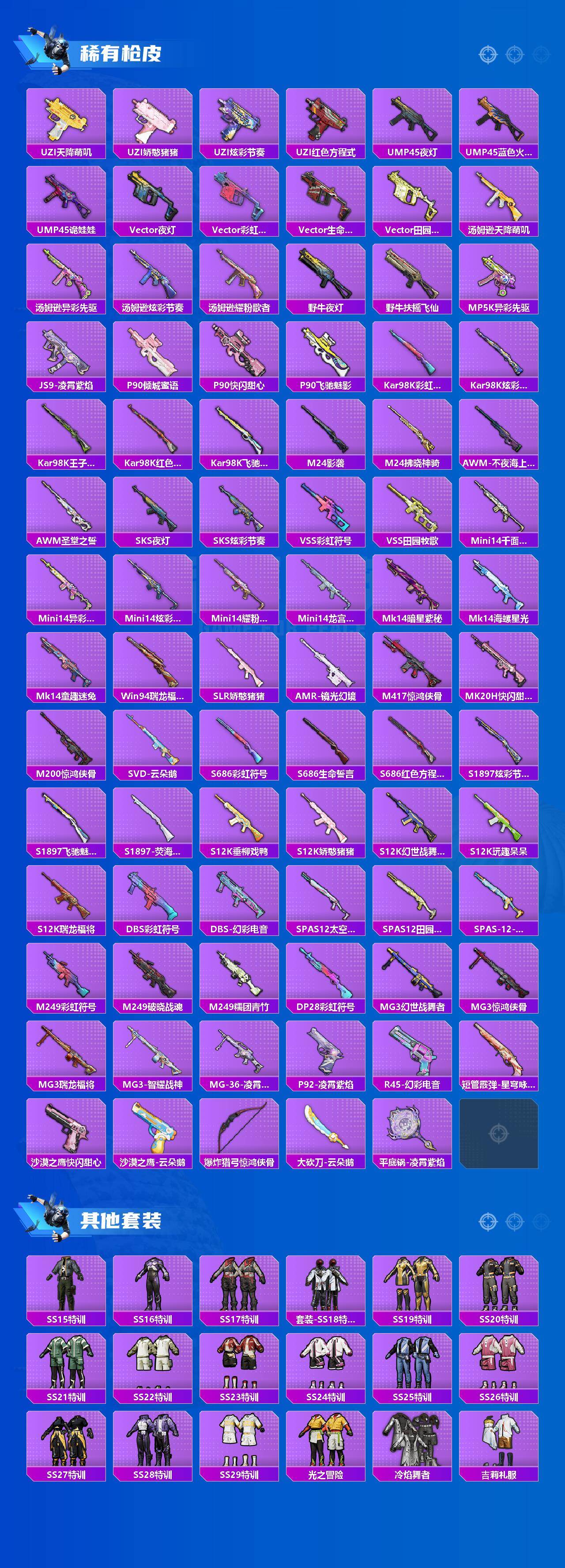 【粉色枪皮等级】:AKM-绿萝繁花(五级),M416-五爪金龙(七级),Kar98K-巳巳如意(二级),DP-28-豹影疾电(四级)