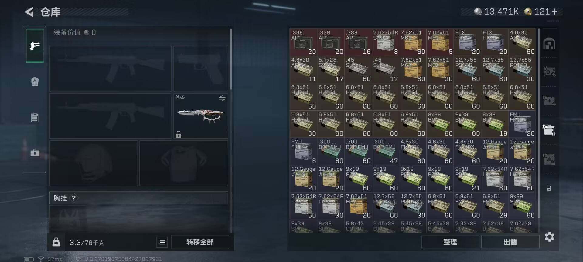 总资产(M):119M/哈夫币(K):13471K