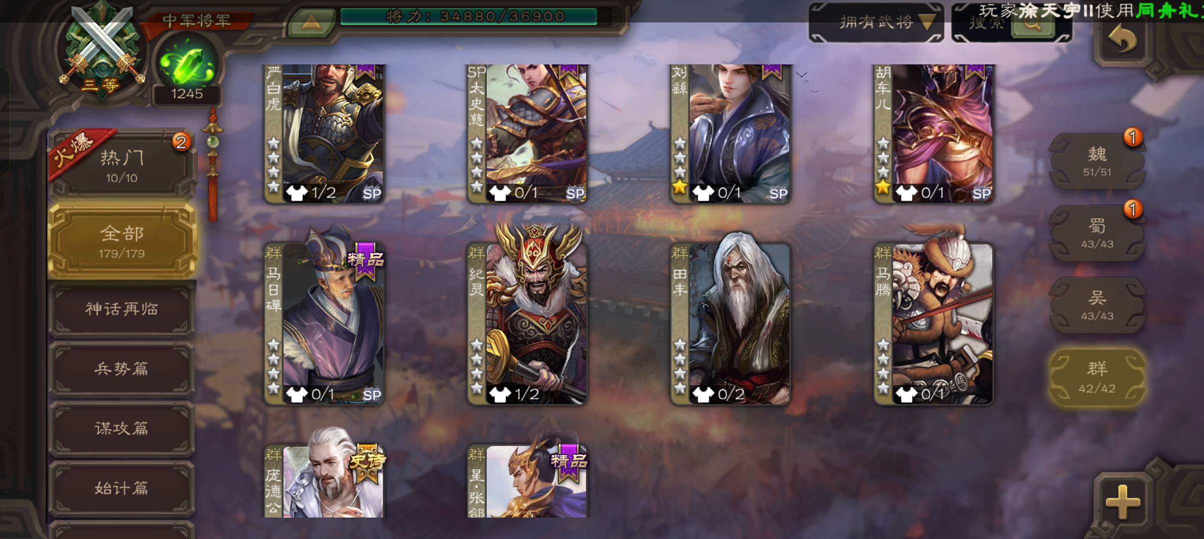 史诗武将数量: