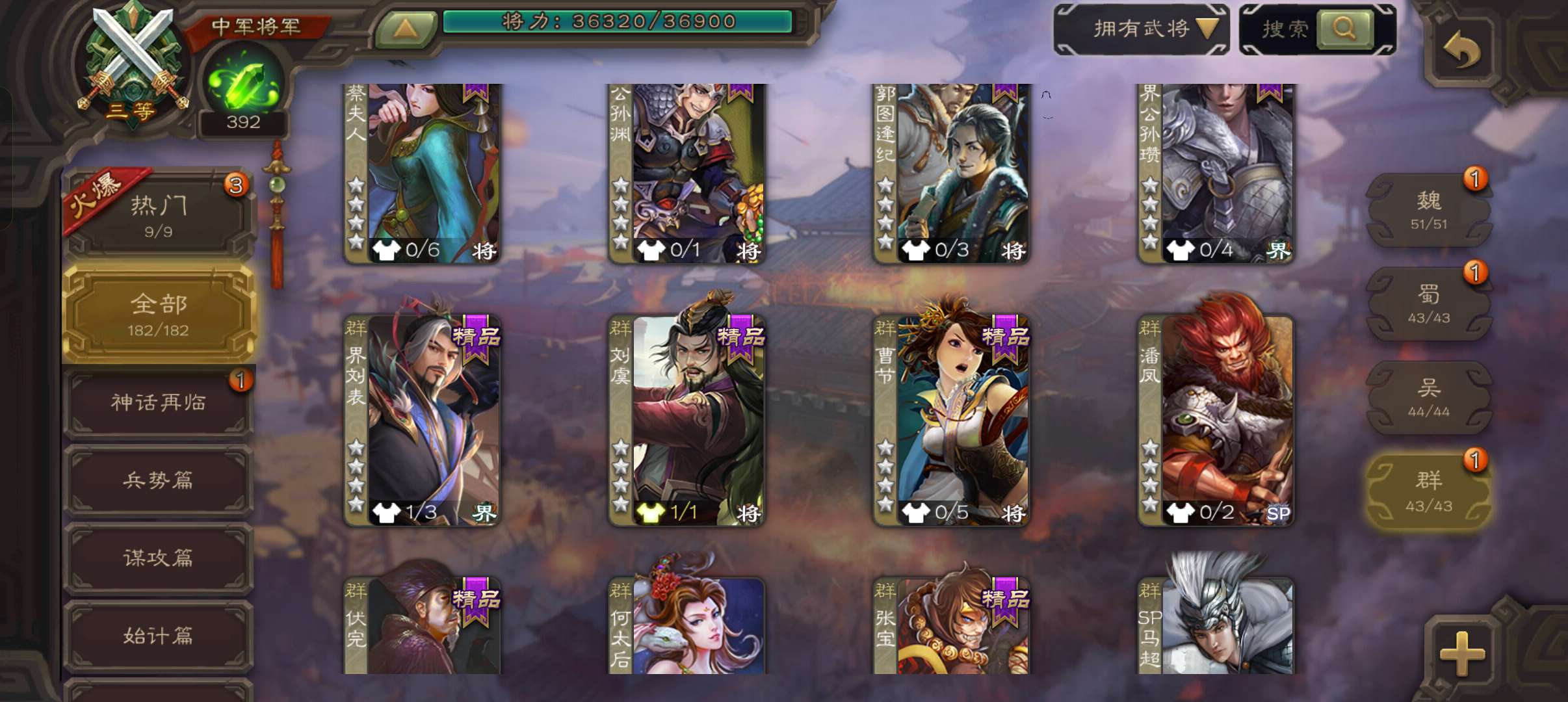 6史诗中军,玉龙动态戏志才庞德公王粲杨修左慈程昱,神吕蒙谋小乔桥公谋高顺谋韩当崔琰182将