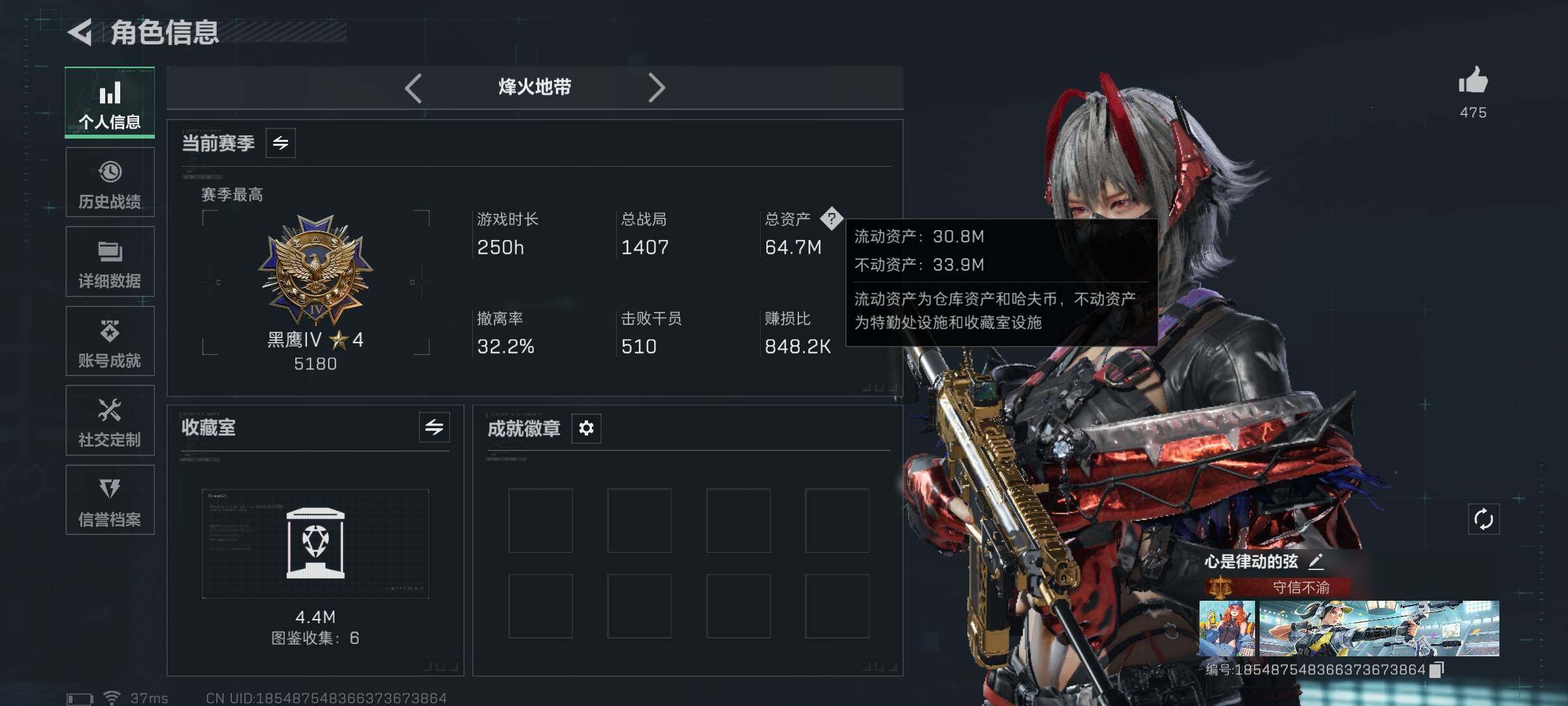 【SJZG3185】总资产(M):64M/哈夫币(K):2034K/哈夫币(K):2034K/传说枪皮数:17/全面战场等级:33_段位:尉官/烽火地带等级:60_段位:黑鹰/骇爪-维什戴尔/深蓝-不破誓约/红狼-电锯惊魂/露娜-金牌射手/近战-信条/近战-黑鹰/M4A1突击步枪-阿米娅/ASh-12战斗步枪-鹅鸭杀/SG552突击步枪-运动员/AK-12突击步枪-特斯拉线圈/SCAR-H战斗步枪-启航/G3战斗步枪-骑士/CAR-15突击步枪-阿米娅/KC17突击步枪-电锯惊魂/P90冲锋枪-