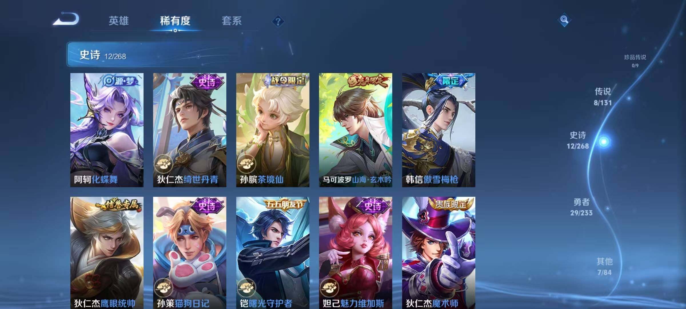 安卓Q-V1-荣耀黄金II段位-73英雄-56皮肤-8传说-12史诗【英雄全