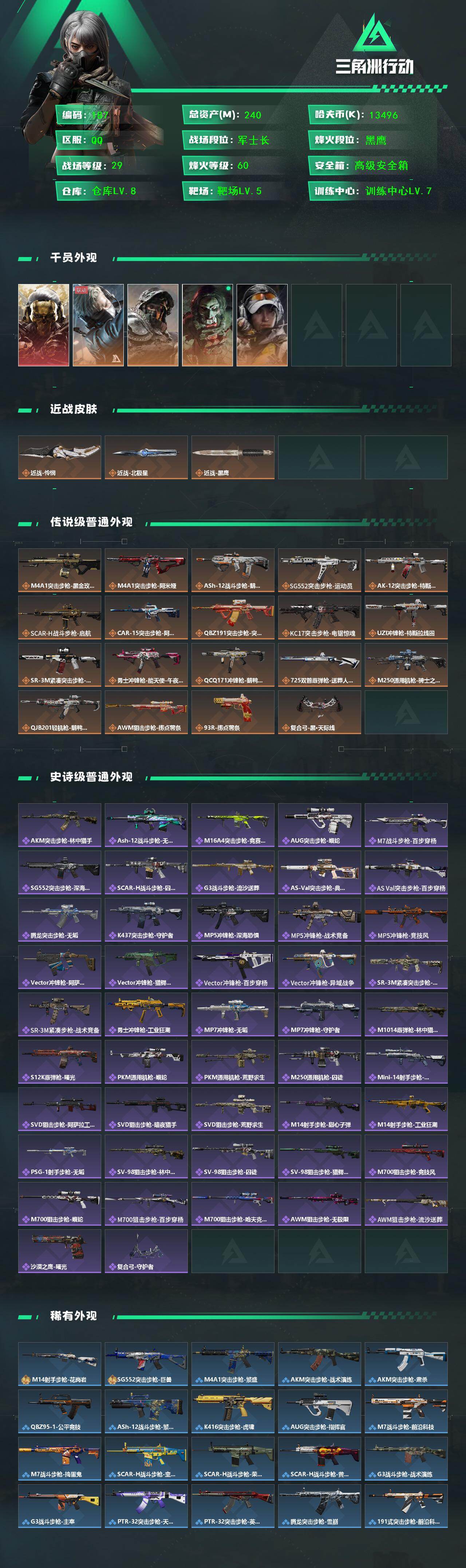240m总资产-13496k哈伏币-60烽火等级-黑鹰-29战场等级-军士长
