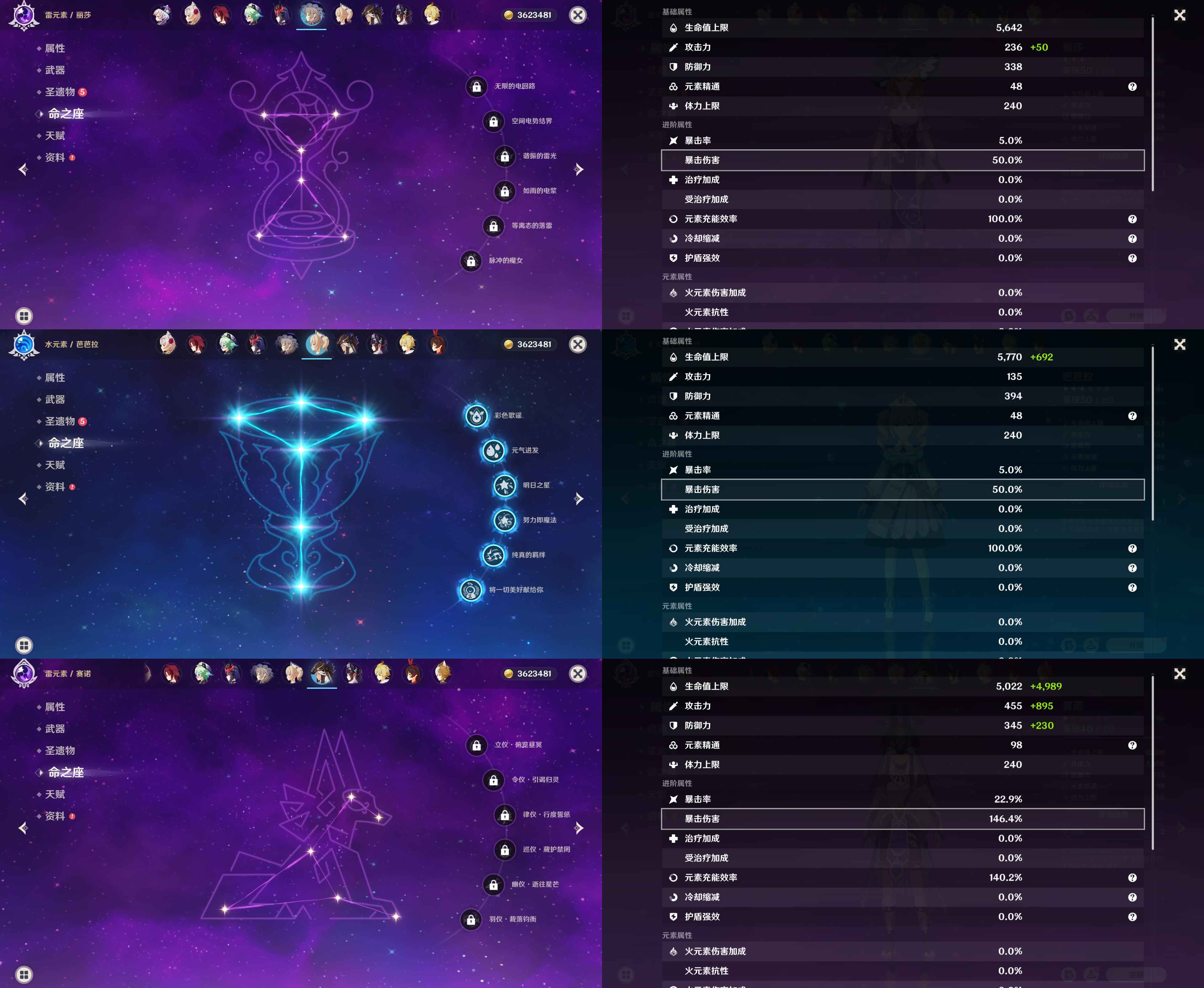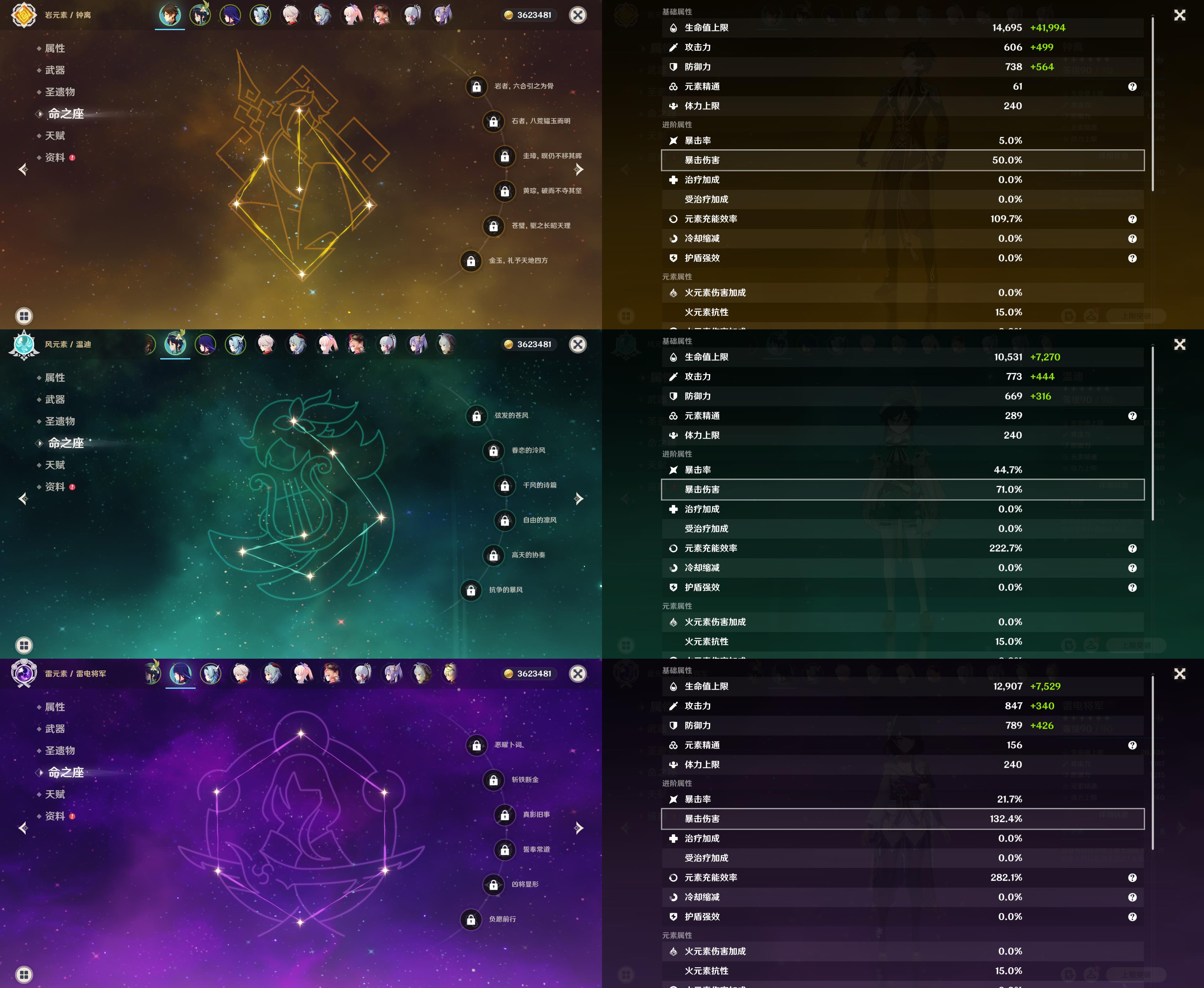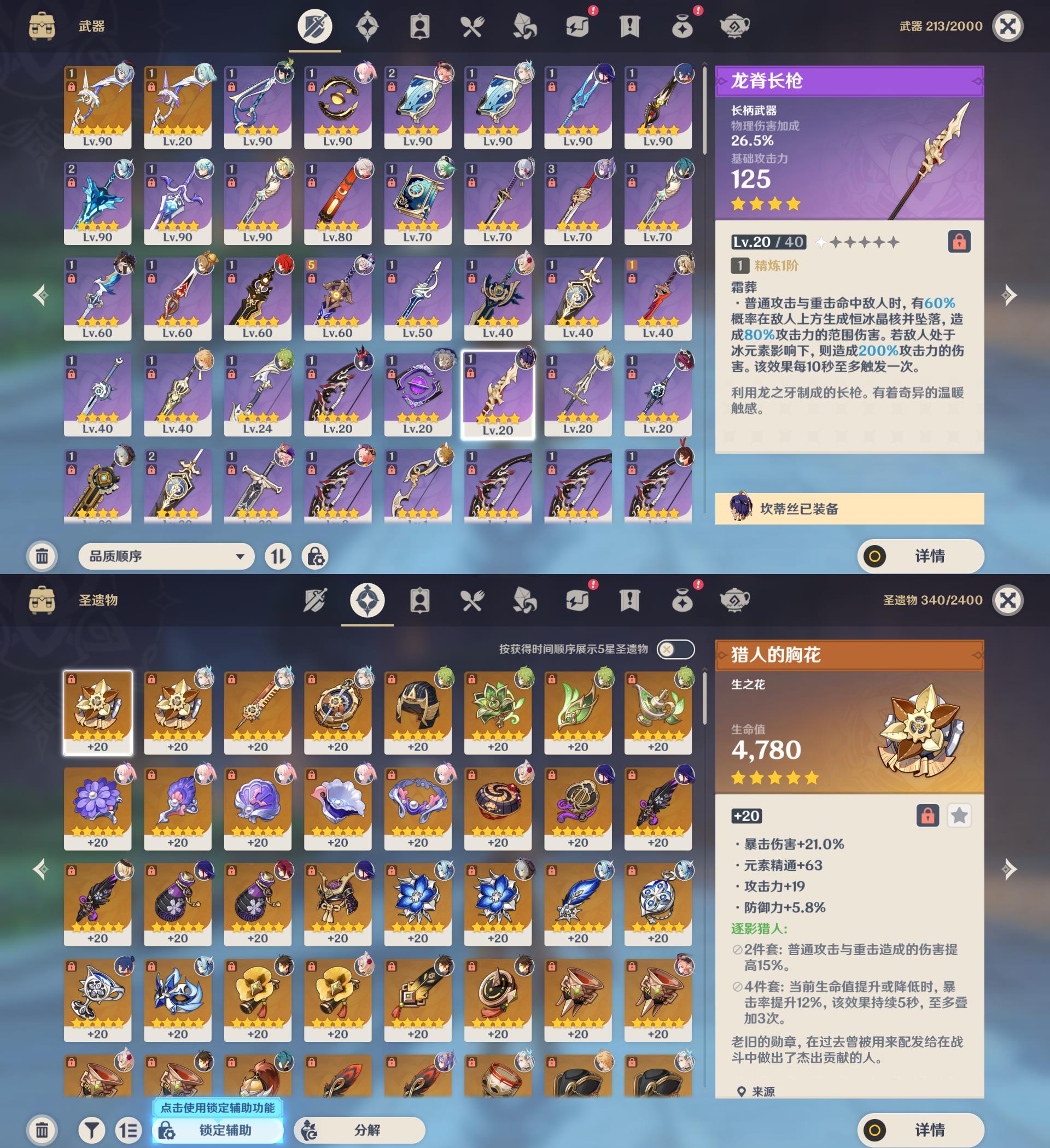 YSX153857级/19黄/女主/17个五星角色/2个五星武器/钟离/温迪/雷电将军/优菈