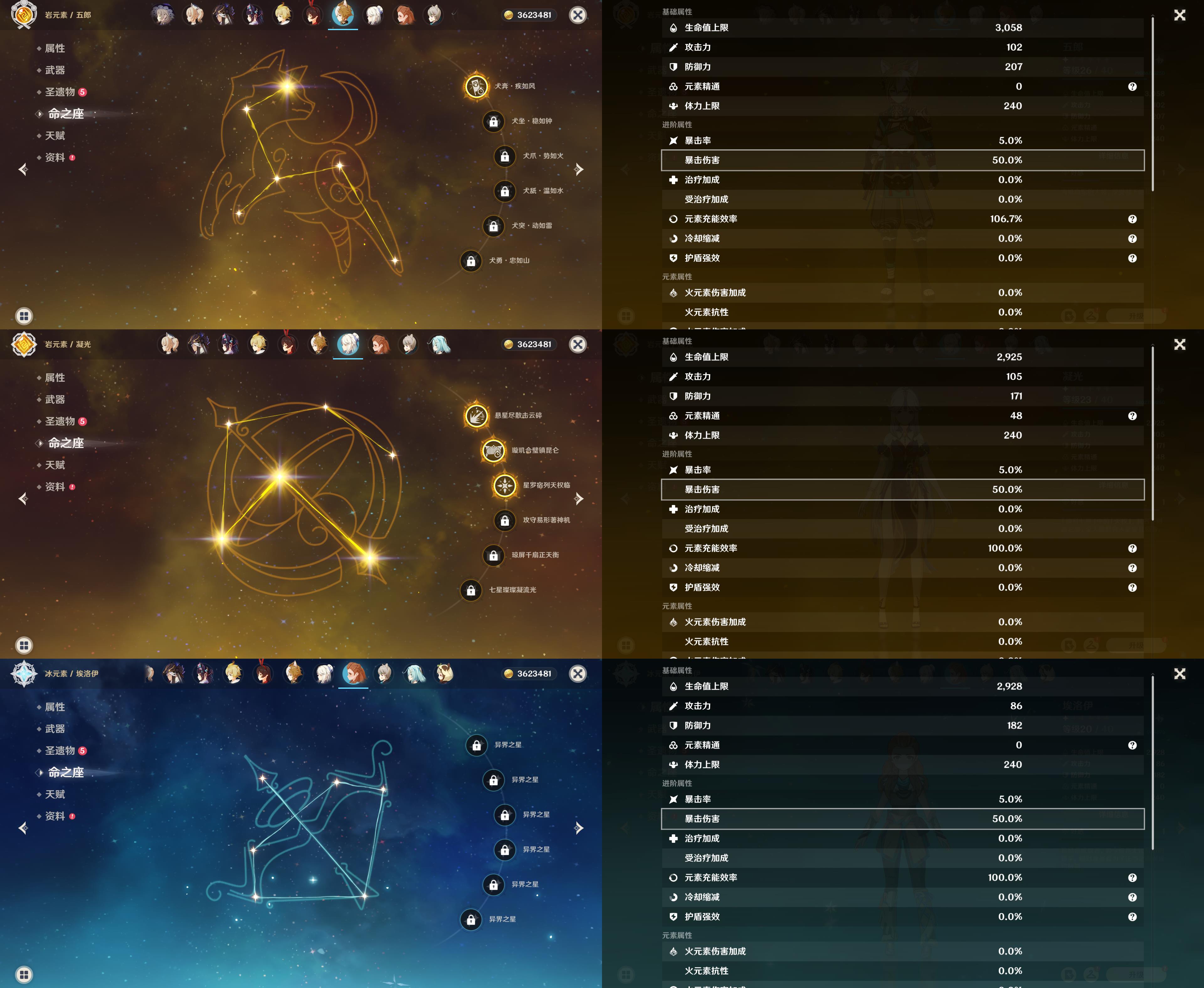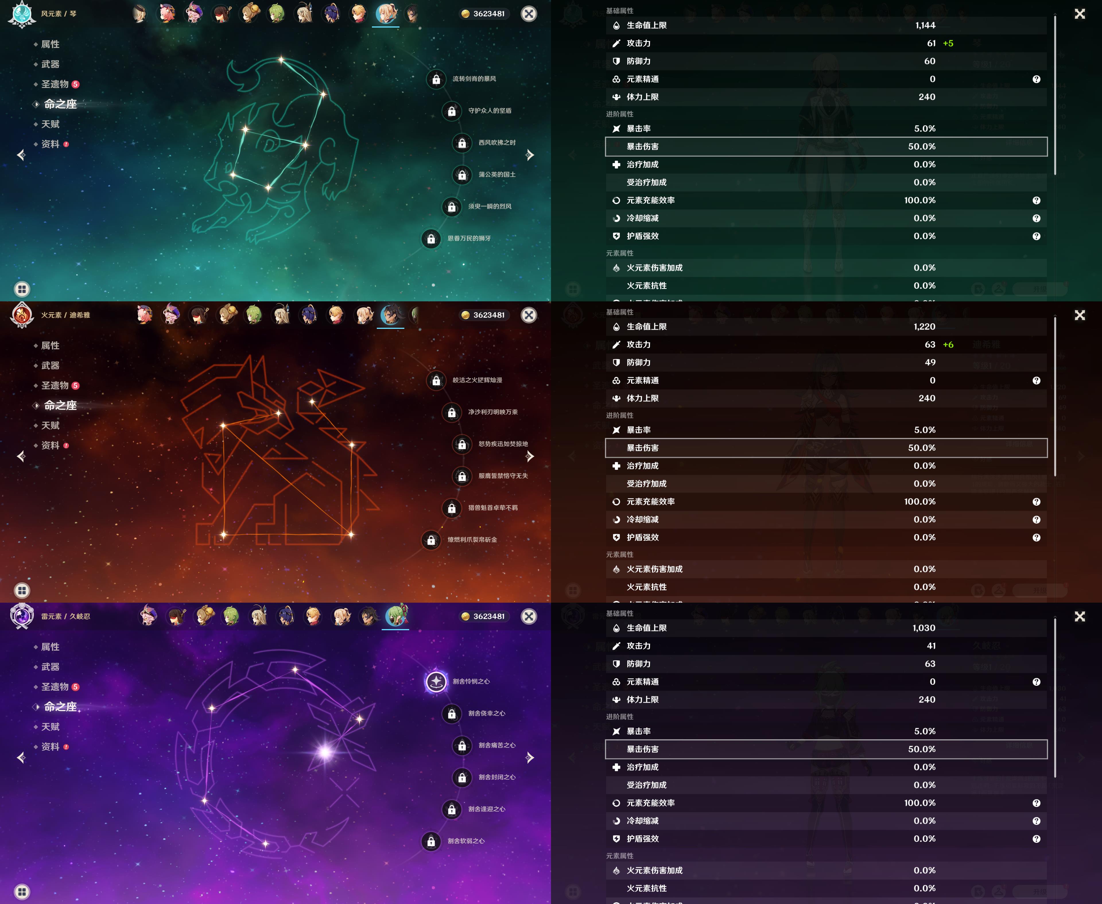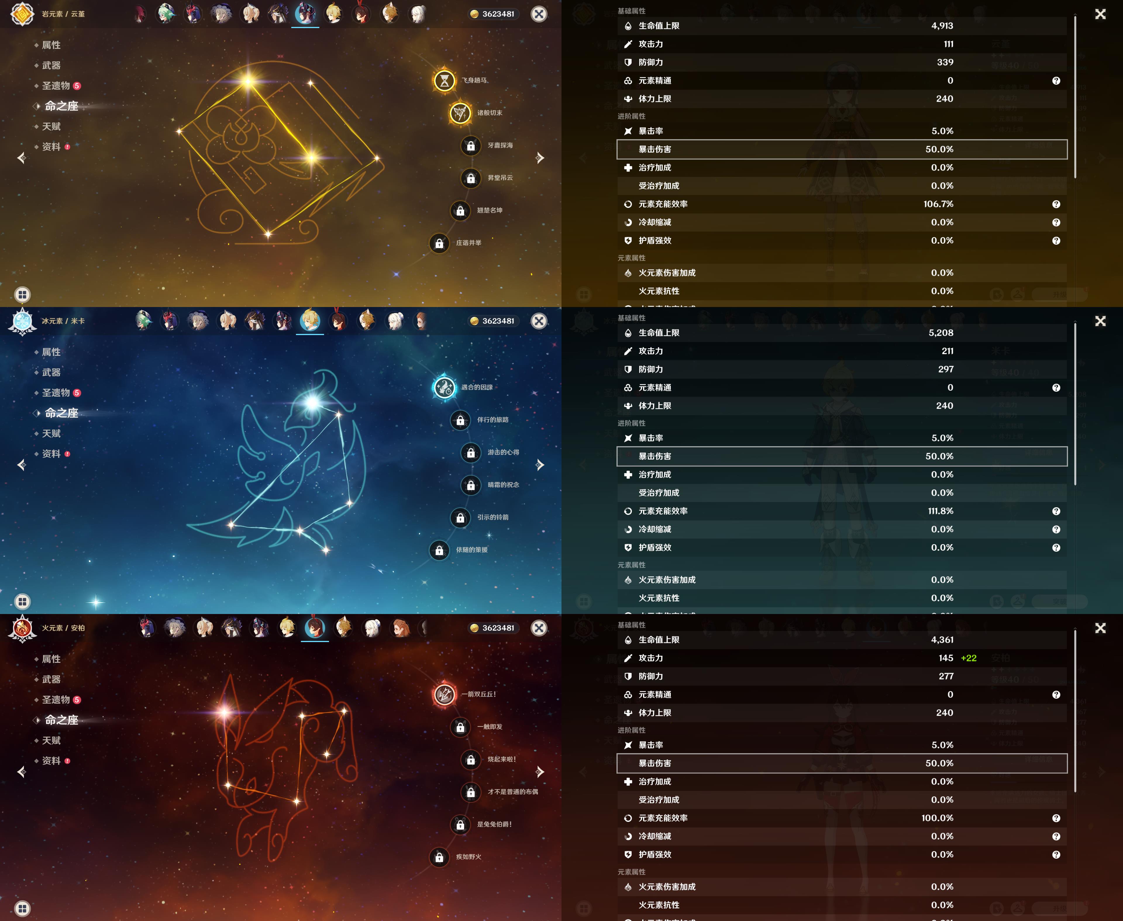 YSX153857级/19黄/女主/17个五星角色/2个五星武器/钟离/温迪/雷电将军/优菈