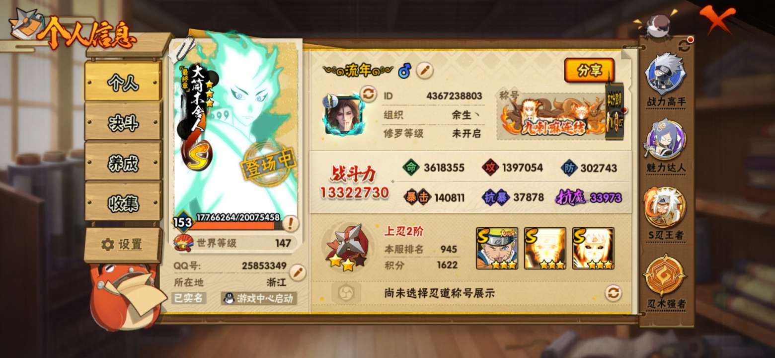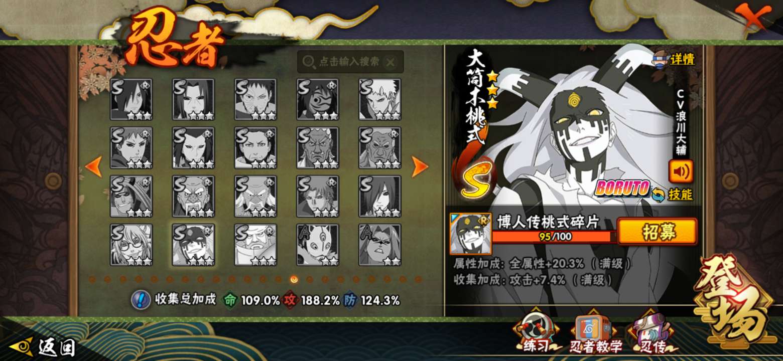v13,32s准39s,50A,大筒木桃式95片,霸体10级,1300w战力,白面,舍人,小胡子,许
