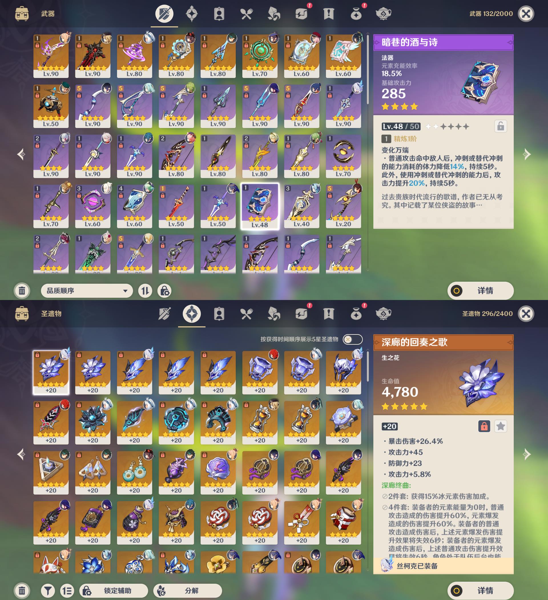 【YSYT318】57级/30黄/女主/17个五星角色/9个五星武器/魈/闲云/娜维娅/枫原万叶/0命丝柯克/优菈/神里绫华/雷电将军/夜兰/宵宫/胡桃/玛拉妮/莫娜/3命琴/1命迪卢克/刻晴/梦见月瑞希/飞雷之弦振/狼的末路/神乐之真意/精1支离轮光/息灾/碧落之珑/四风原典/天空之卷/金流监督