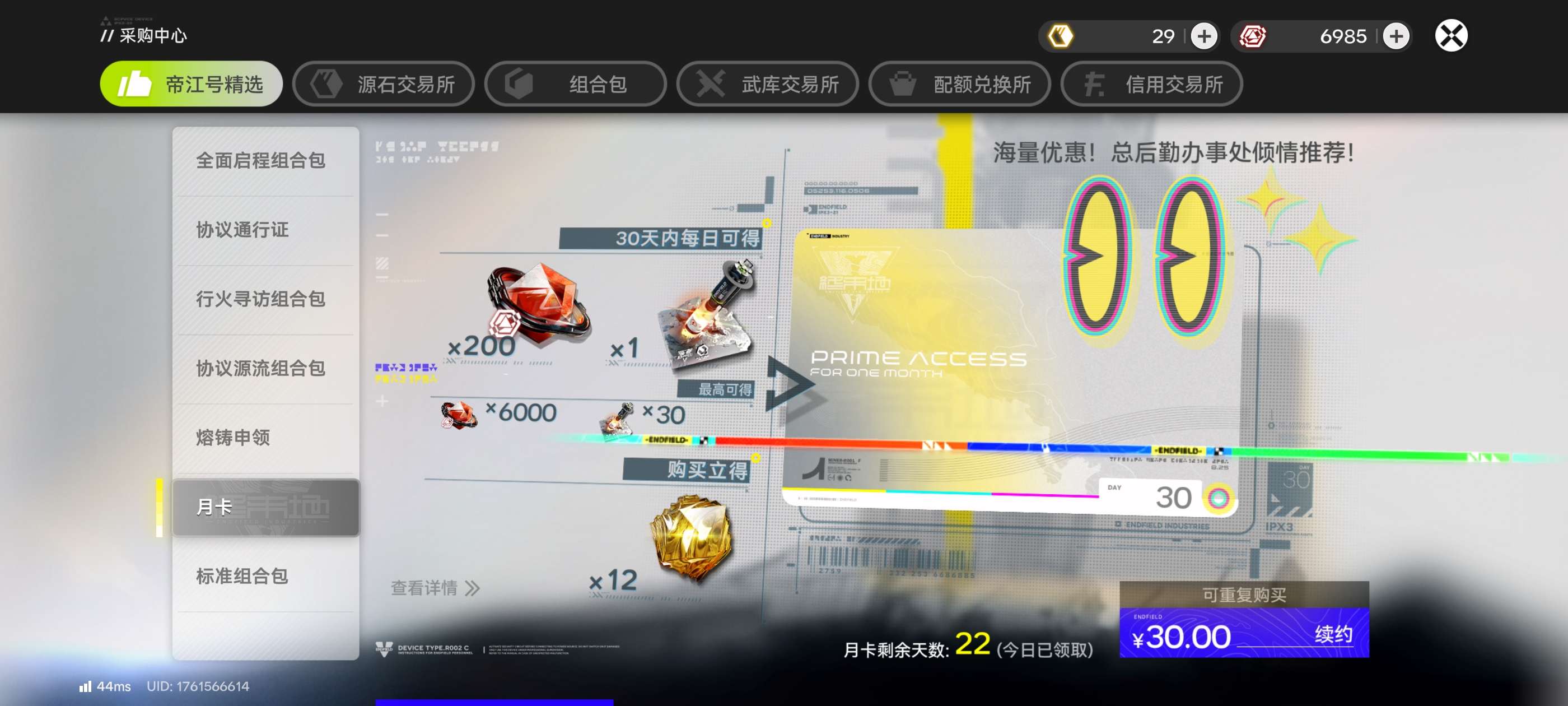 10金11莱万汀,俊卫 余烬,小羊 带5个6星武器 新手池垫了70抽,带月卡