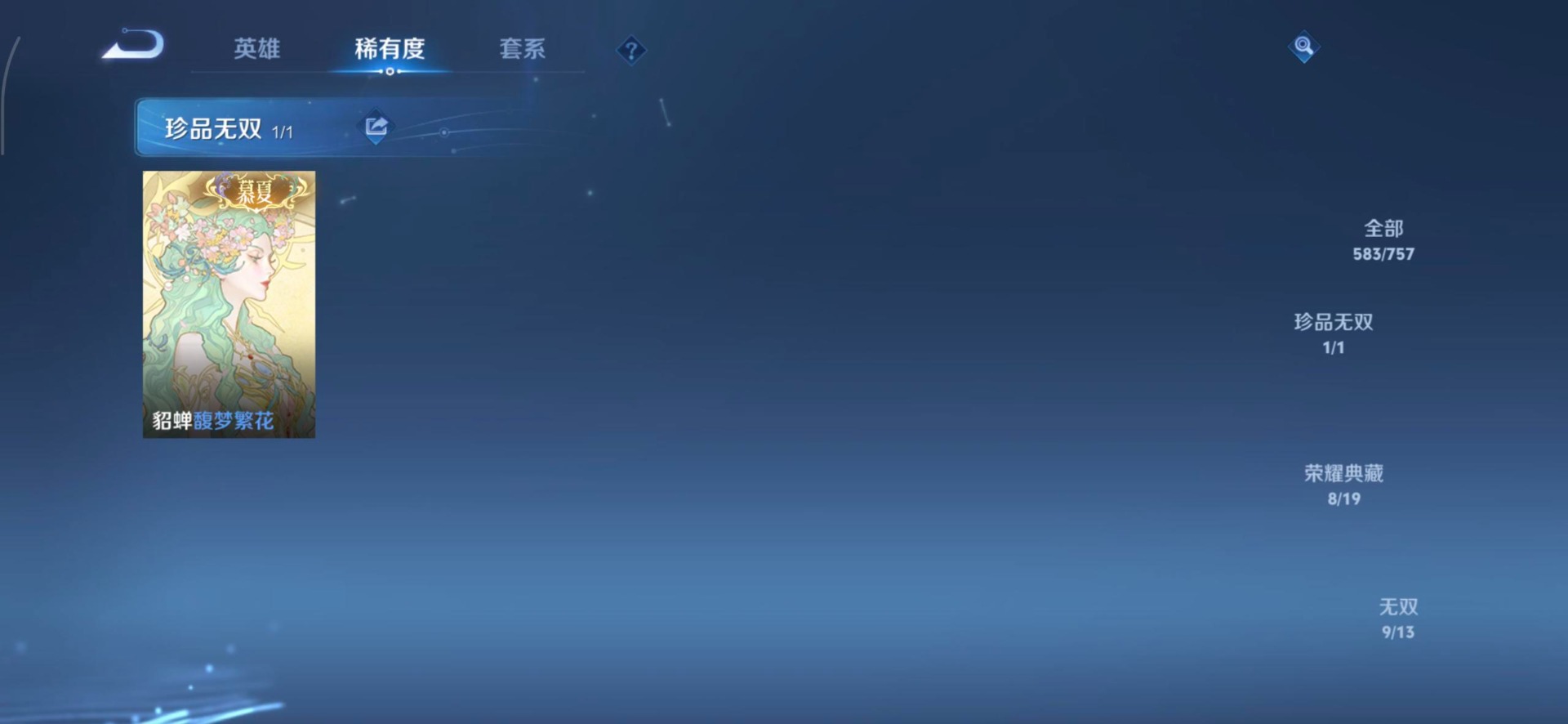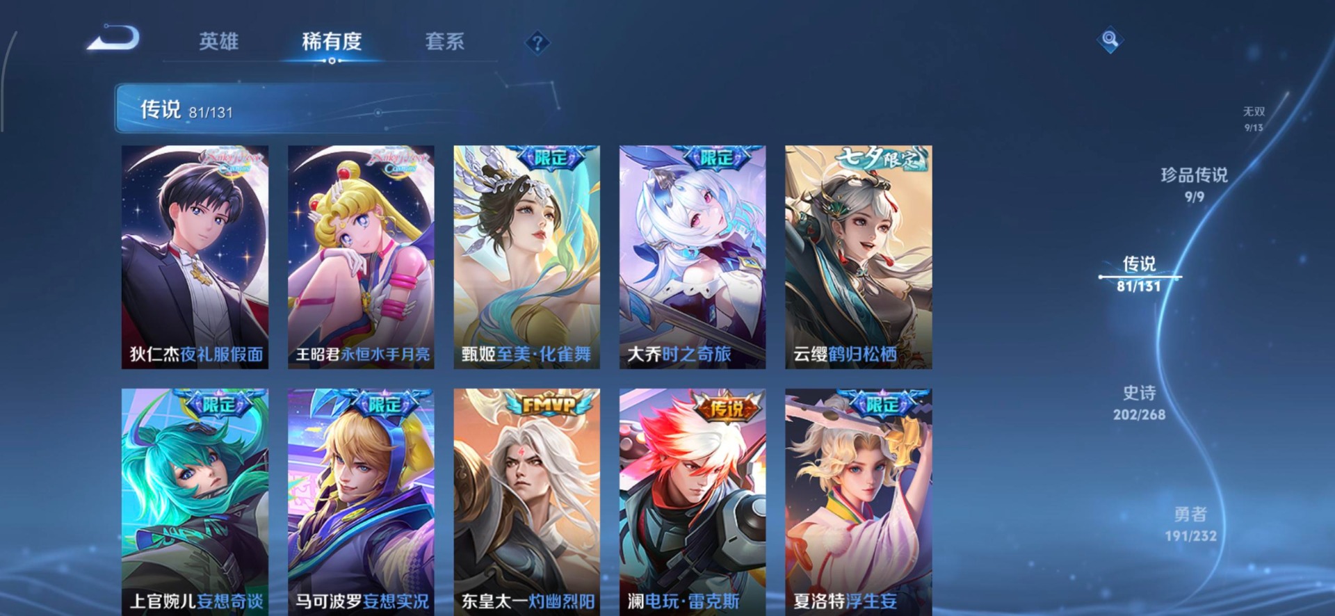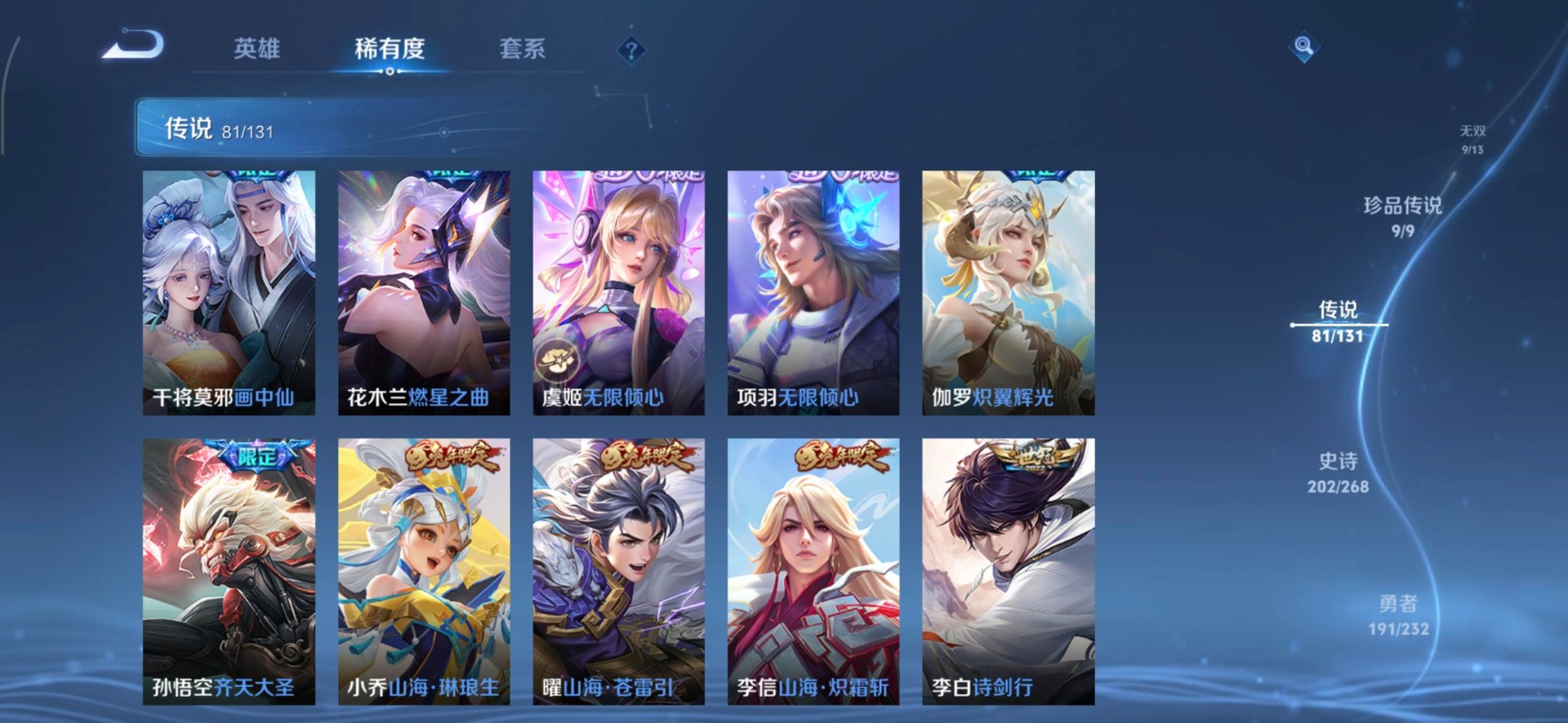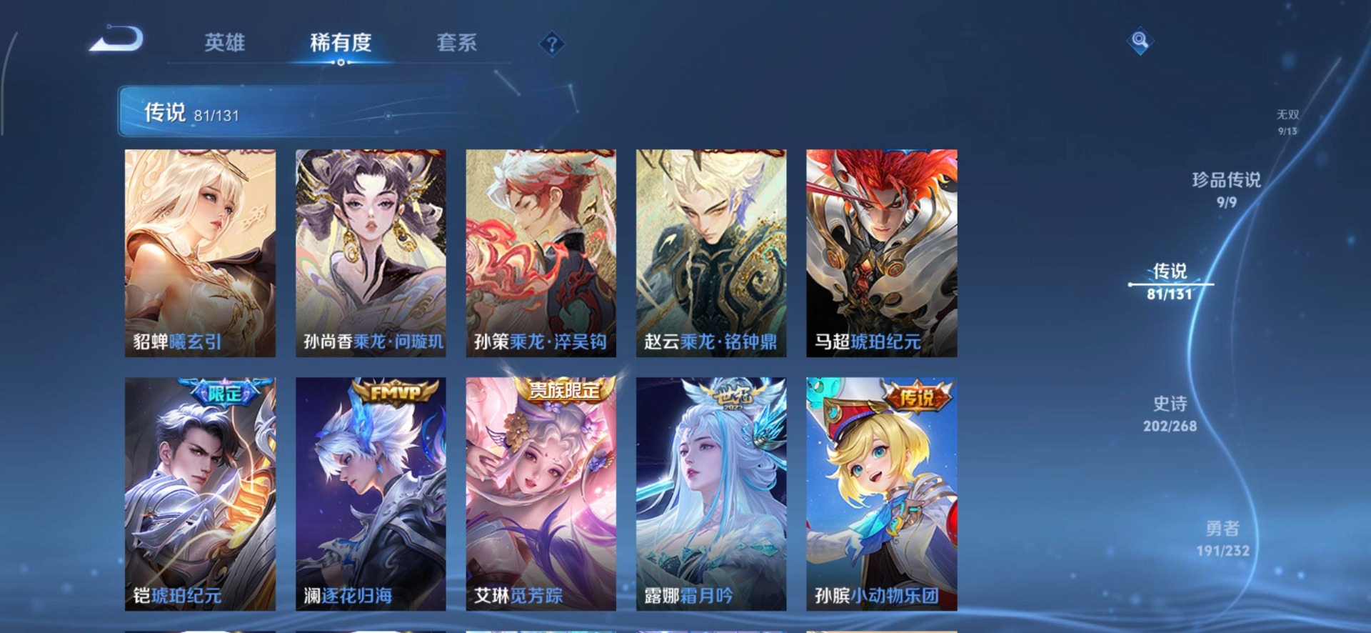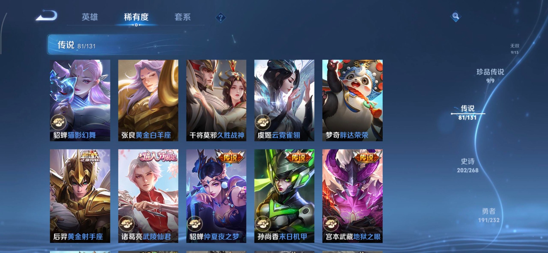 V10 8典藏 1珍品无双 9无双 9珍品传说 81传说 128英雄 583皮肤 典藏英雄武则天 可