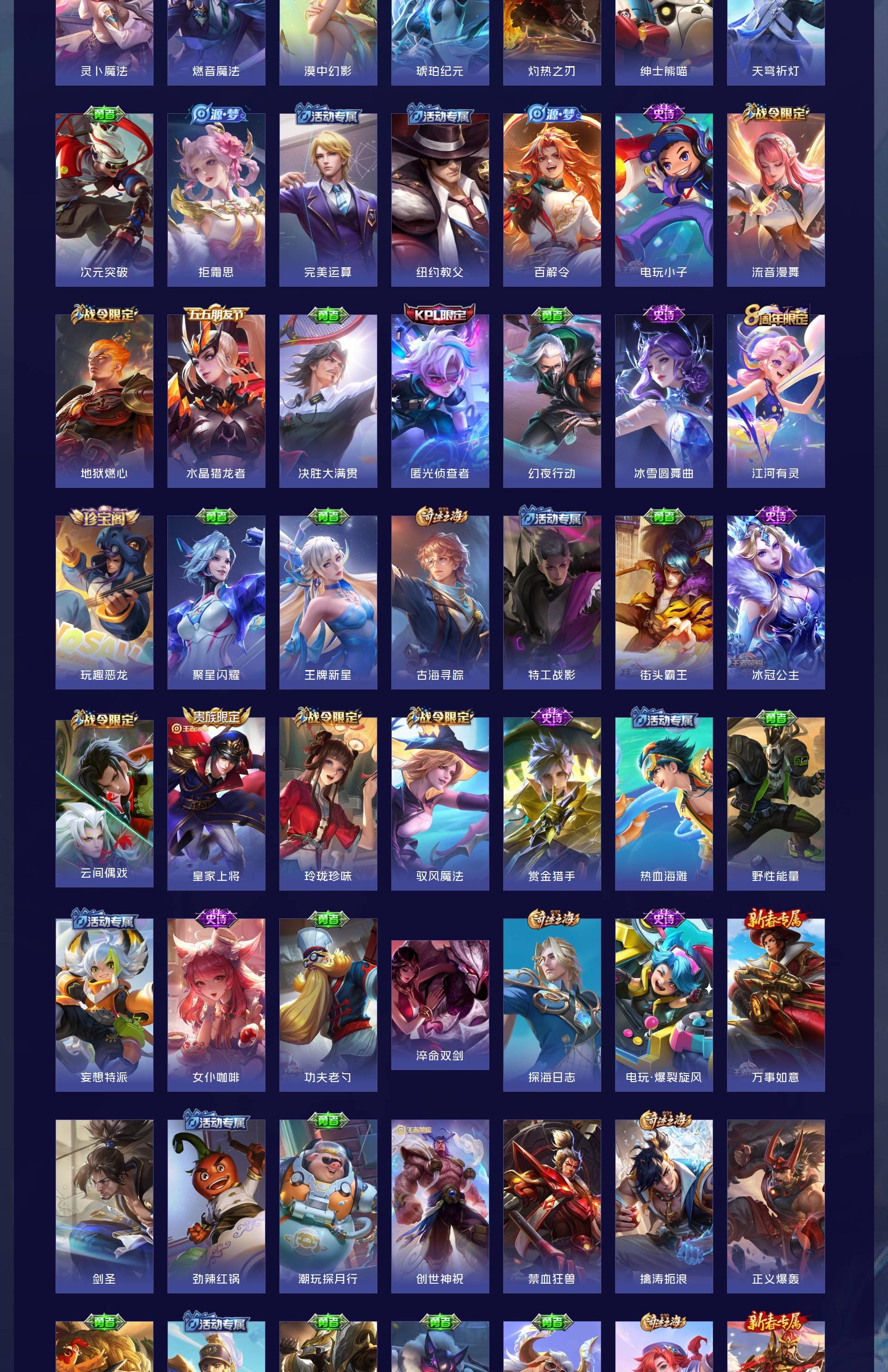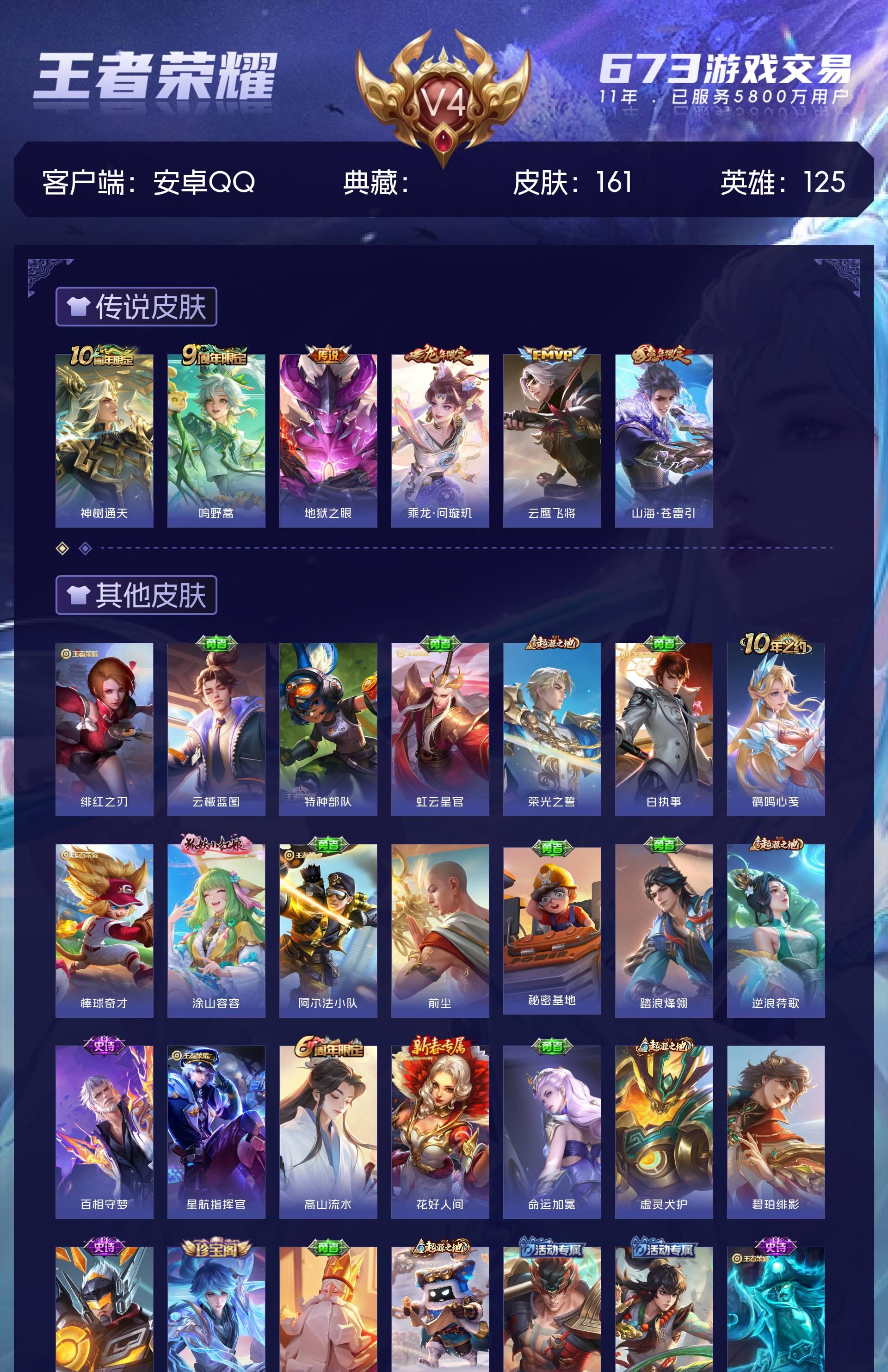 V4 皮肤161 英雄125 永恒钻石 星传说1 传说7 其他皮肤160