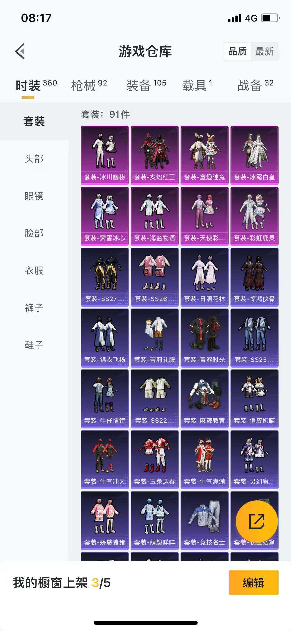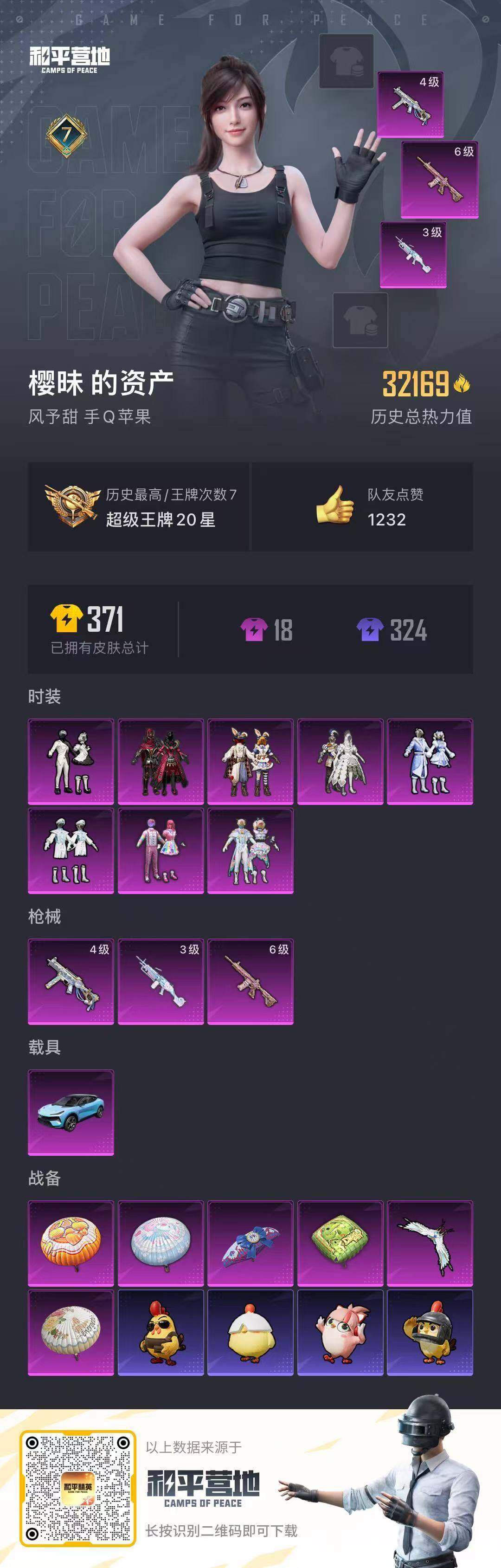 苹果,手Q-8粉装-3特效枪-1载具-1粉色飞行器-32169热力值-7王牌印记-91套装-92枪皮