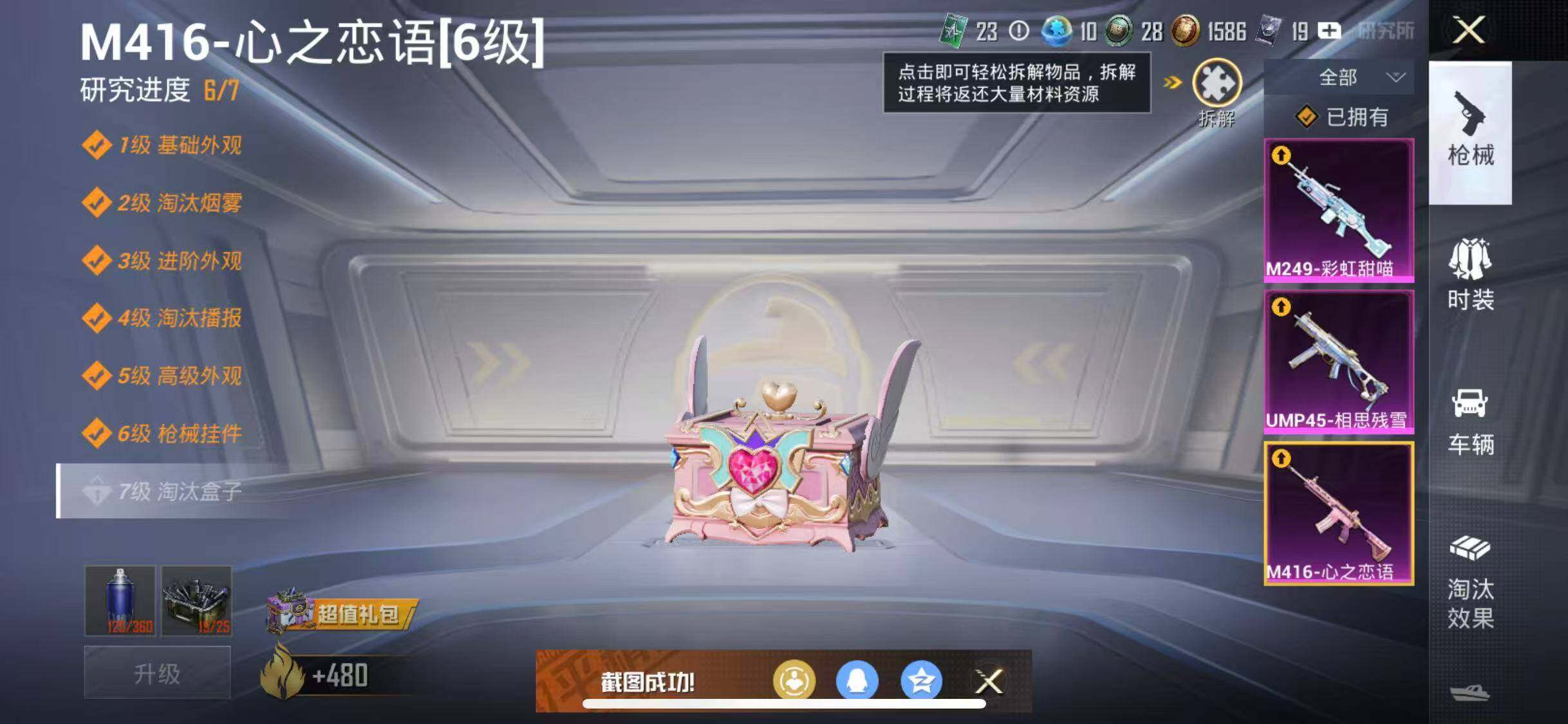 【粉色枪皮等级】:M416-心之恋语(六级),UMP45