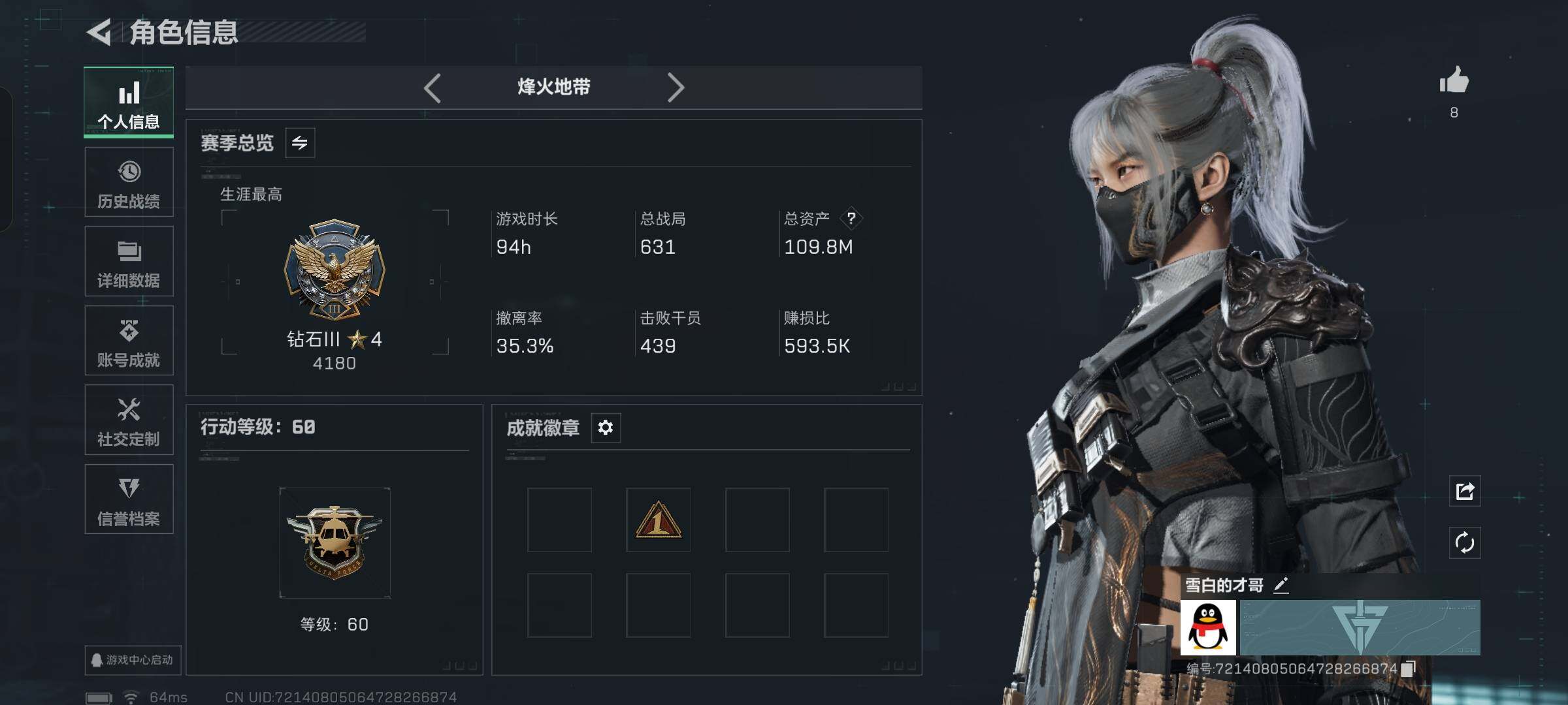 yy24三角洲资产108m 水墨云图 夜鹰 特勤4个满级 部门全2级 超多礼包