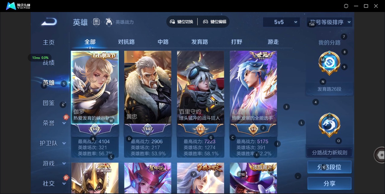 V8 1典藏 13传说 126英雄 244皮肤 可修改实名 【稀有英雄】大司命