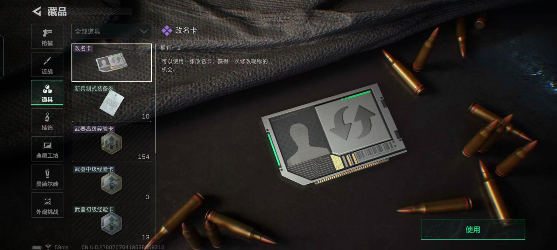 总资产:62.7M 1干员外观 1近战传说 17传说枪械 哈夫币:47.017