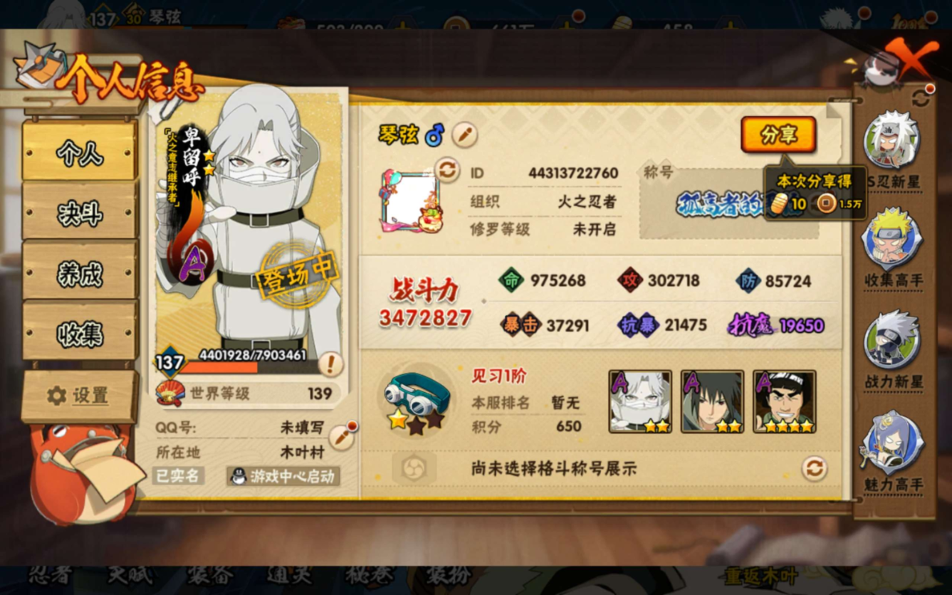 安卓QQ-新手人坑免肝首选号-S忍者数:6- A忍者数:15