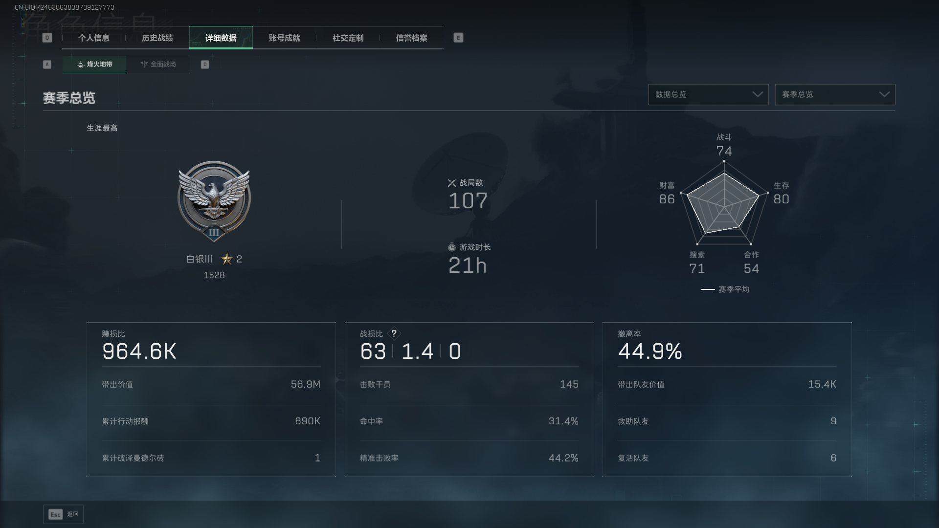 【总资产(M)】5.2【哈夫币】542.36【行动等级】32