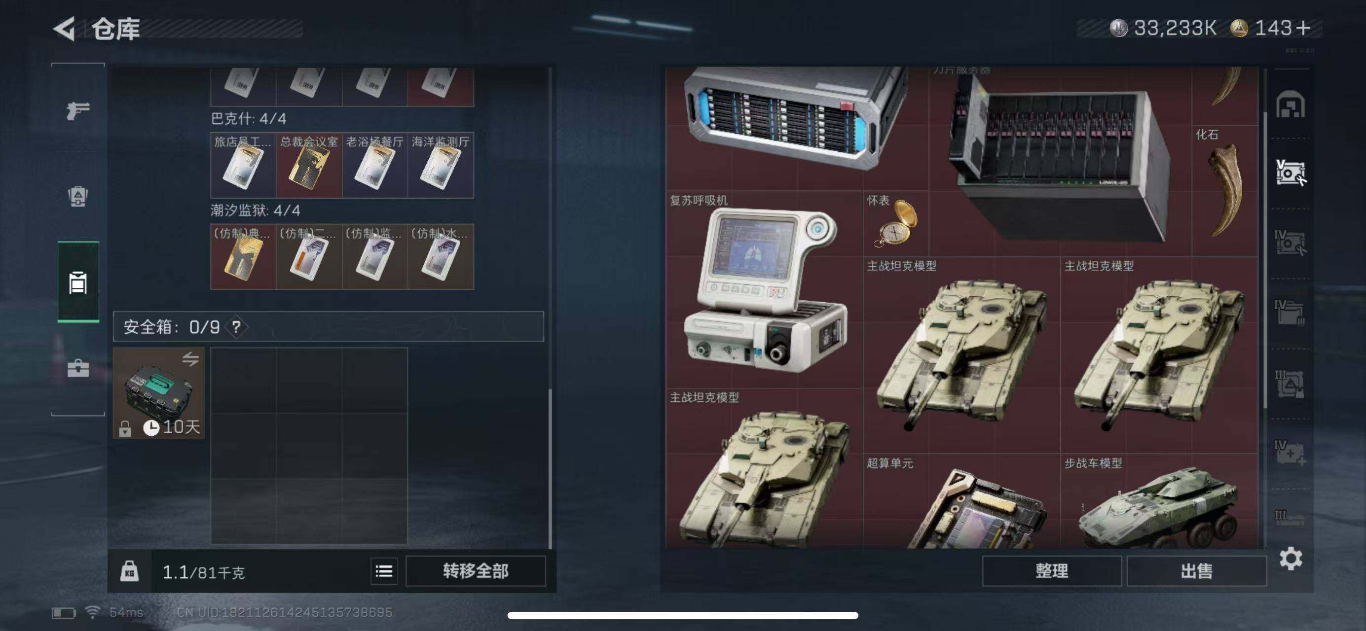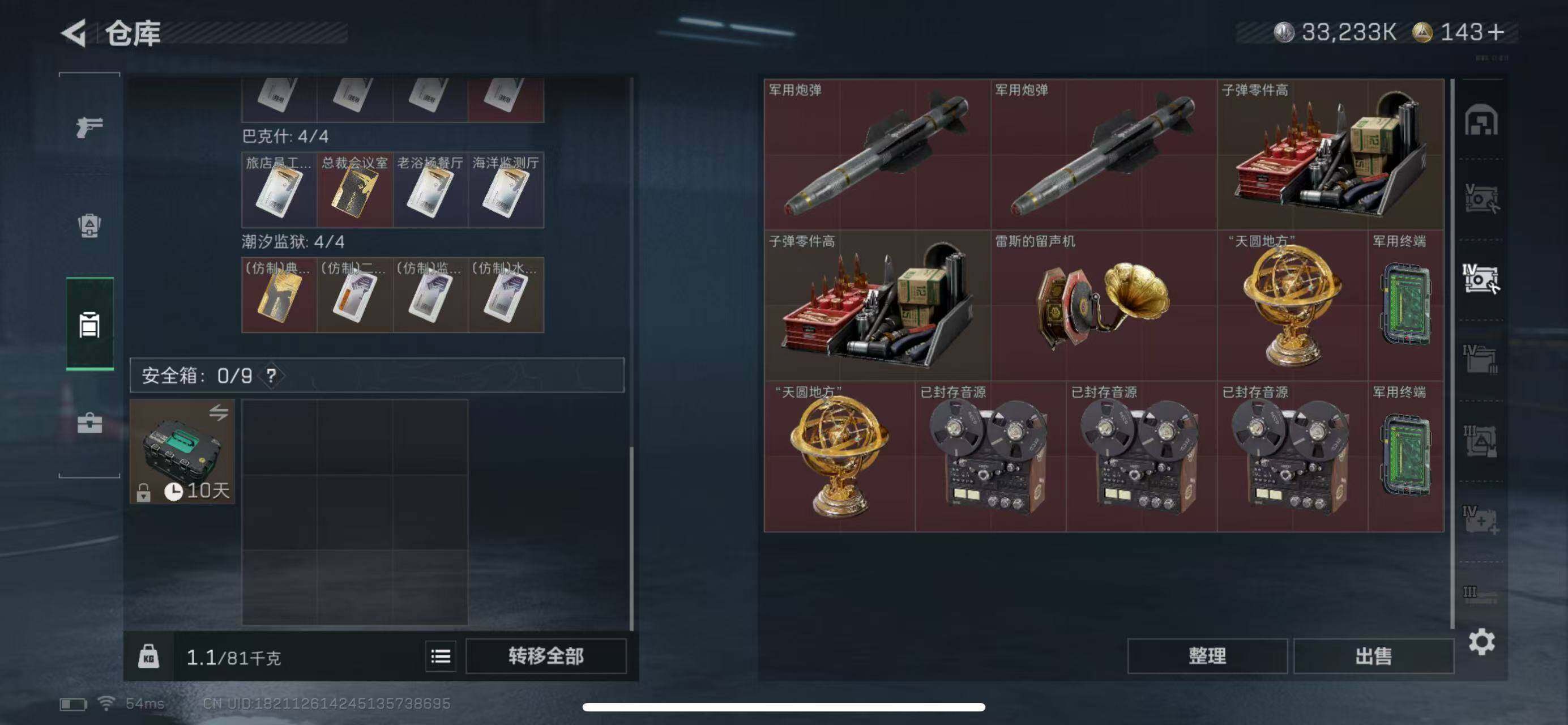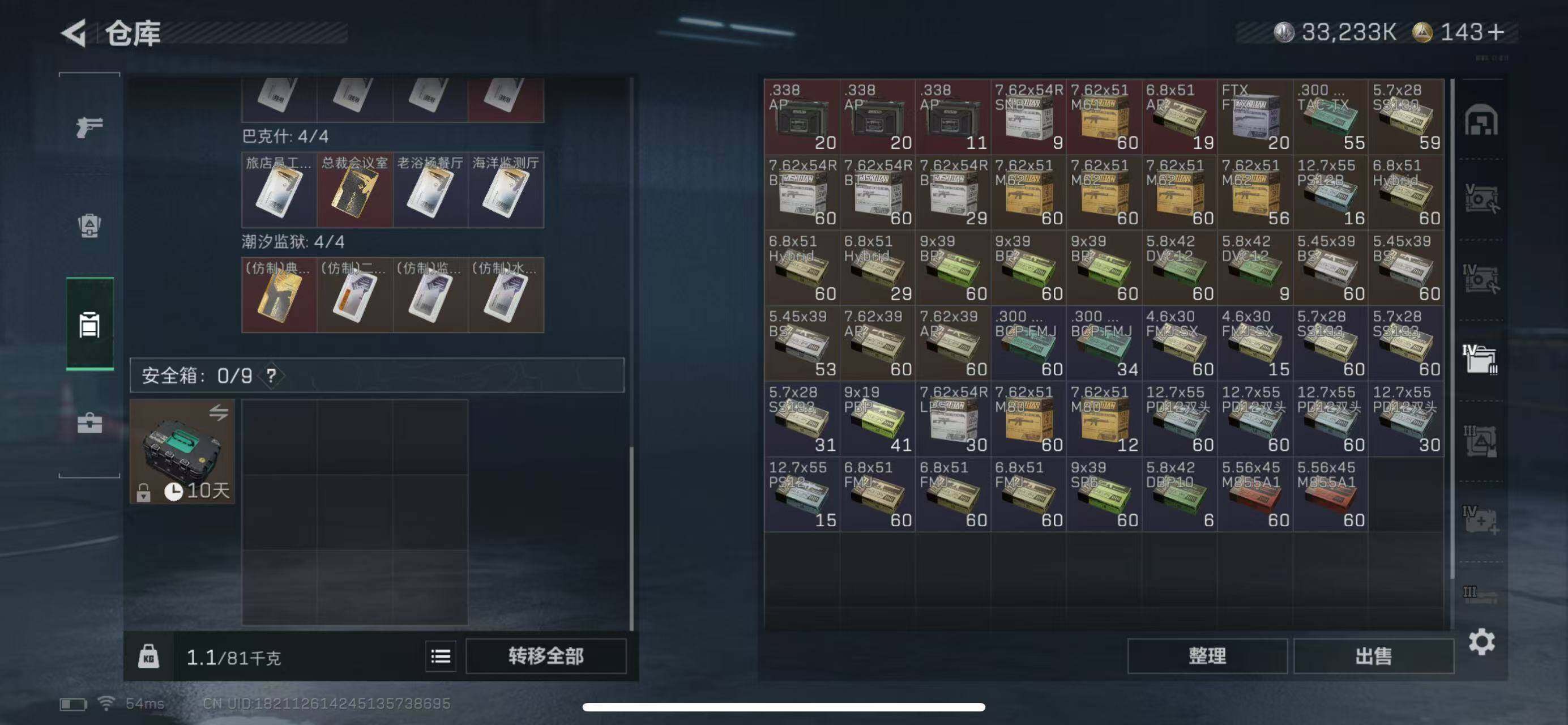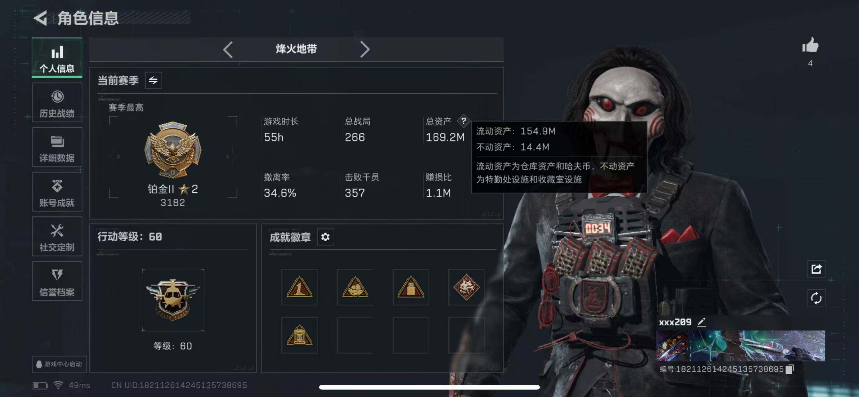 【SJ917】【无封禁记录】行动等级:60,总资产:169M,哈夫币:3323