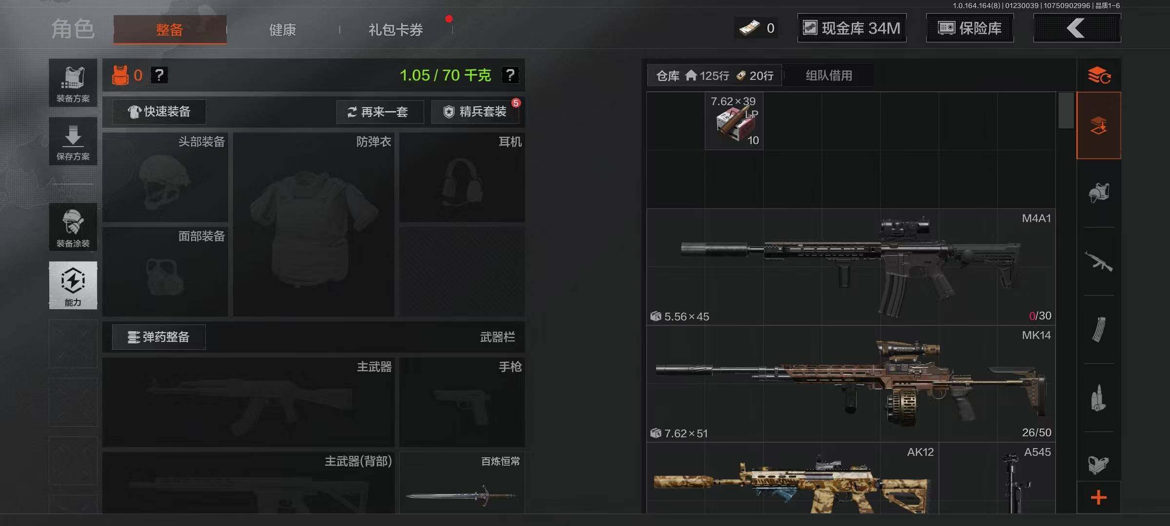 等级:30/段位:专家/仓库价值(百万):35.9/柯恩币:34415734/百炼恒常/工兵铲/骑士之剑VSS