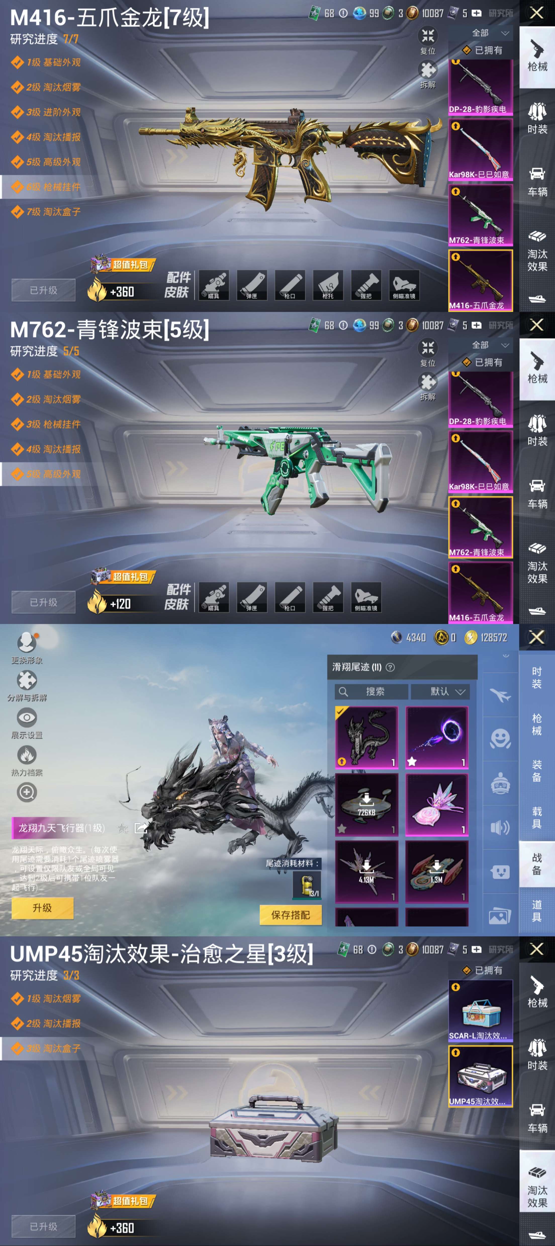 素材号 4粉装-4特效枪8飞行器-五爪金龙满级 身法口罩