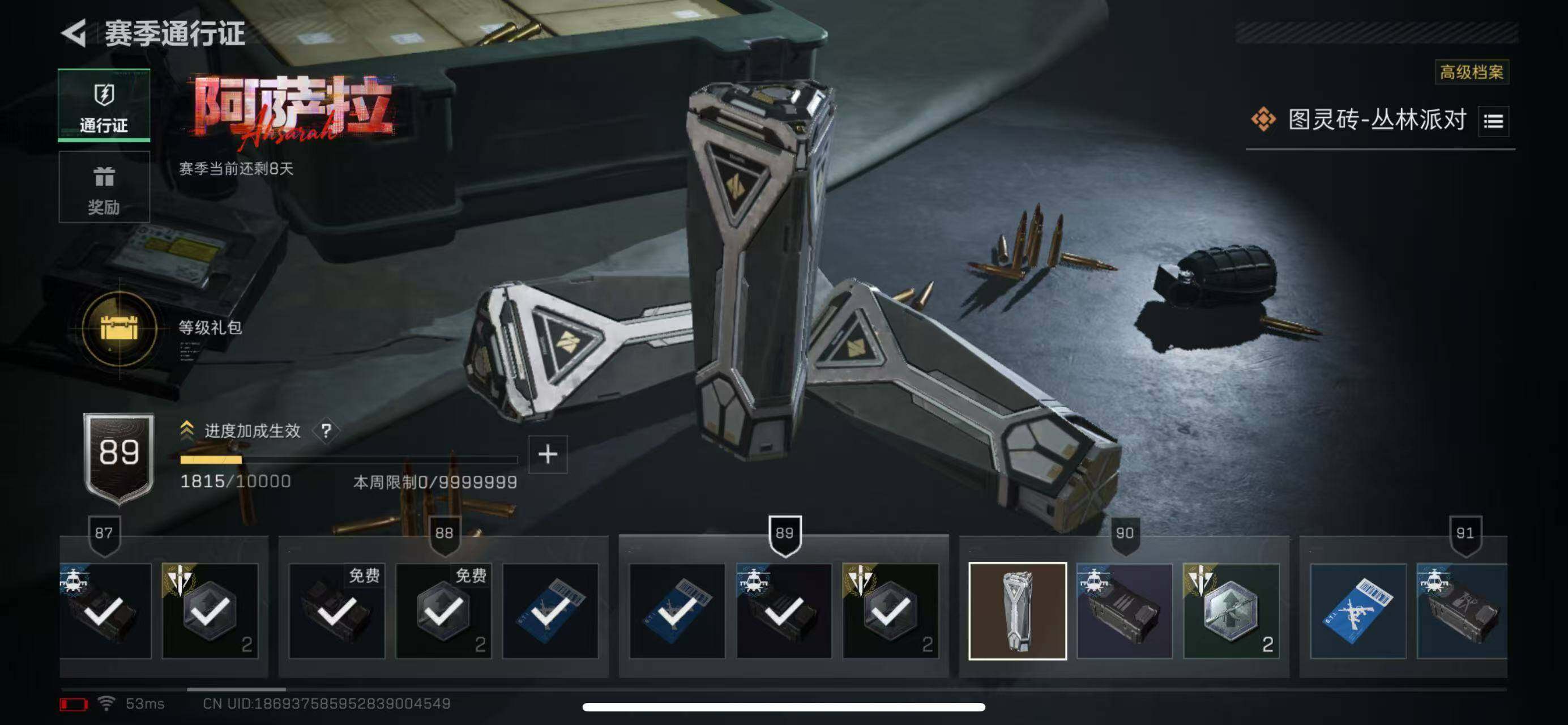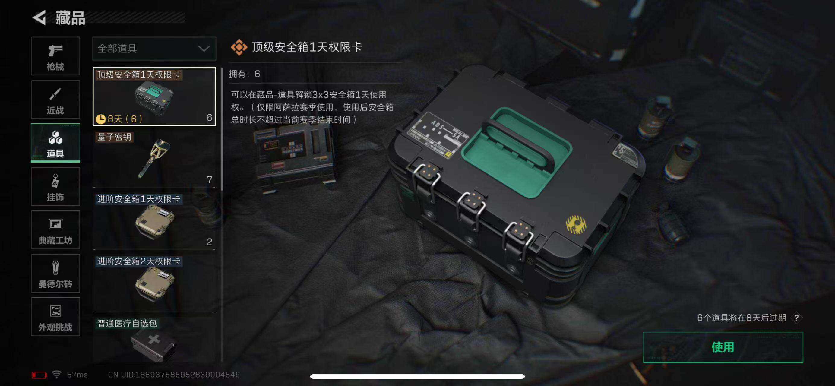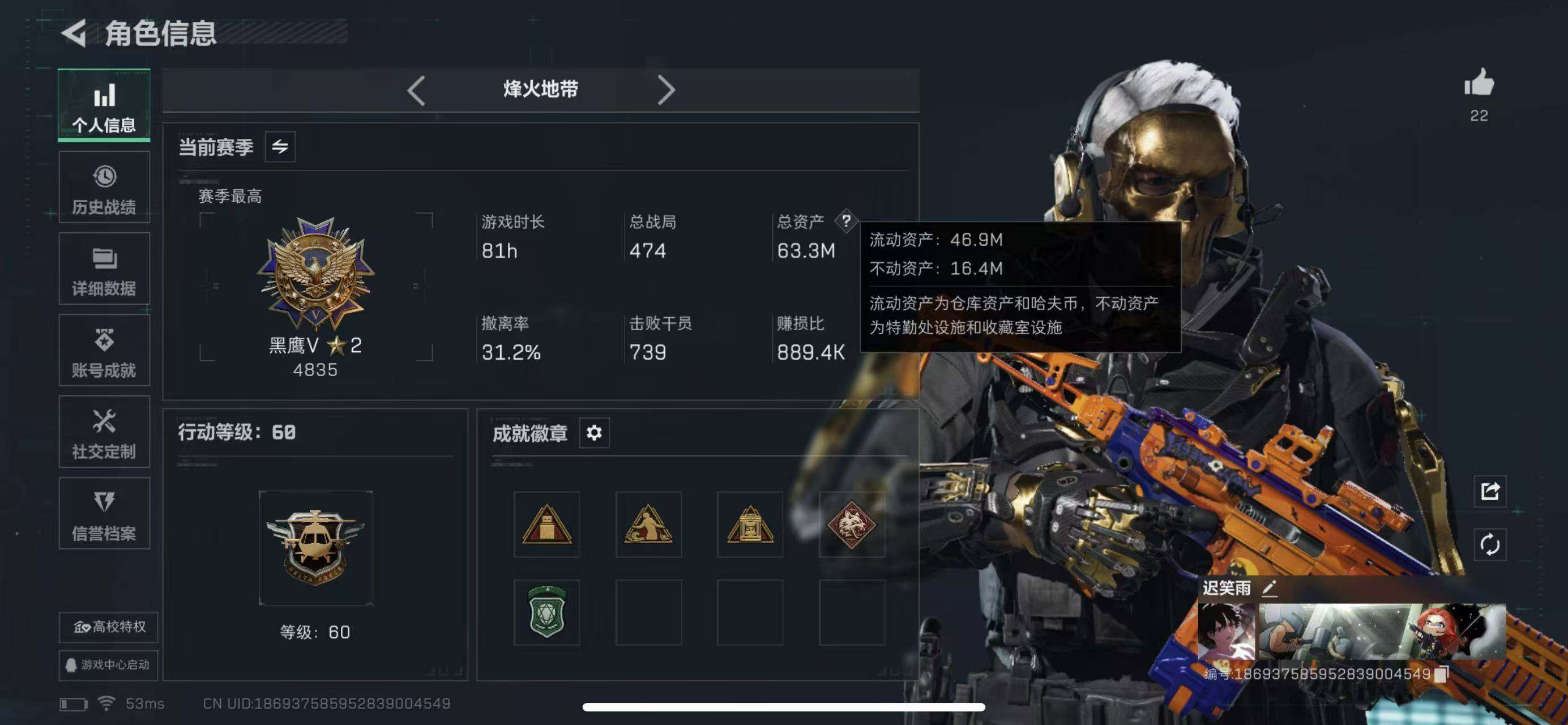 【SJ938】行动等级:60 总资产:63M 哈夫币:189.4W 近战武器: