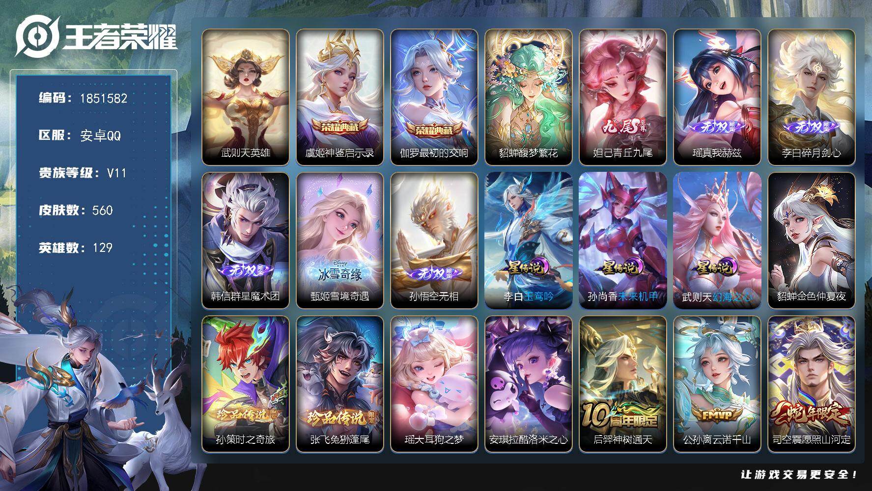 W14029,,可立即换绑无需挂单养号,,铭文满级,,典藏2,,传说79,,星传说4,,按键43,,,天幕1,,夺宝250,,安卓Q-V11-至尊星耀IV段位-129英雄-560皮肤-2典藏皮肤-1典藏英雄-1珍品无双-6无双-4珍品传说-79传说-182史诗