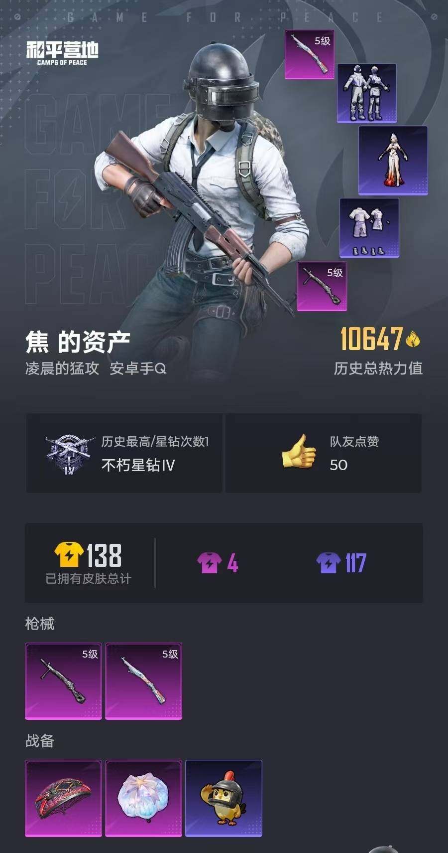 27套装/枪械2/装备38/战备24/热力值10647/五级Kar98K-巳巳