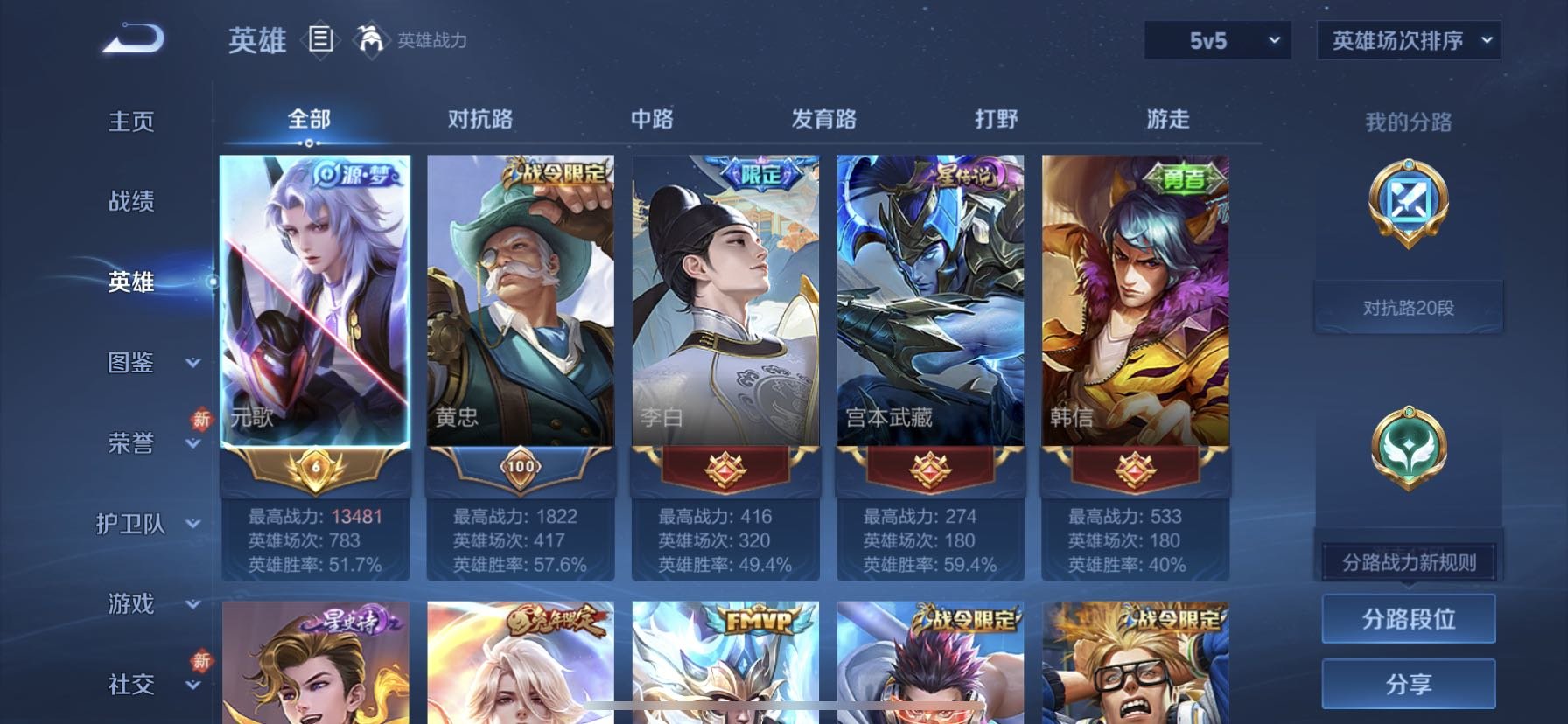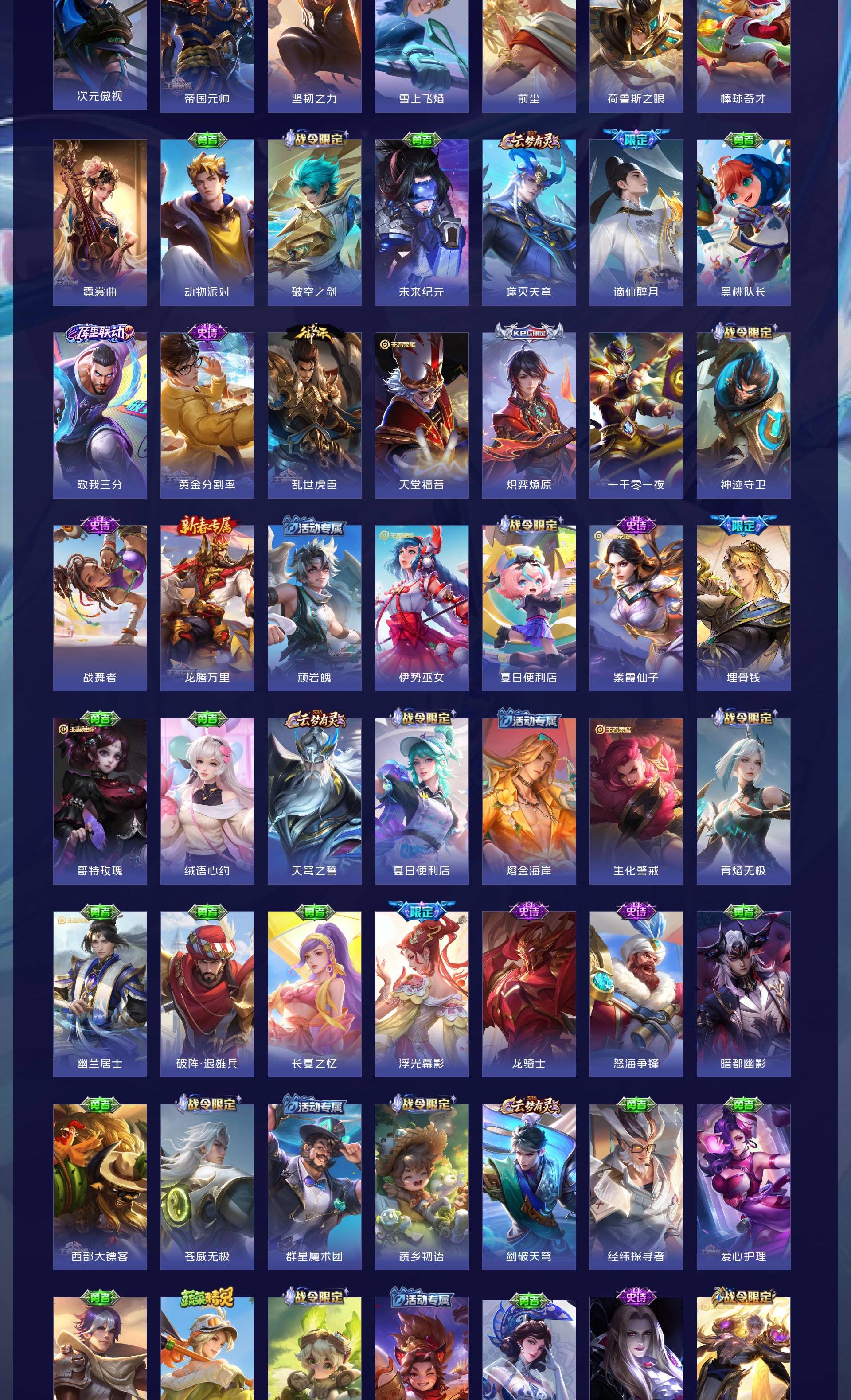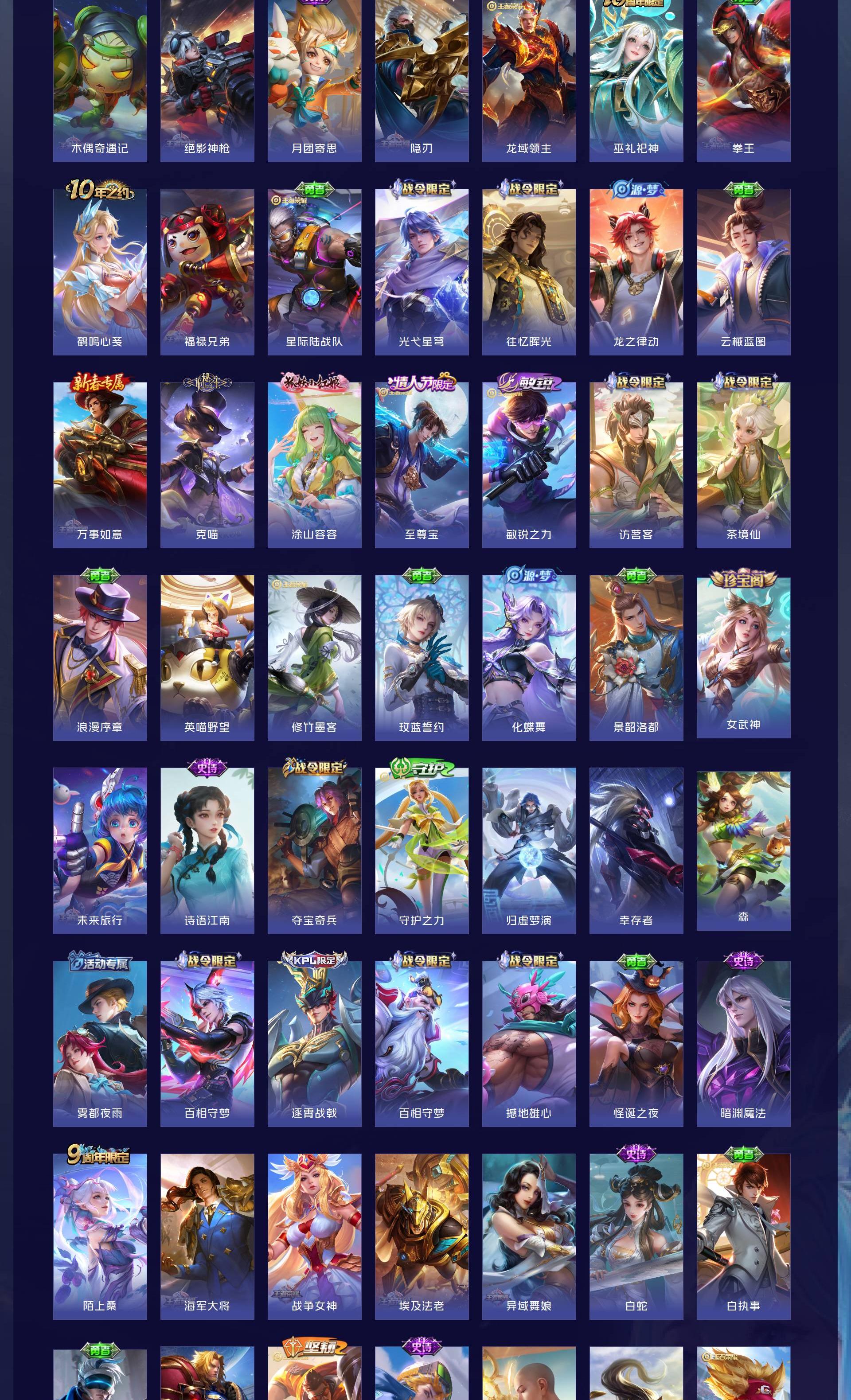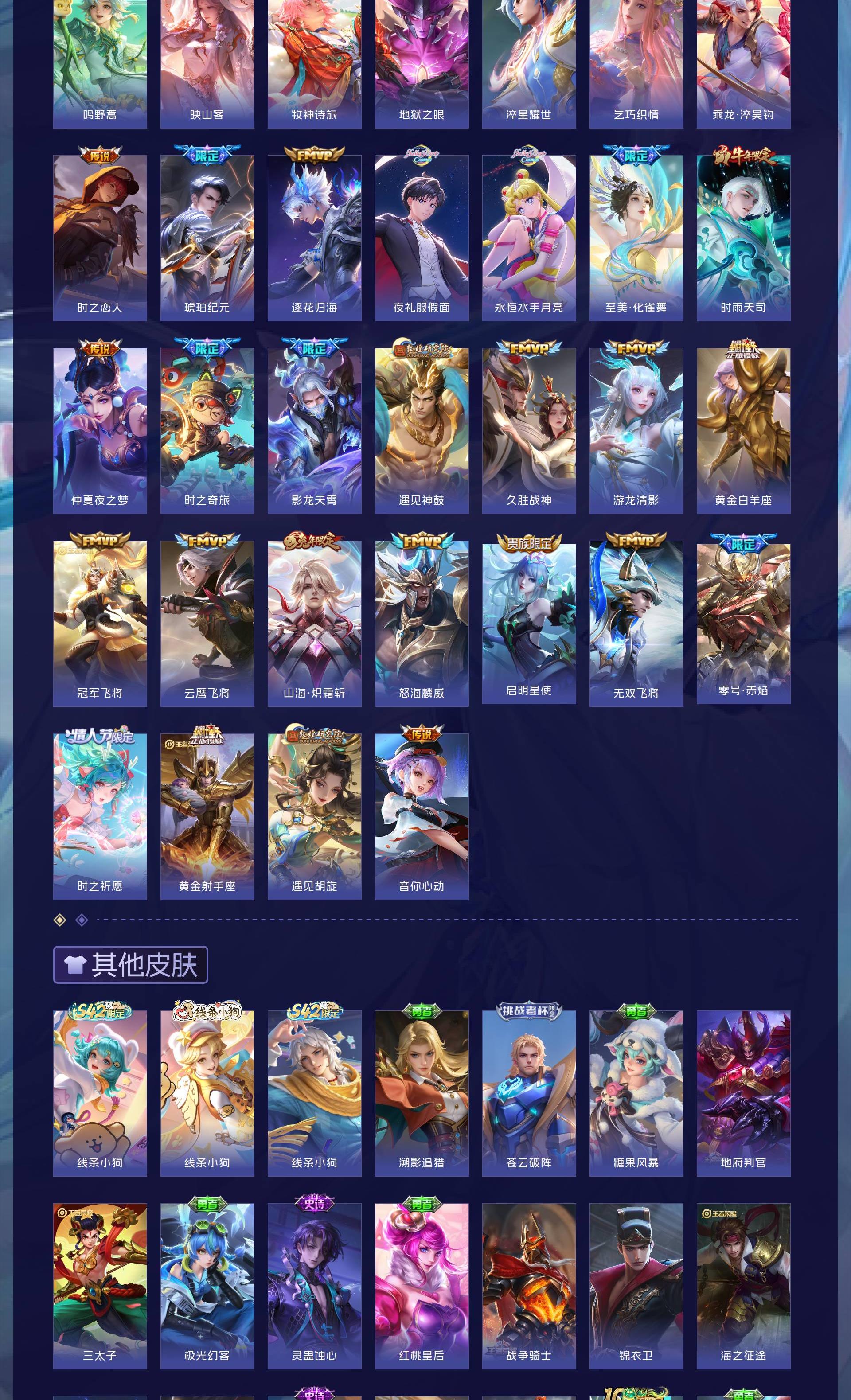 V9 皮肤448 英雄129 至尊星耀 荣耀典藏5 无双皮肤1 珍品传说1 传说39 其他皮肤407