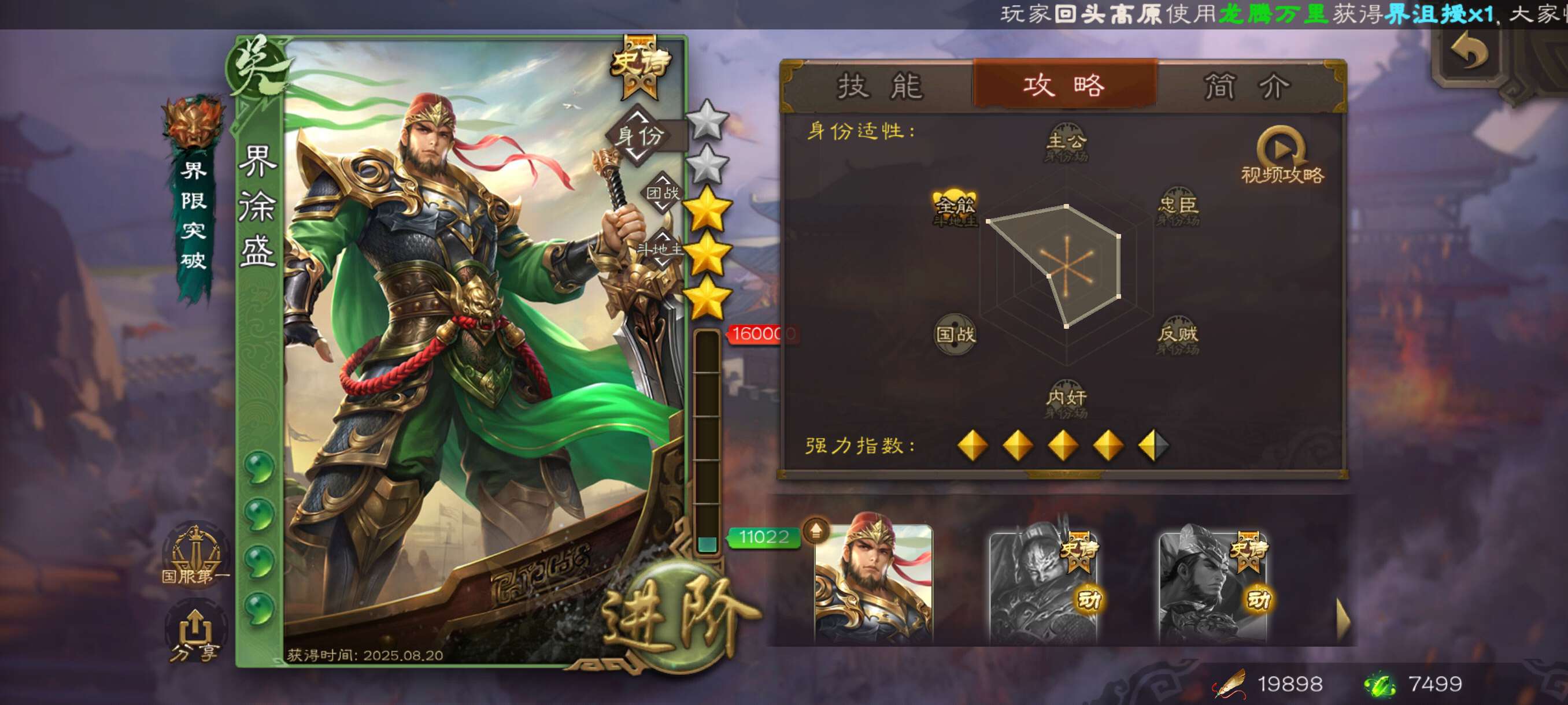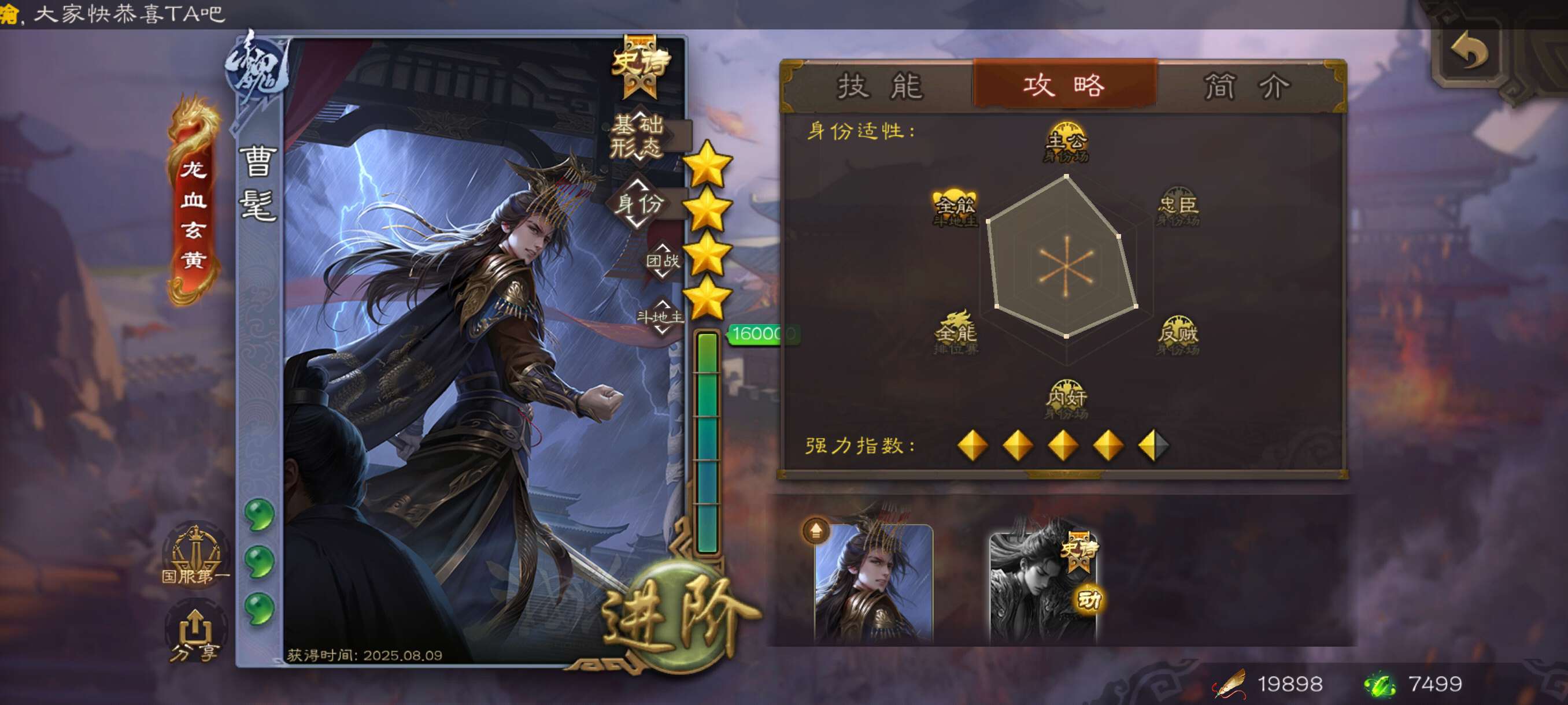 玉龙曹髦+界徐盛+戏志才精品先锋将军!三卡充足,7499将魂,官服字母格式活绑
